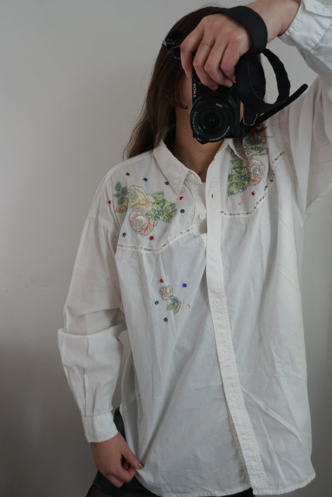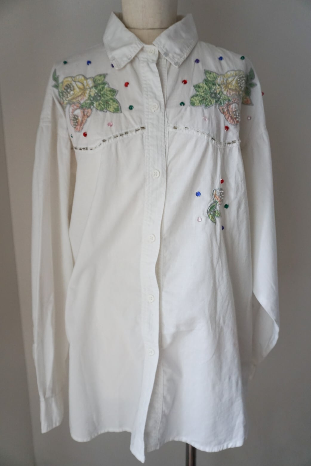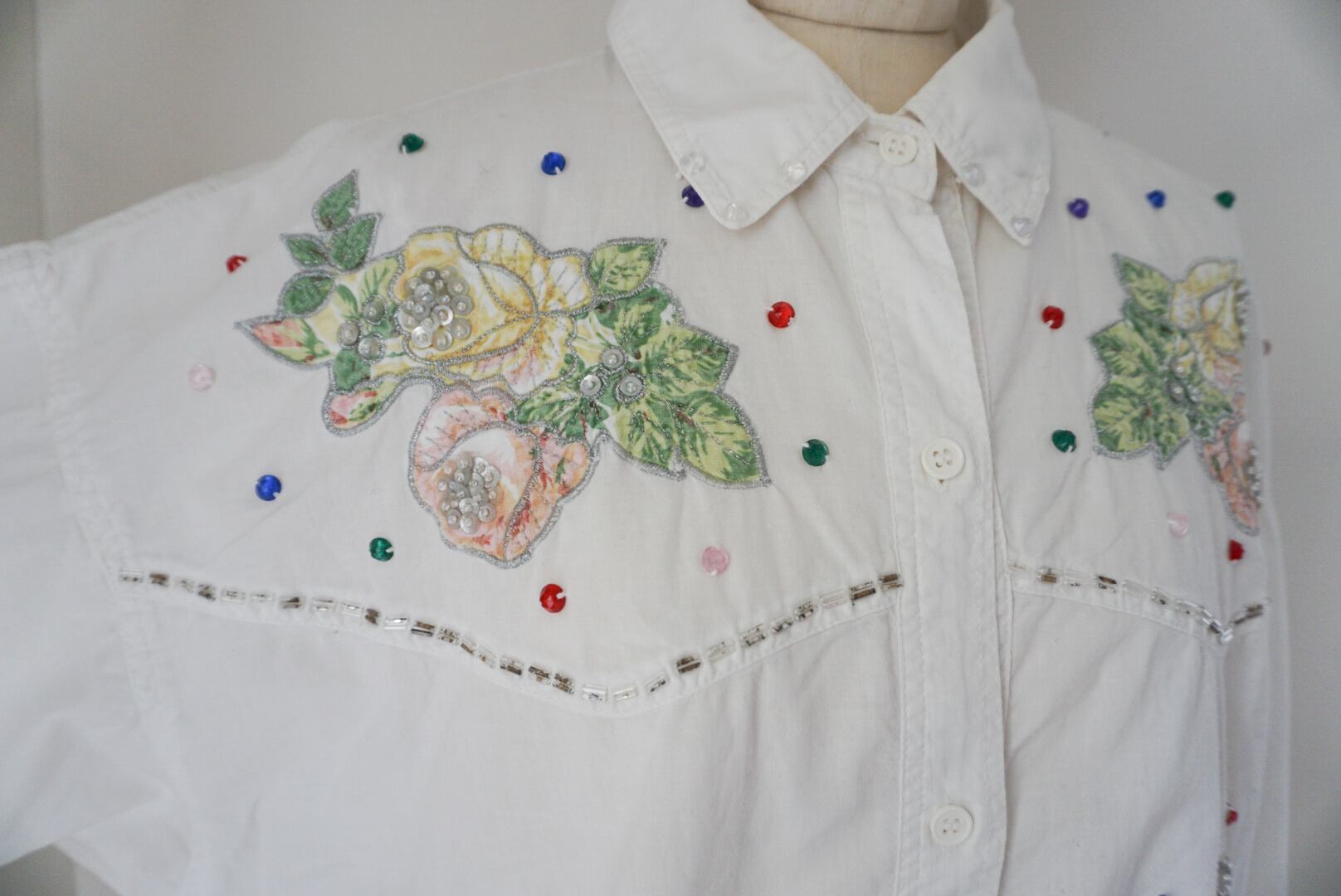 1980's floral applique beaded vintage cotton blouse