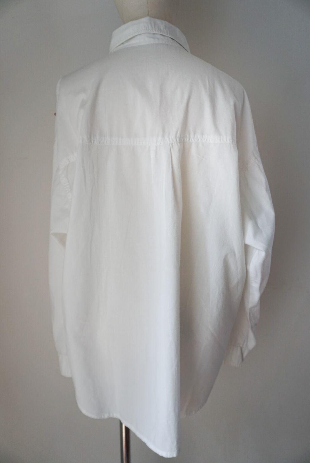特徴的な装飾が施されたこのブラウスは、シンプルなボトムスやスカートと合わせることで、華やかな印象を演出します。異なるディテールが共演することで、個性的かつ魅力的なコーディネートが楽しめるアイテムです。