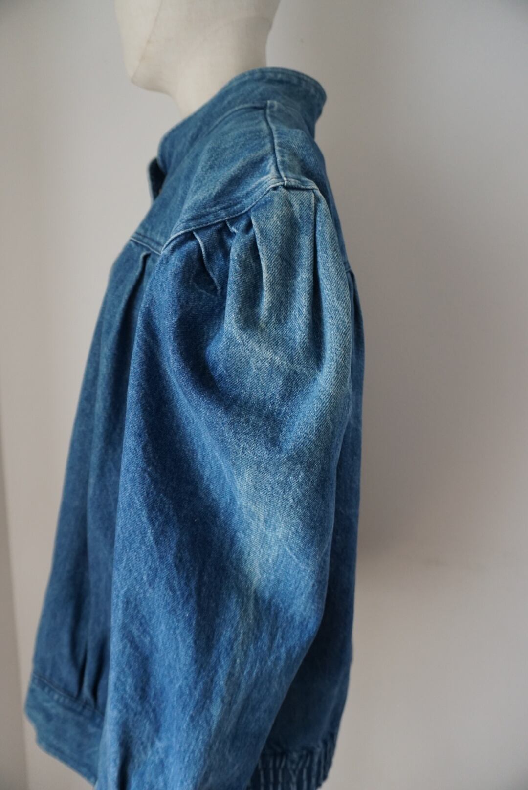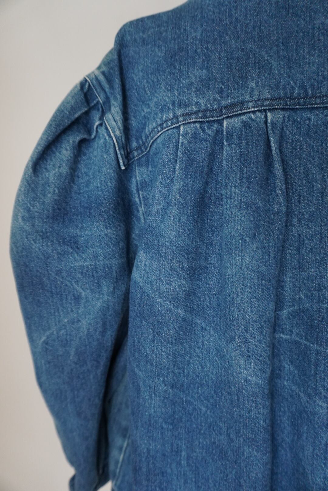 このジャケットは、1980年代を彷彿とさせるブルーデニム素材に、ふんわりとしたパフスリーブが特徴のデザインです。レトロでありながらトレンド感のあるスタイルを実現し、カジュアルからフォーマルまで幅広いコーディネートが楽しめます。