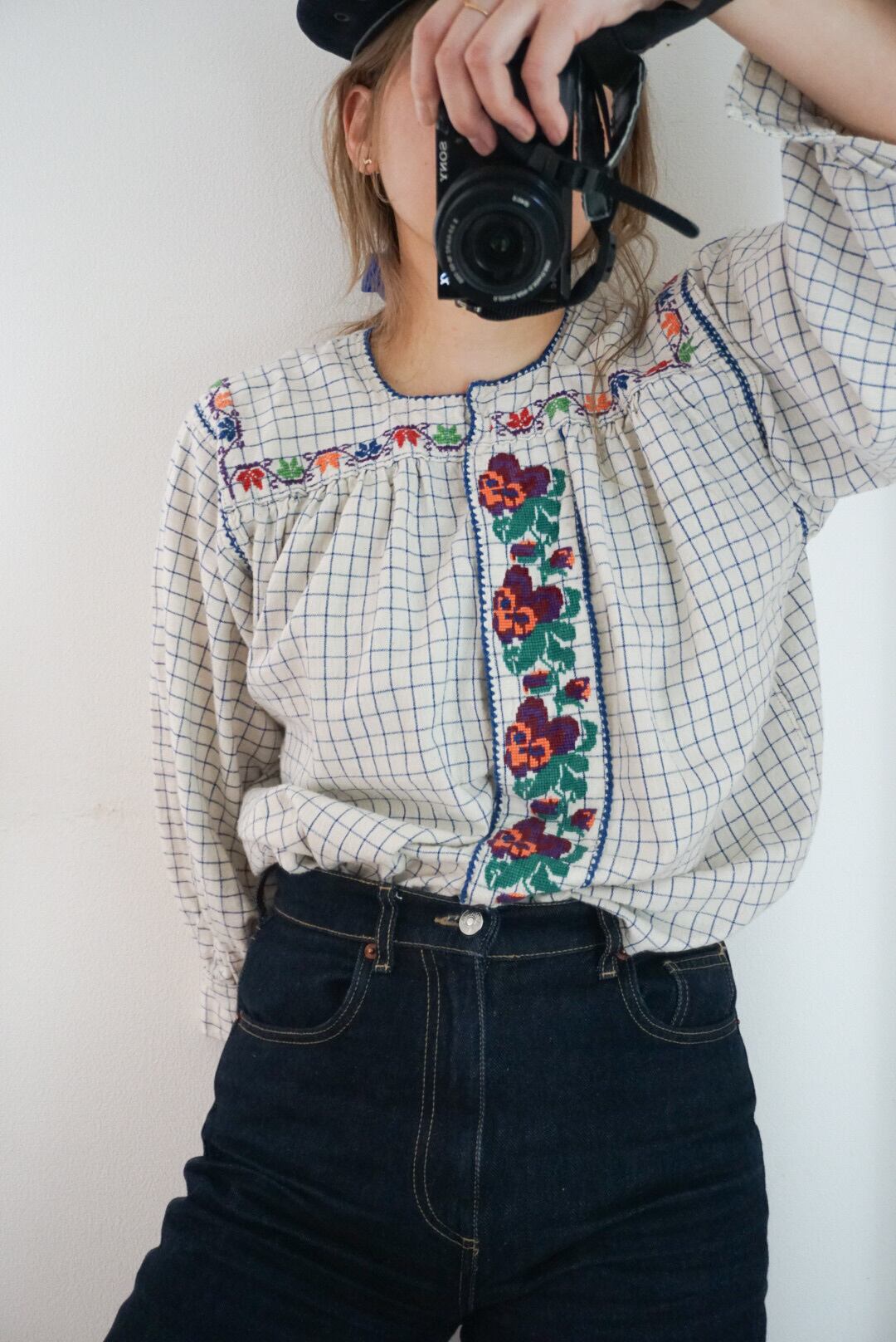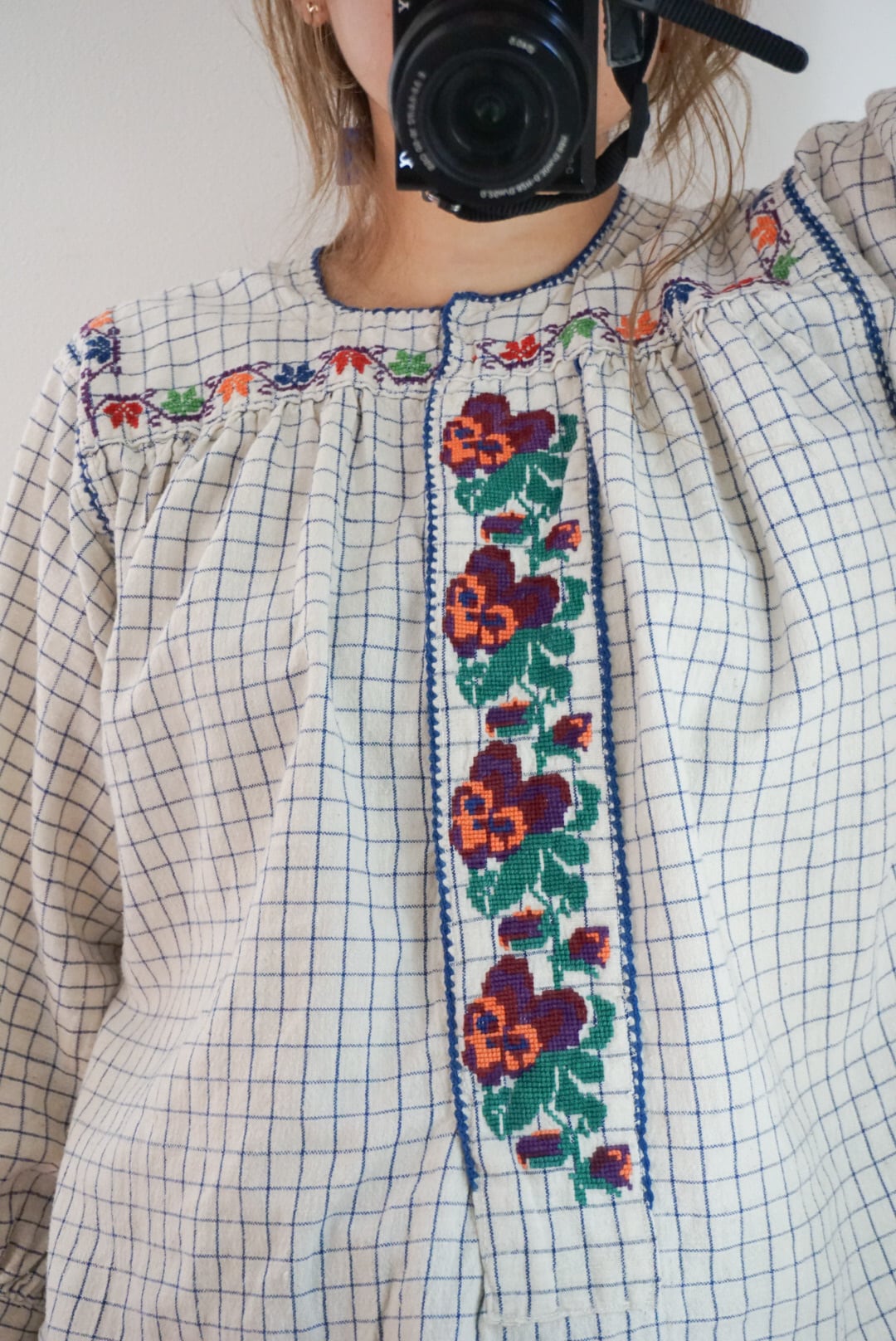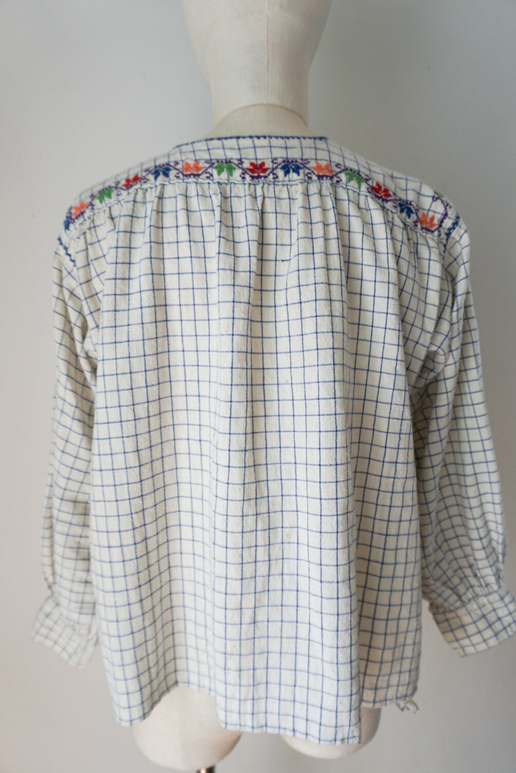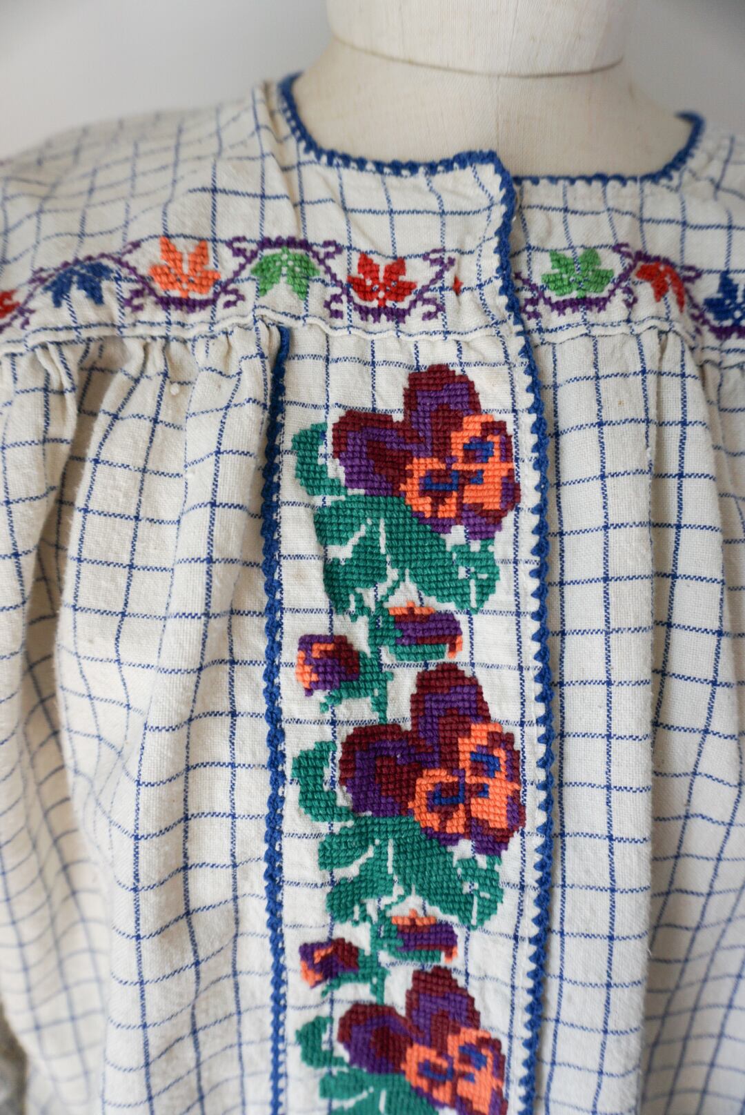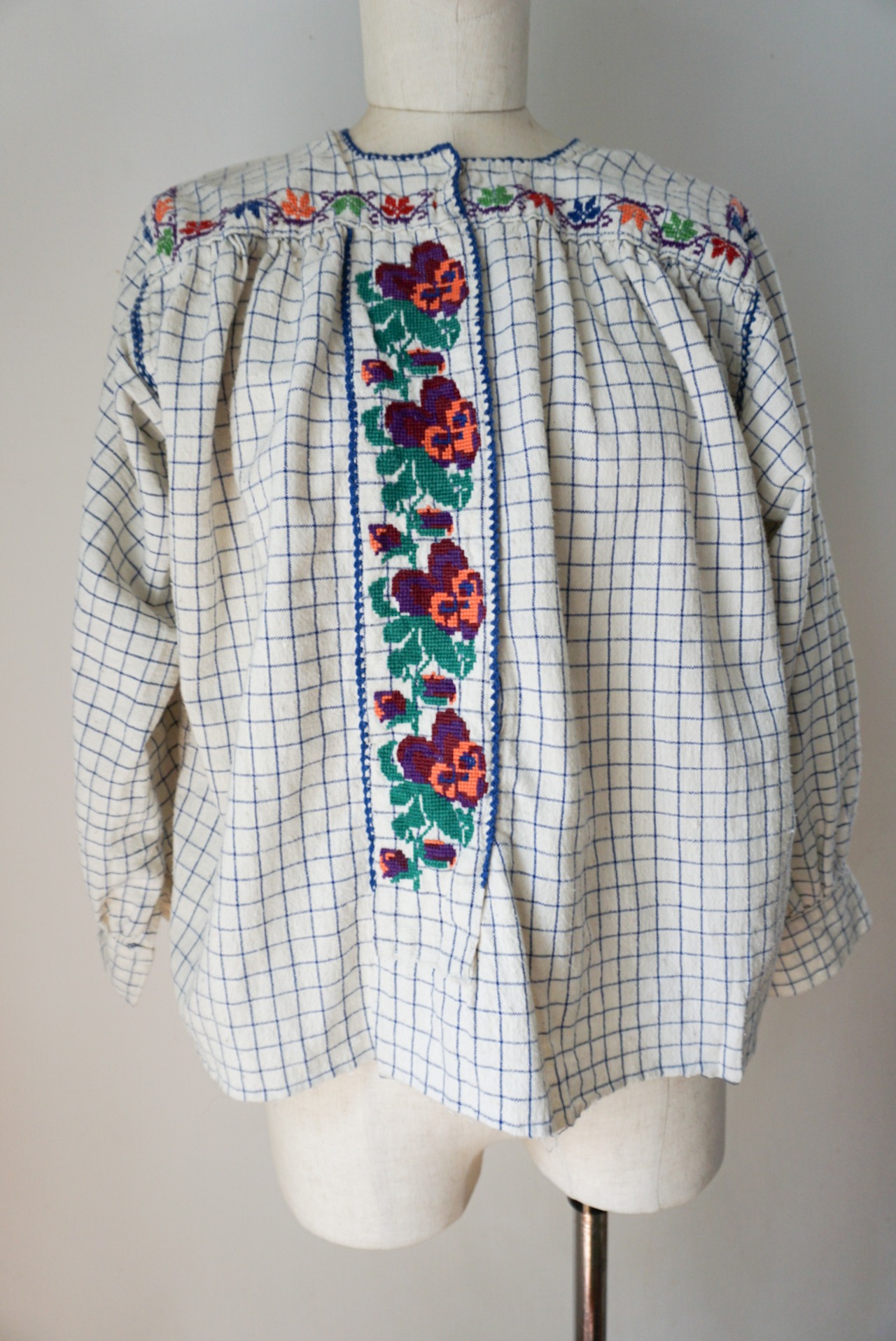 1950’s vintage Rumanian Floral embroidery check blouse