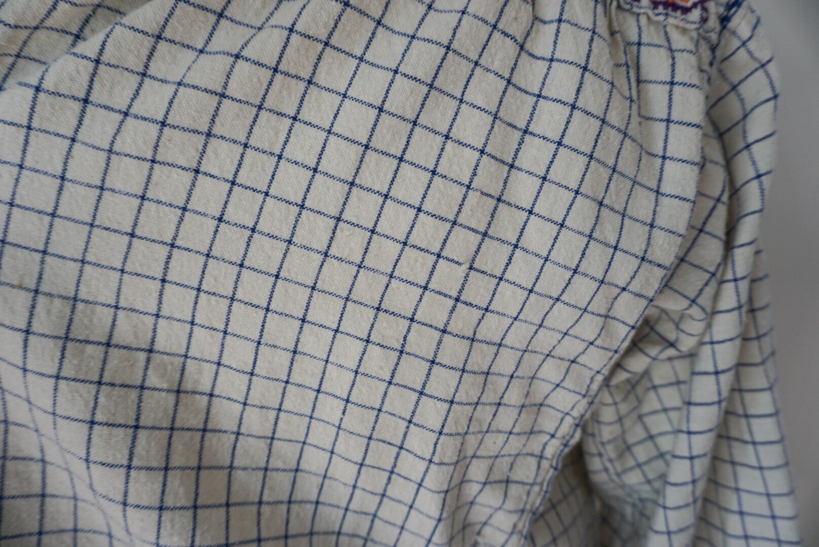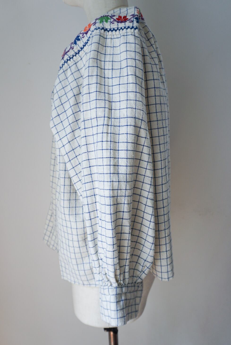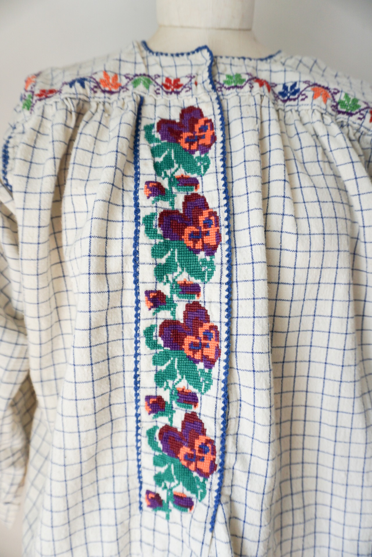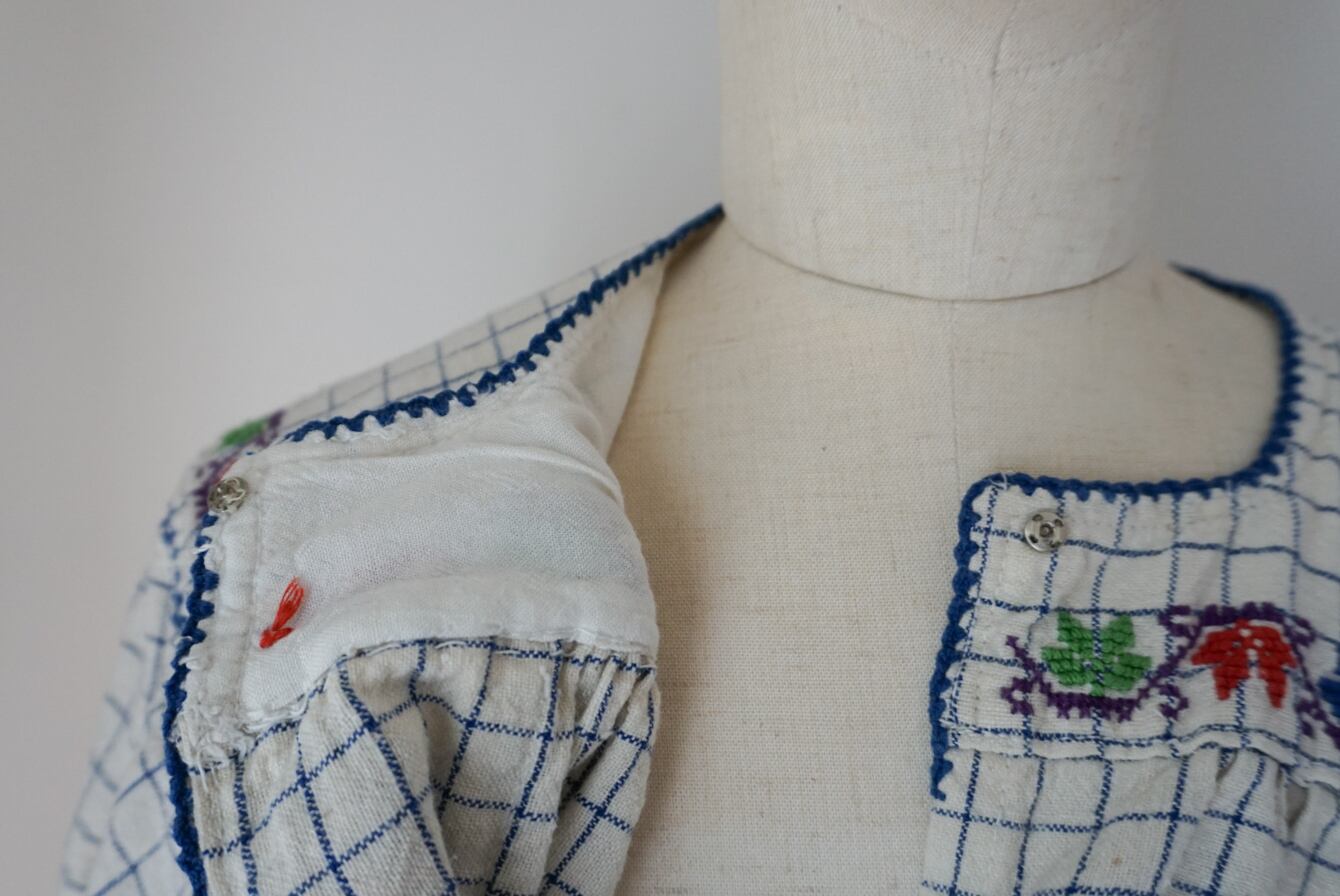 1950’s vintage Rumanian Floral embroidery check blouse。