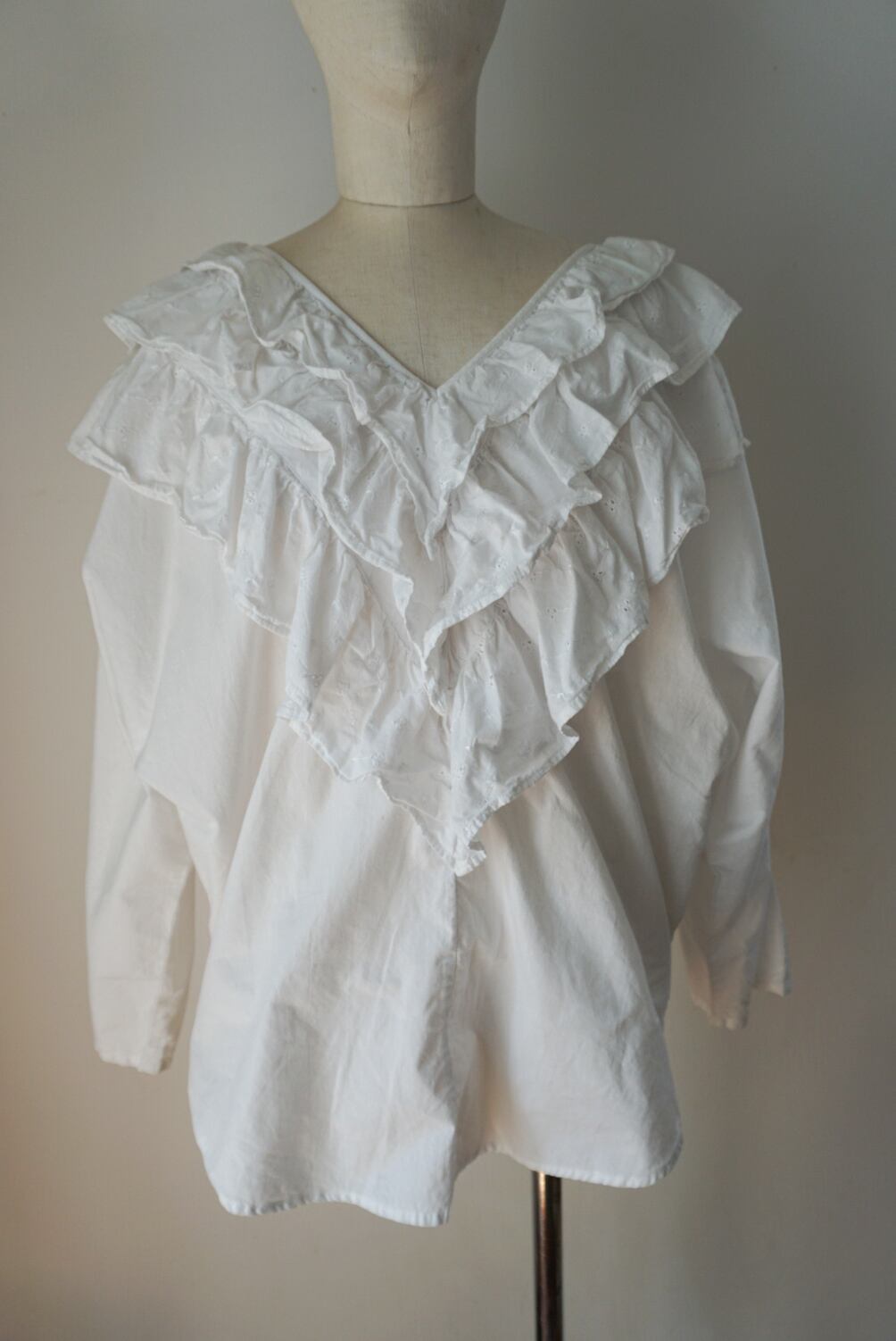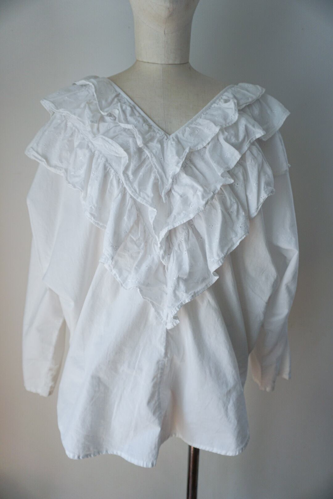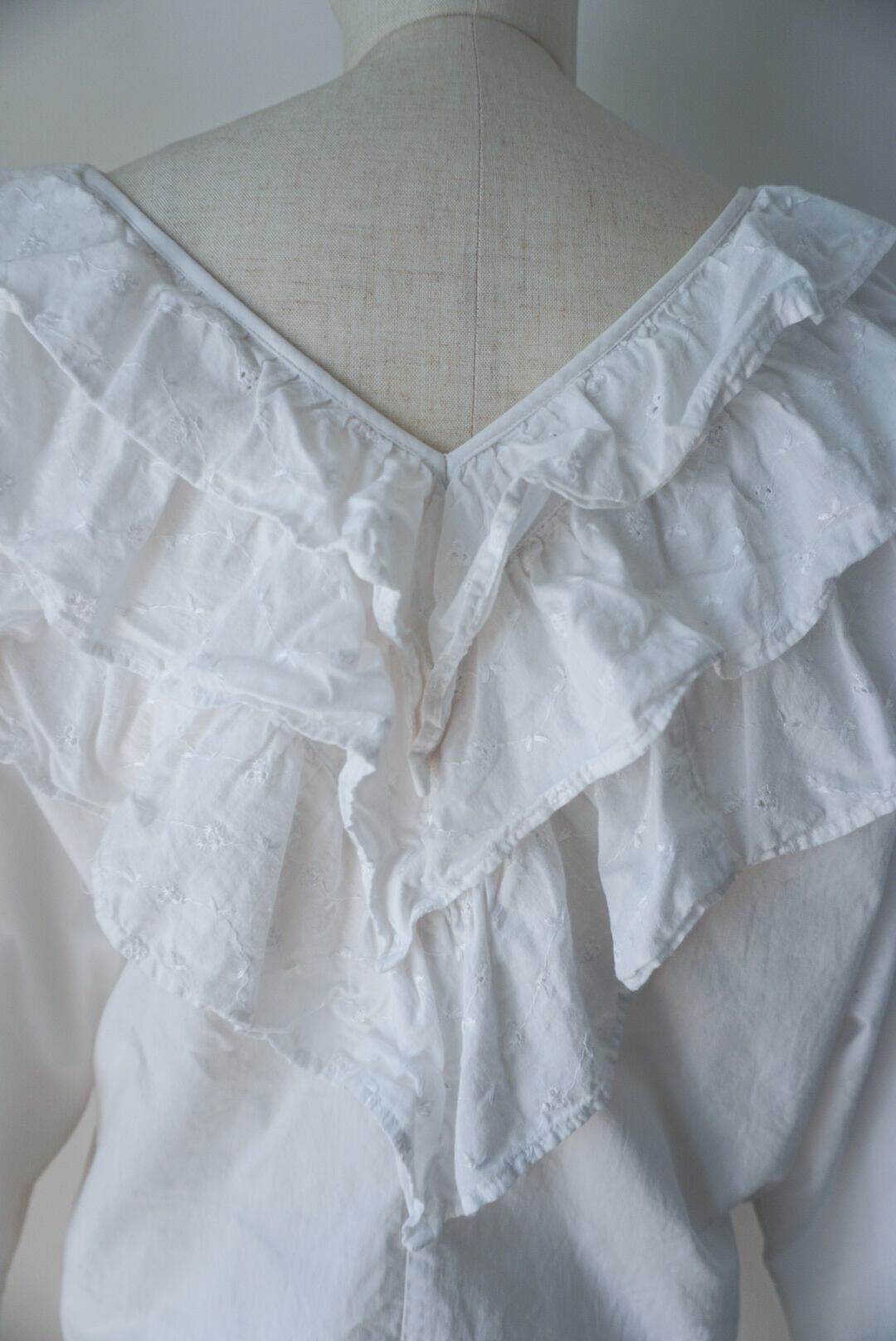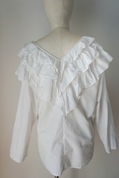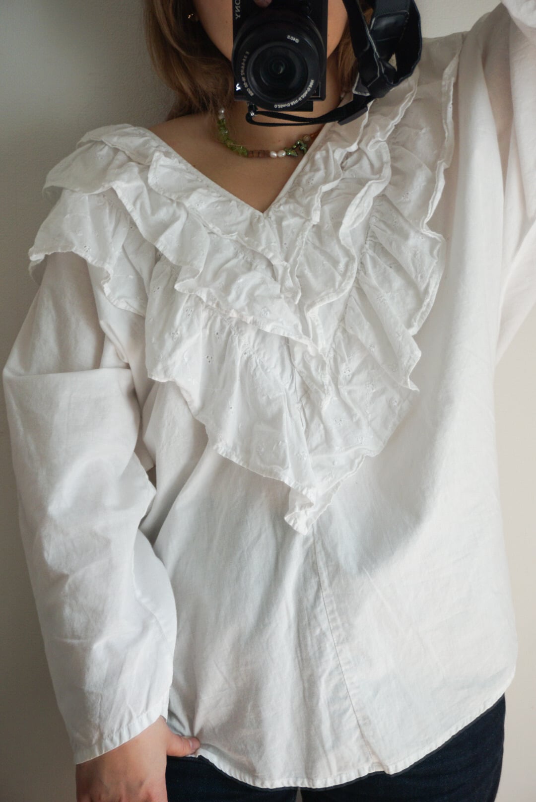 このトップスは、エレガントなホワイトカラーに、魅力的なレースが施されたデザインが特徴です。軽やかな素材感が心地よく、カジュアルからフォーマルまで幅広いスタイルでのコーディネートに活躍します。
