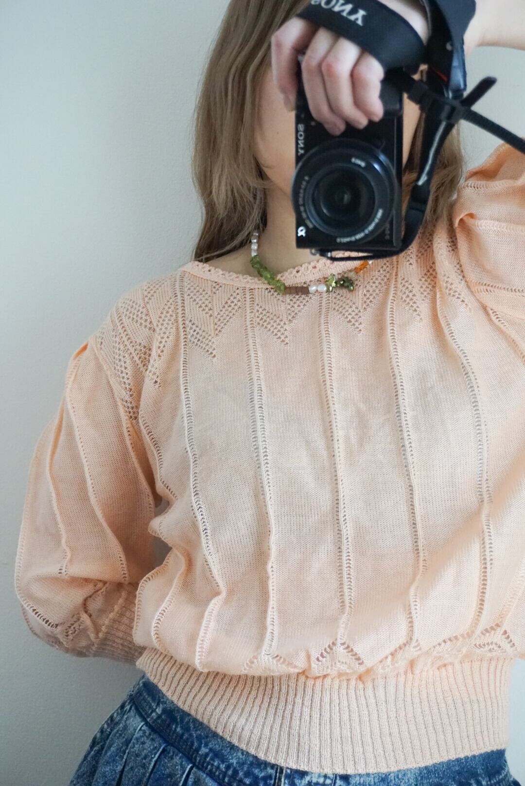 vintage pink summer knit three-quater sleeves top