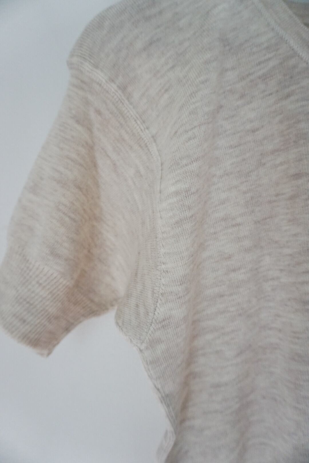 特徴的なショートスリーブが涼しさを演出し、ゆったりとしたシンプルなシルエットで柄のあるボトムスやデニムと合わせやすいアイテムです。