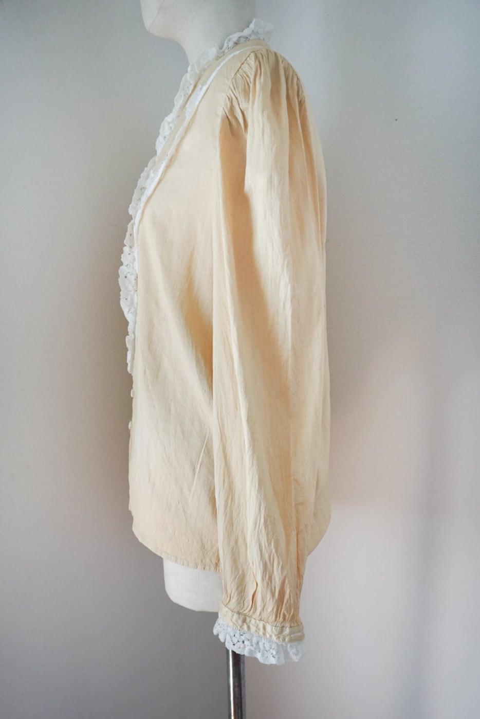 このブラウスは、ヴィンテージレースを使用したクリームカラーのアイテムです。