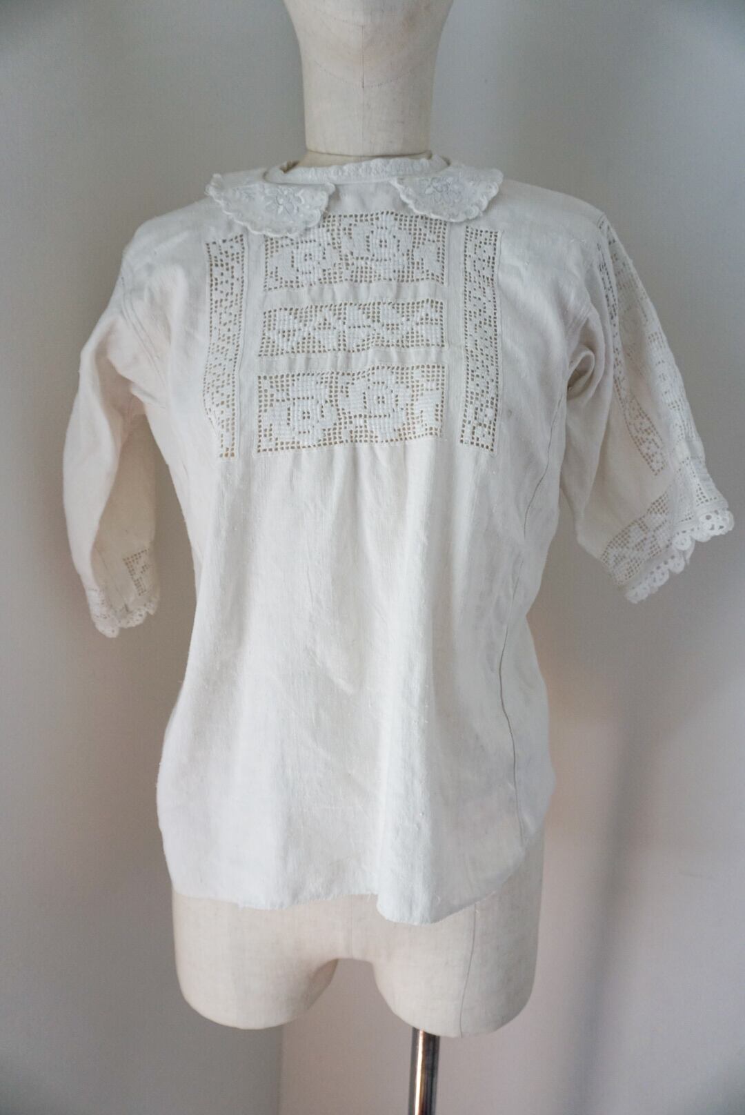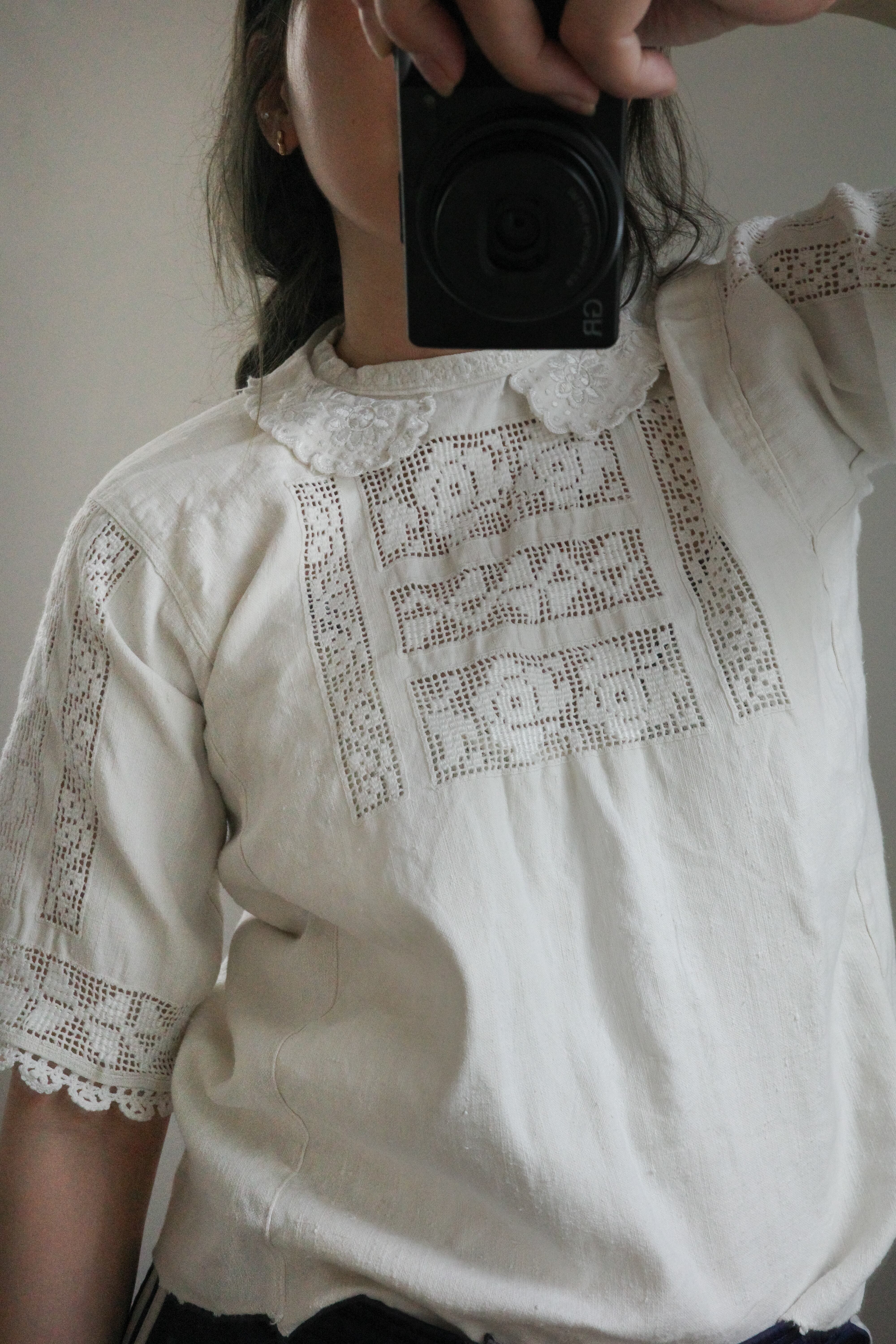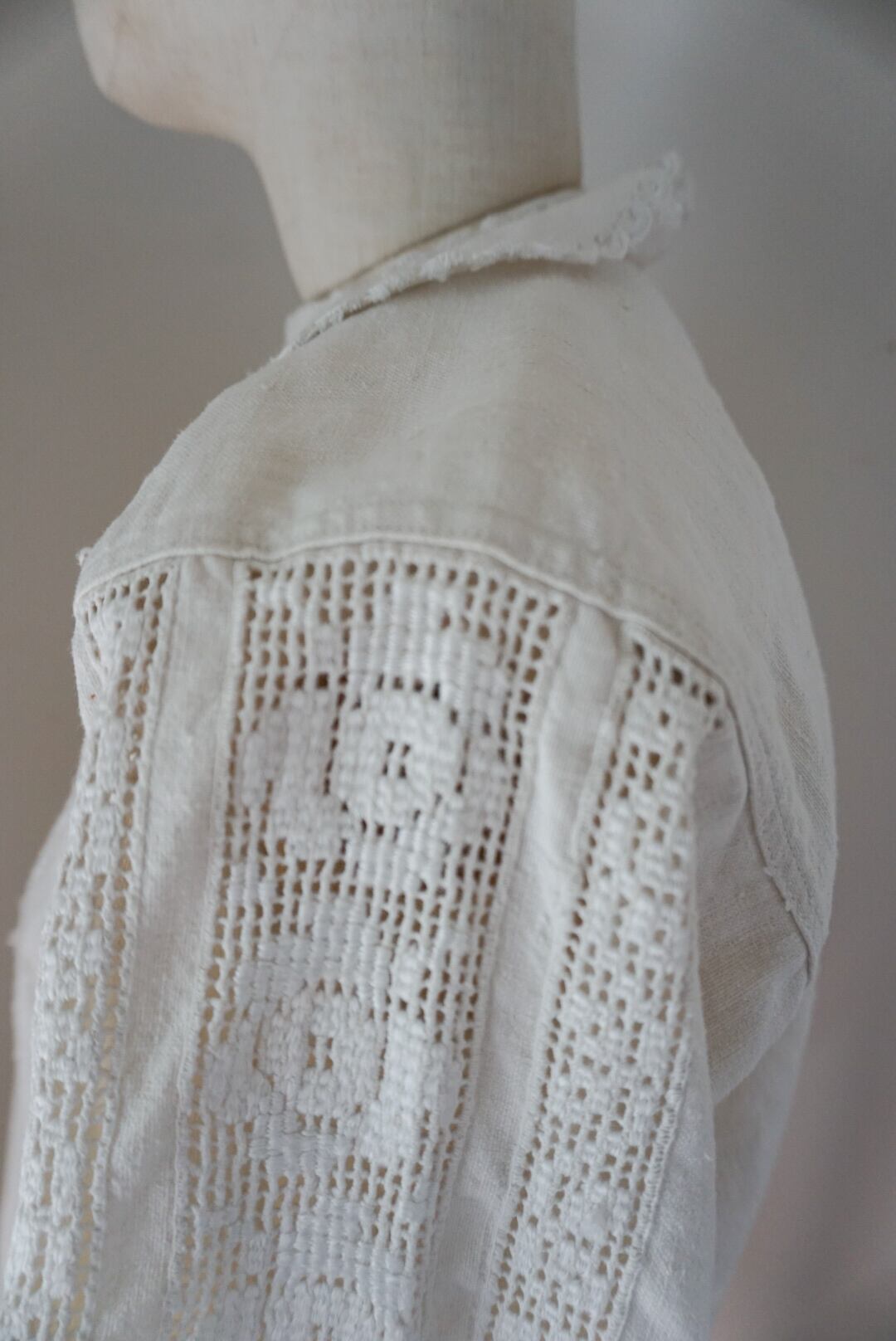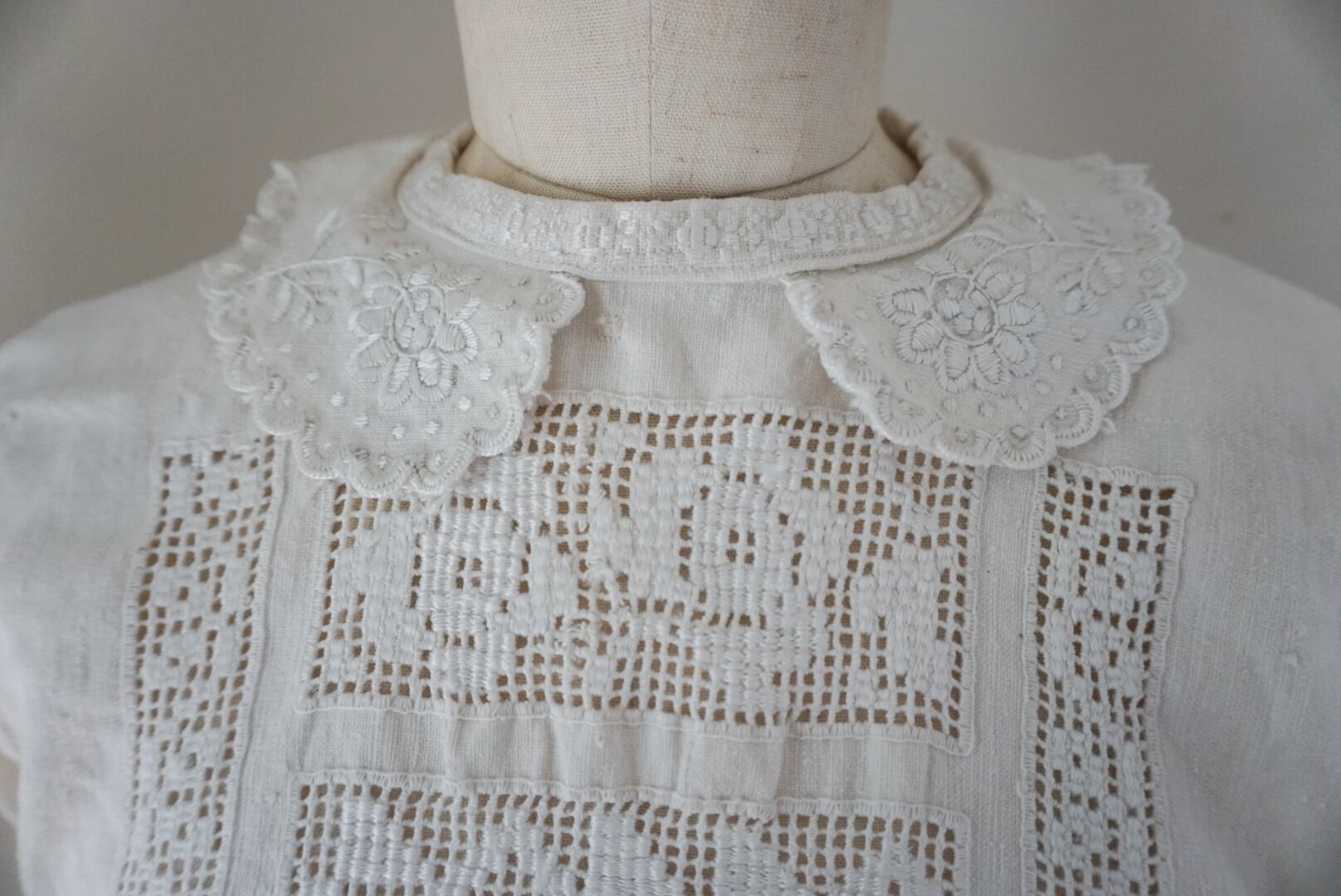 このブラウスは、ルーマニア刺繍が施されたアンティークリネンで仕立てられたホワイトカラーのアイテムです。柔らかな素材感と優れた通気性によって、カジュアルから特別なシーンまで幅広くお楽しみいただけます。エレガントでありながらもリラックスしたシルエットが女性らしさを引き立て、様々なボトムスとの相性も抜群です。