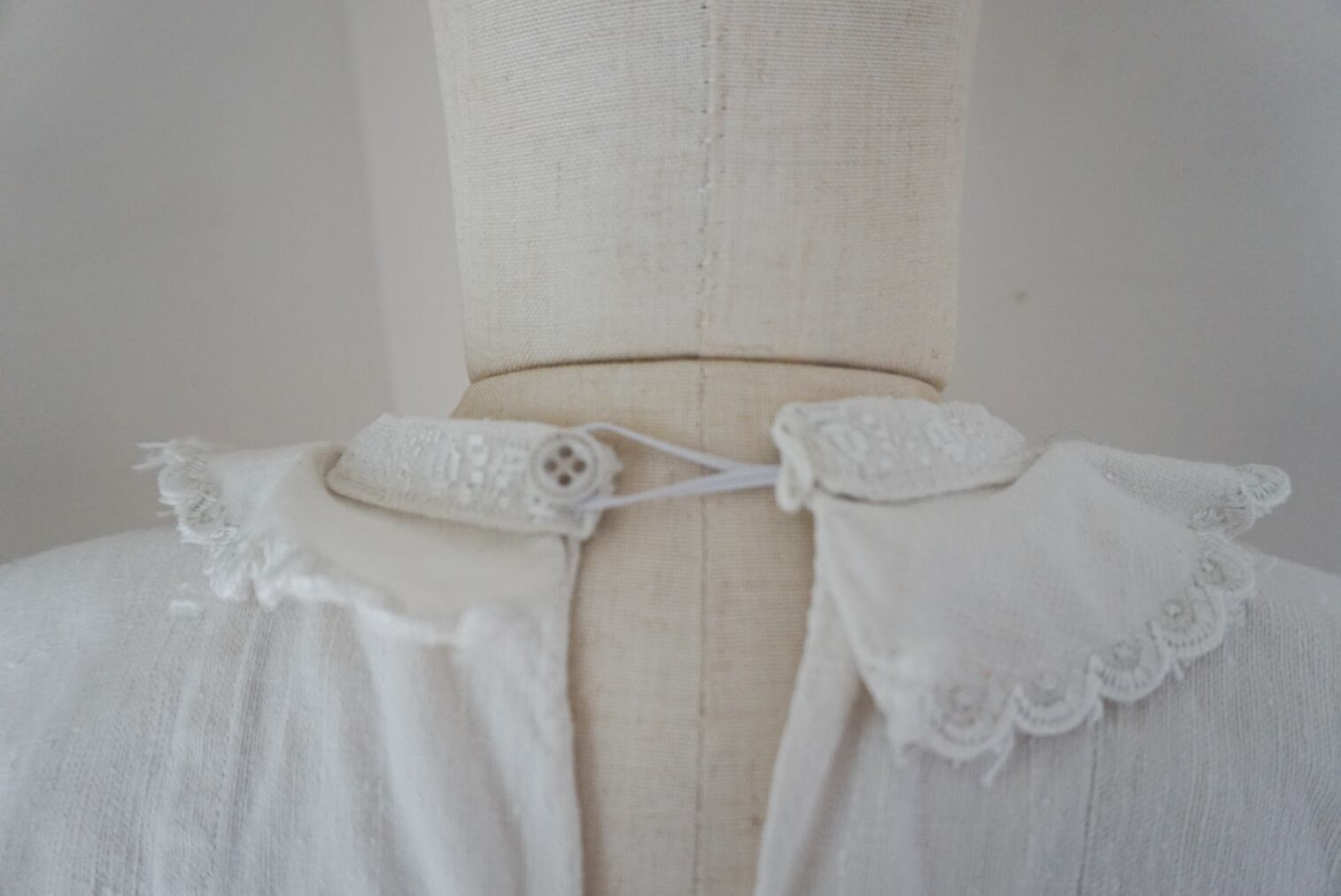 特有の刺繍ディテールがデザインに奥行きを与え、シンプルなスタイルでも華やかさをプラスします。涼やかな素材感で、特に春夏にぴったりの一着です。古くから愛されてきたアイテムなので、一つ一つに歴史が詰まっています。
