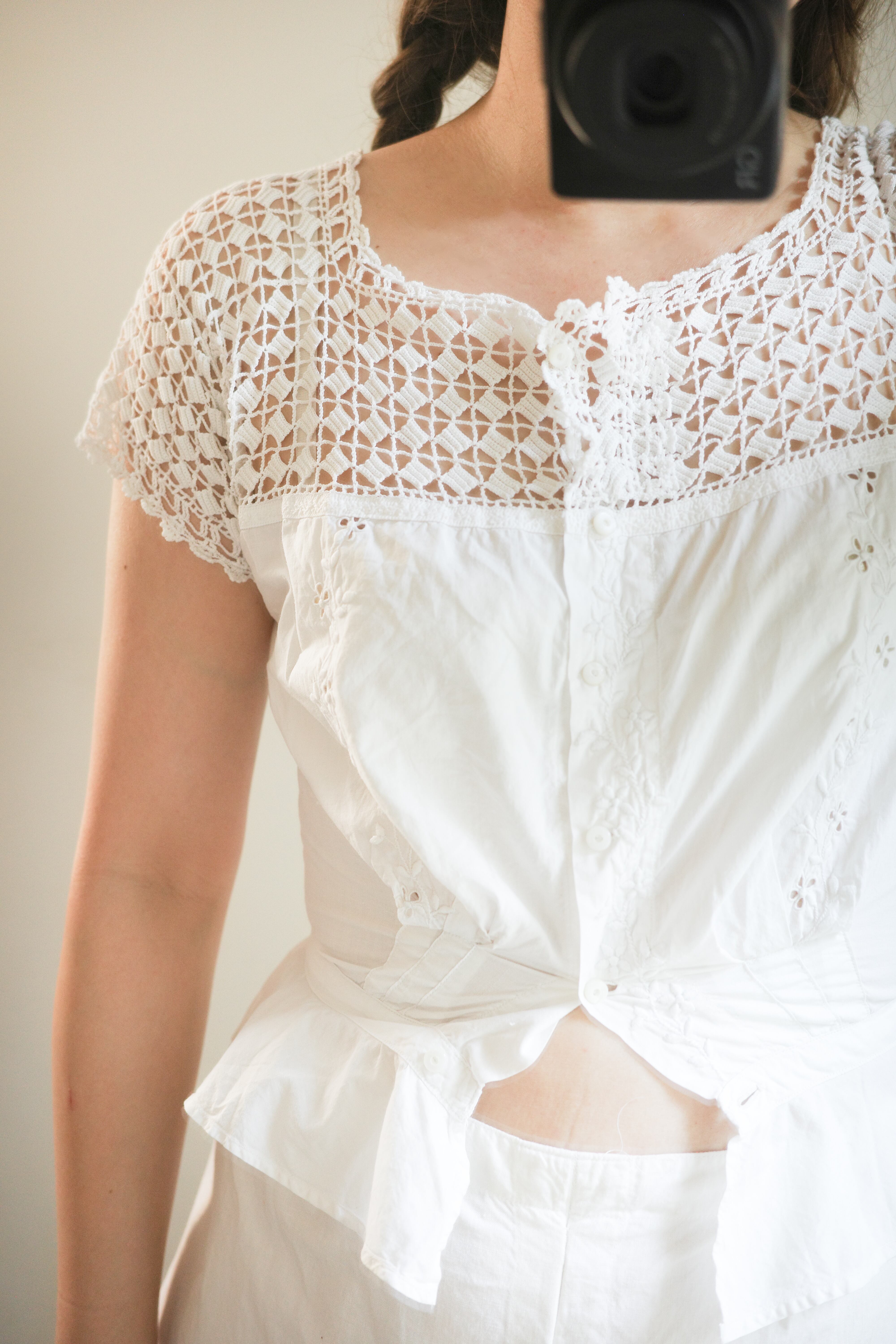 1900’s antique French Victorian crochet corset blouse