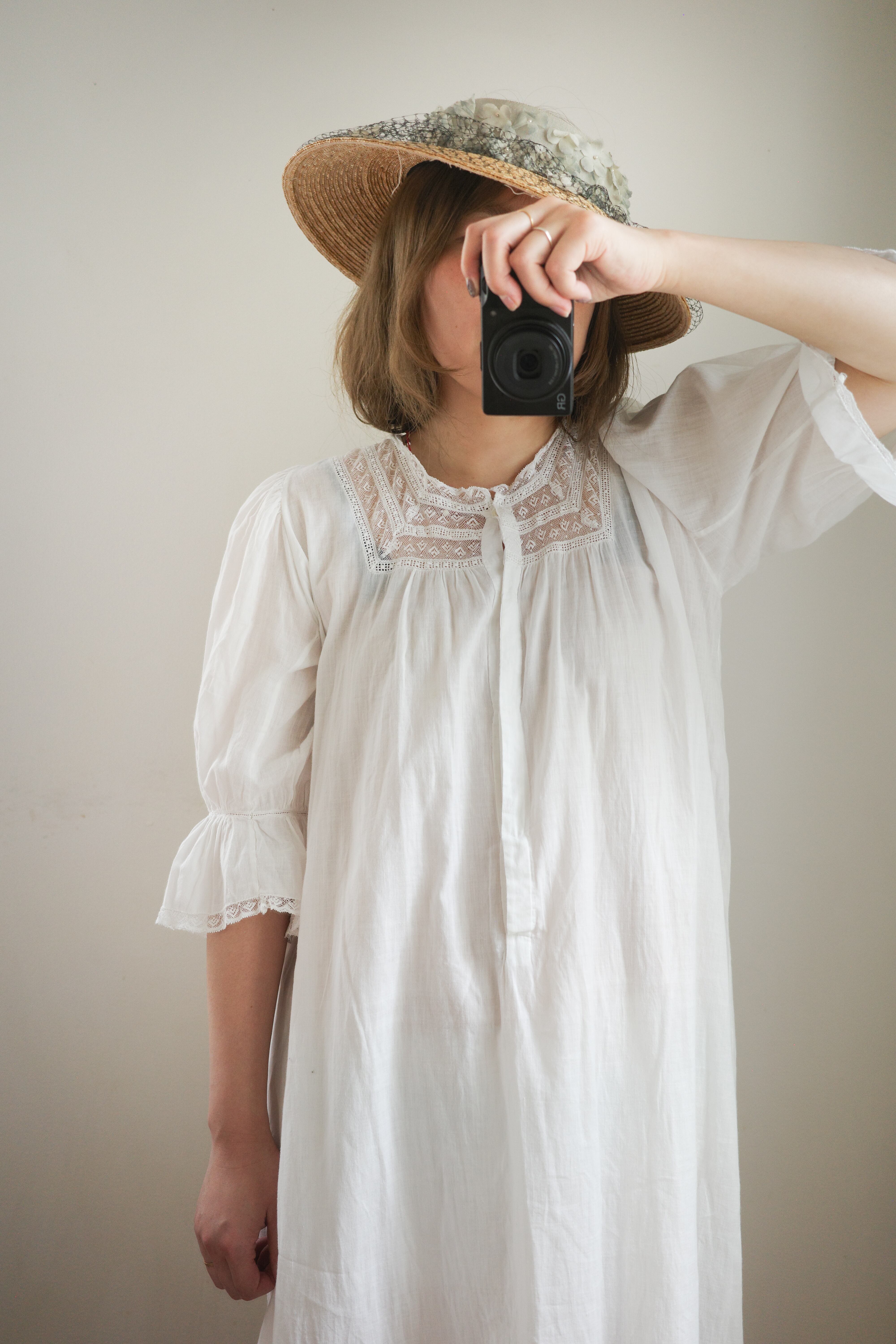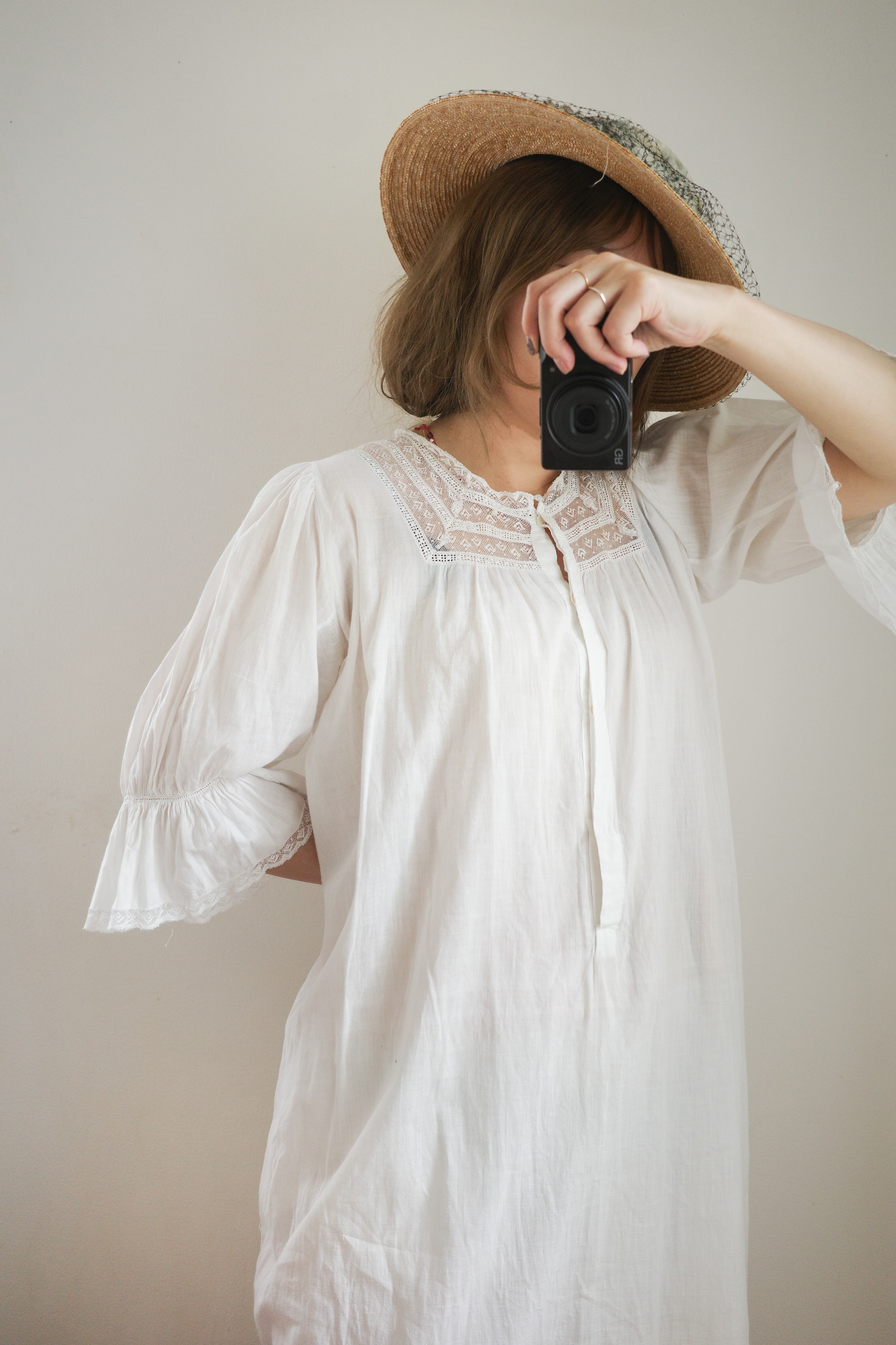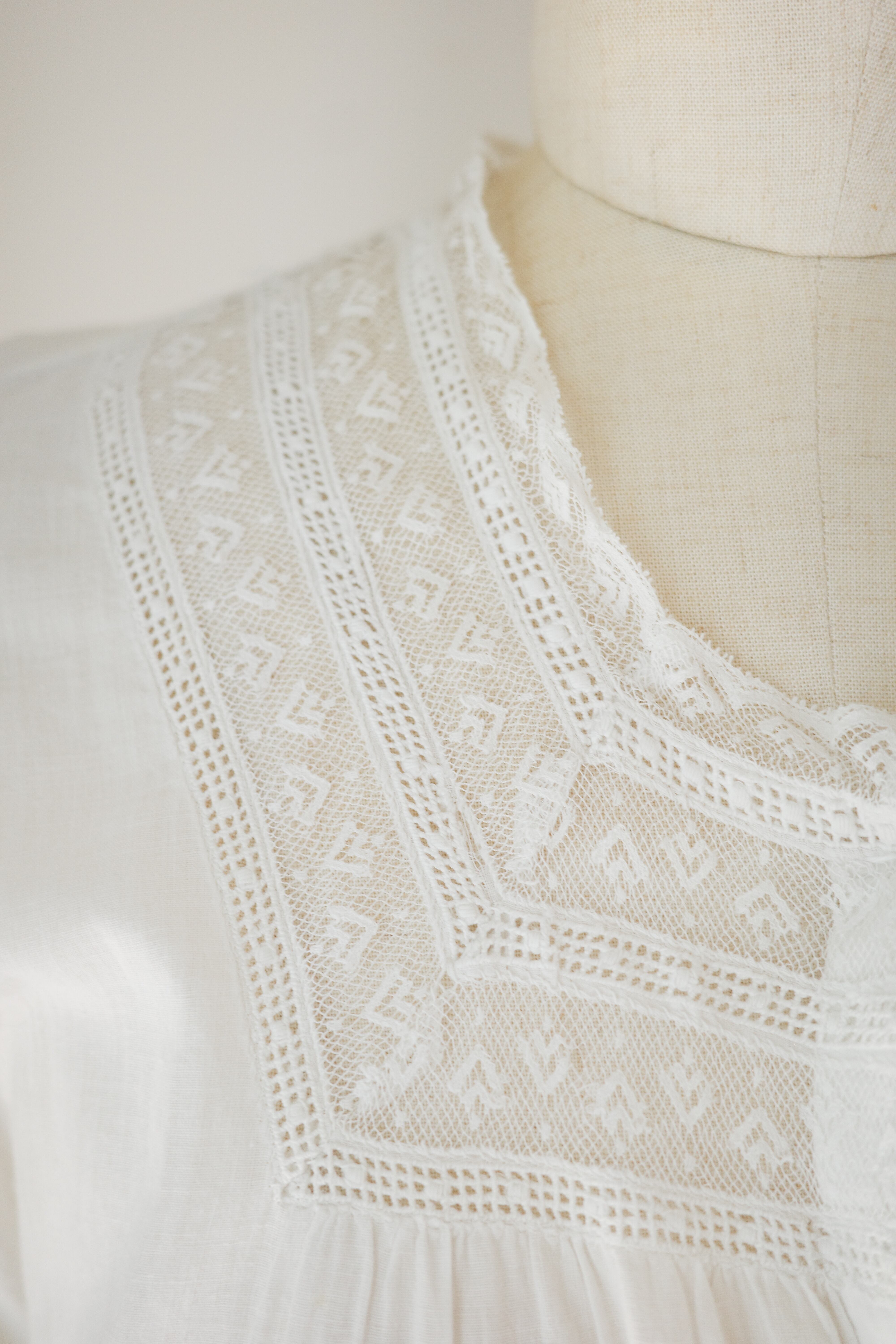 1910’s antique Edwardian white cotton nightgown dress