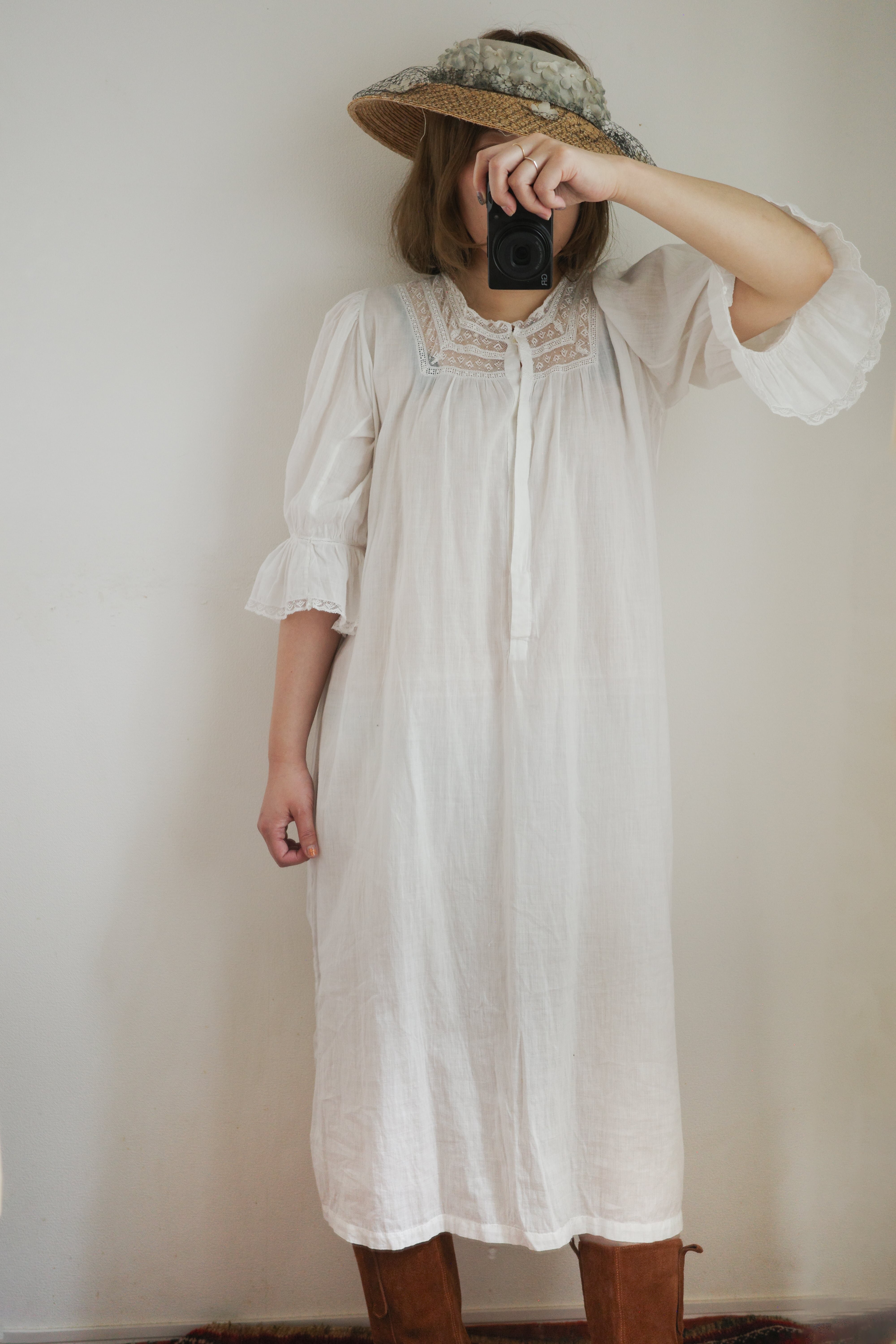 ■ 1910’s antique Edwardian white cotton nightgown