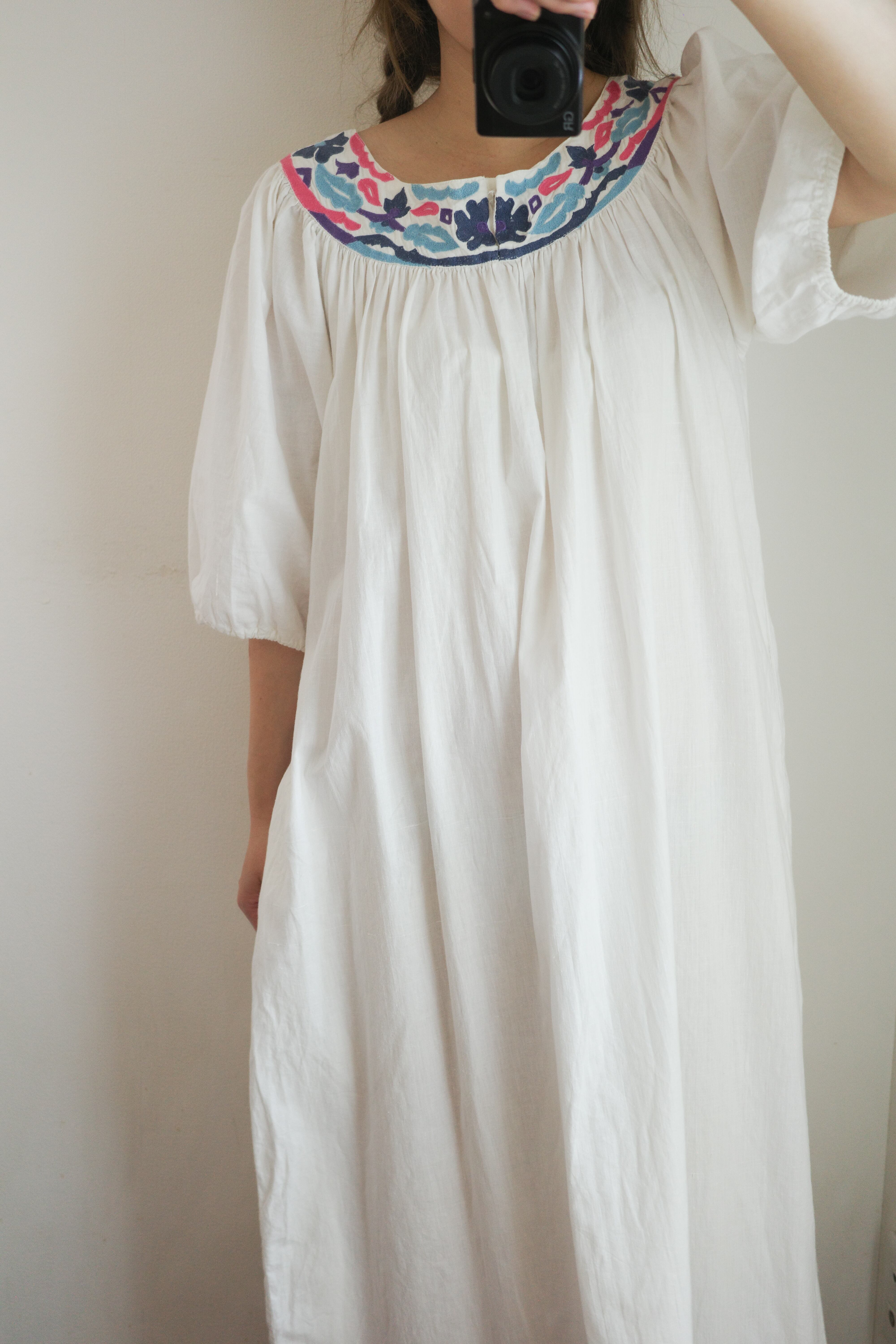 ■ vintage white cotton colorful embroidered long dress