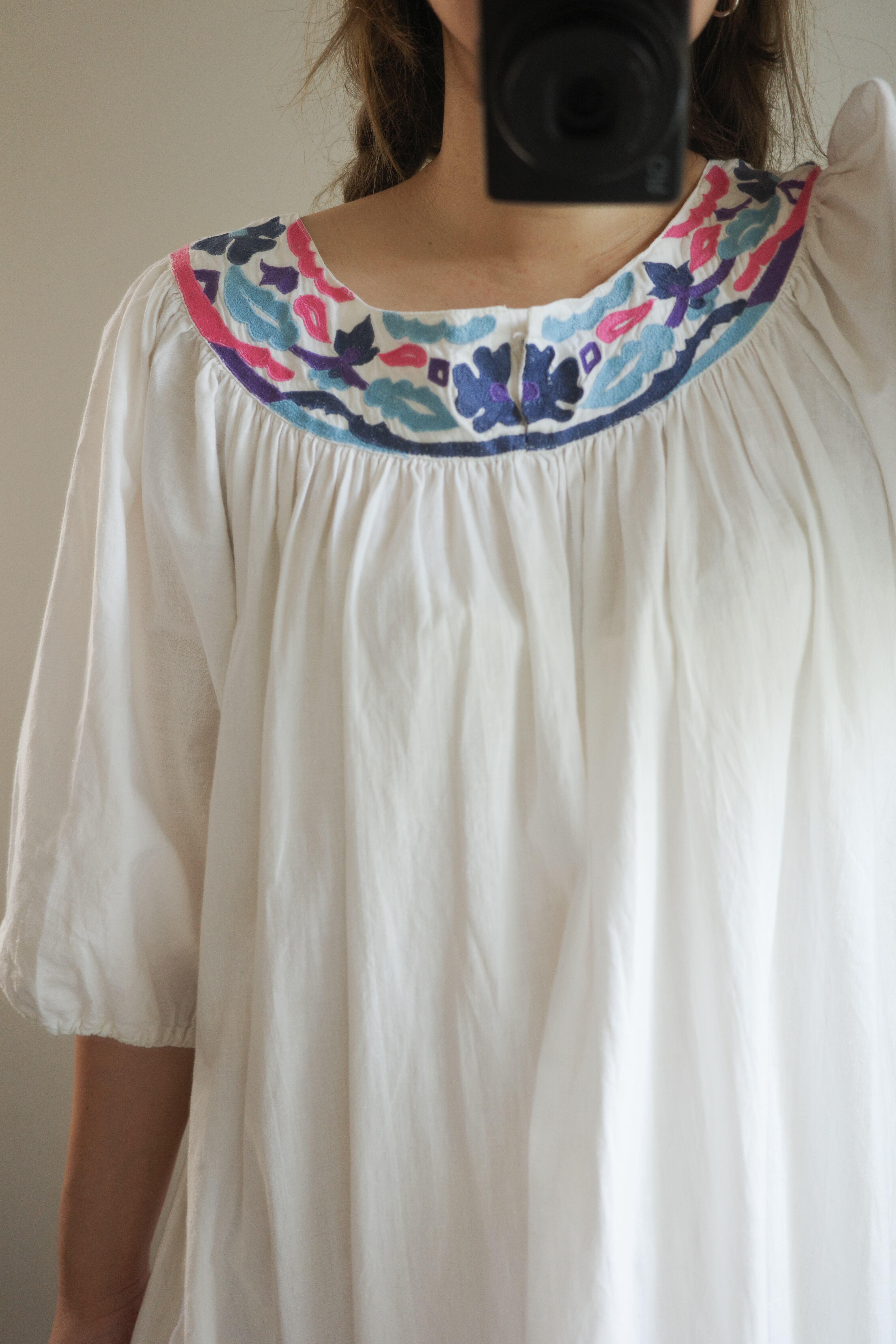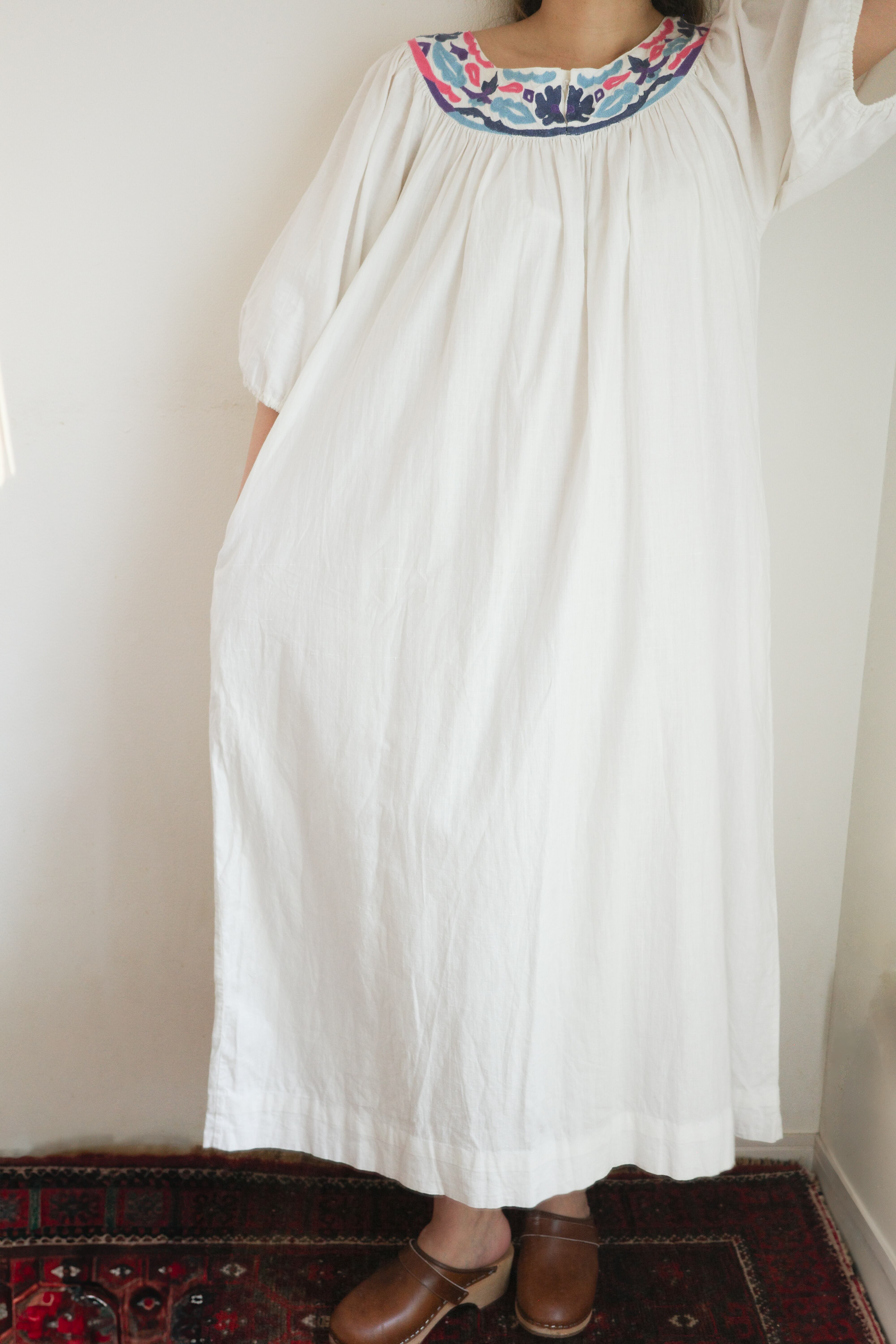 vintage white cotton colorful embroidered long dress