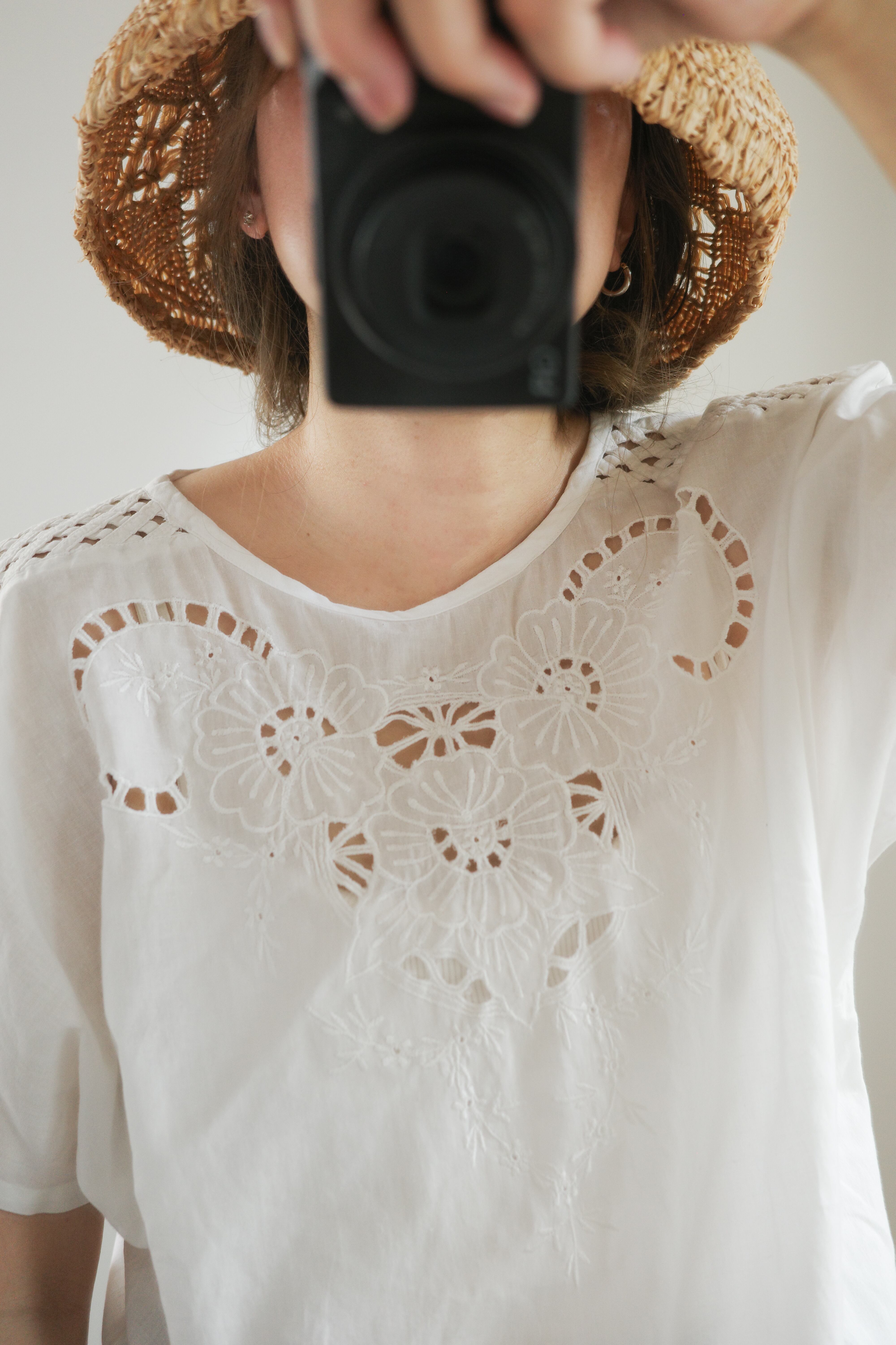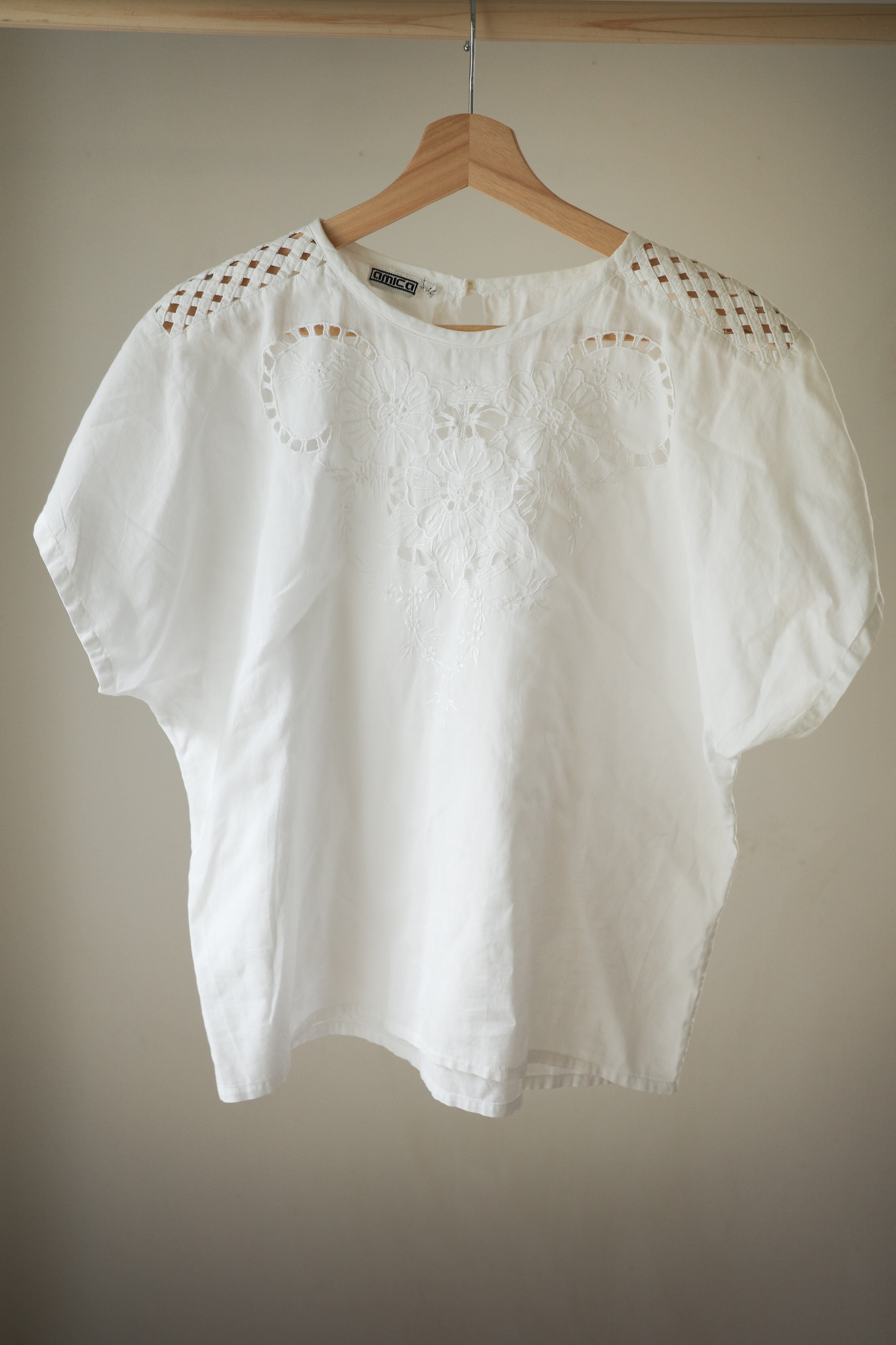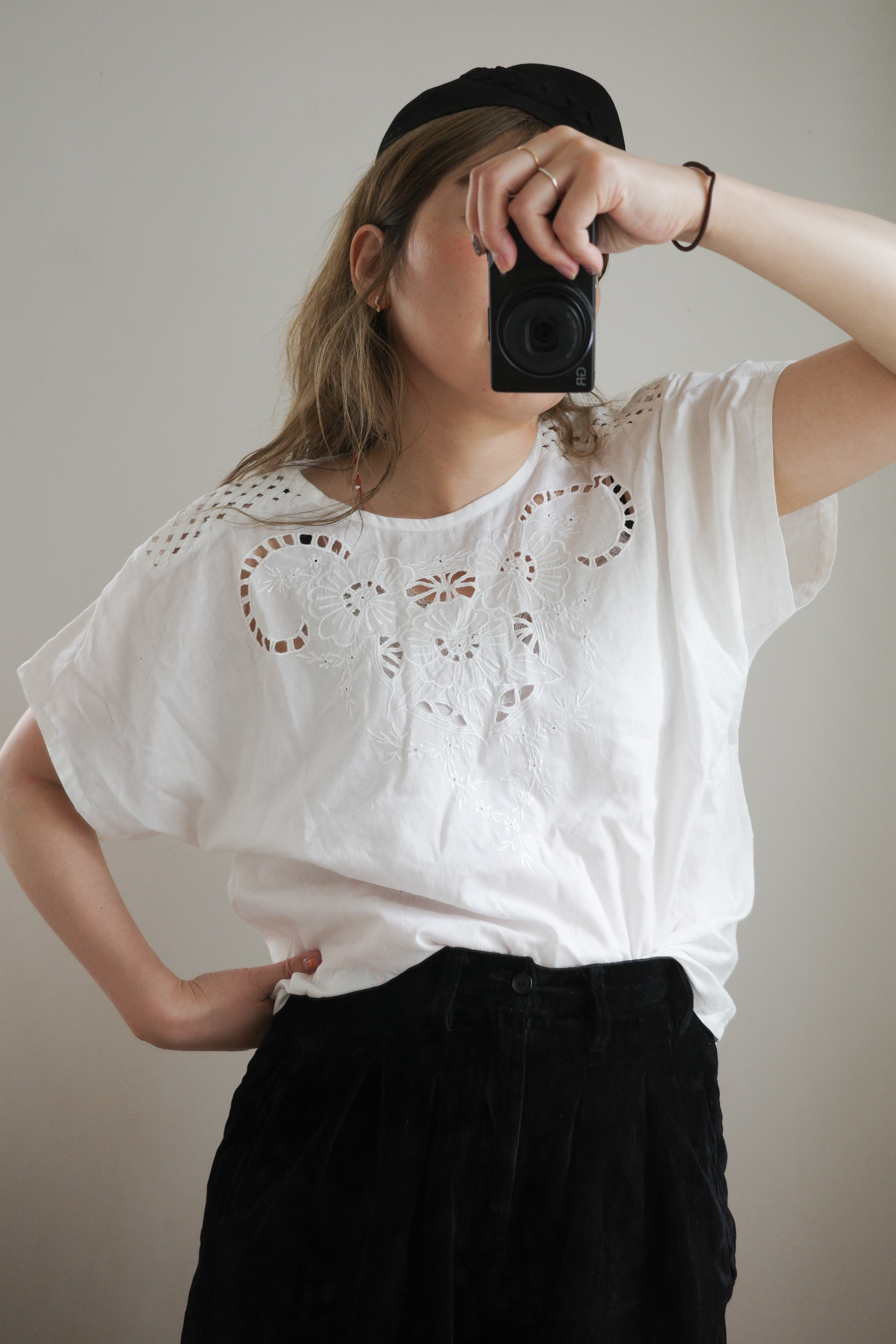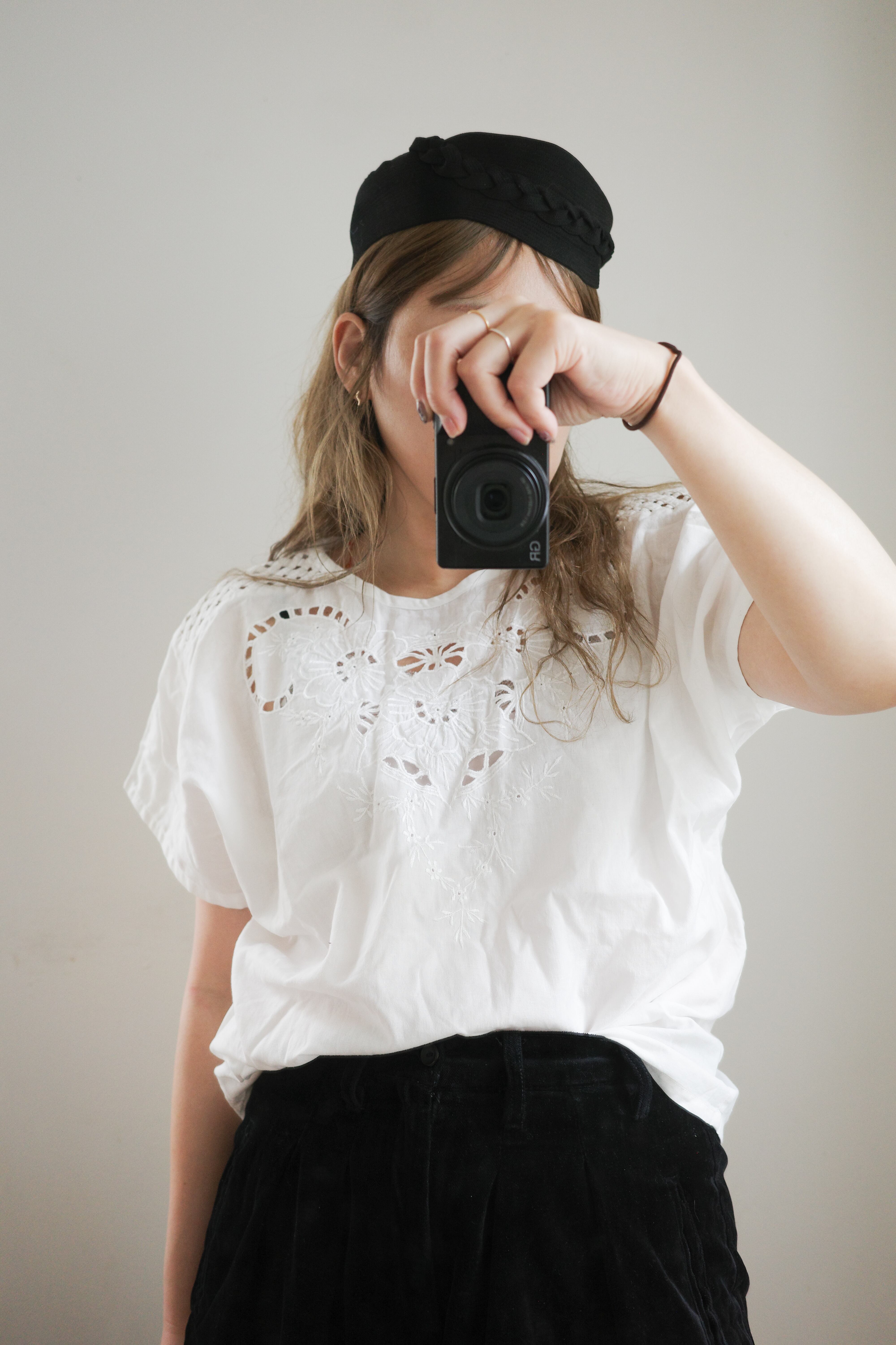 このトップスは、ヴィンテージ感漂うホワイトコットン素材に美しいフランス製のレースが施された一枚です。