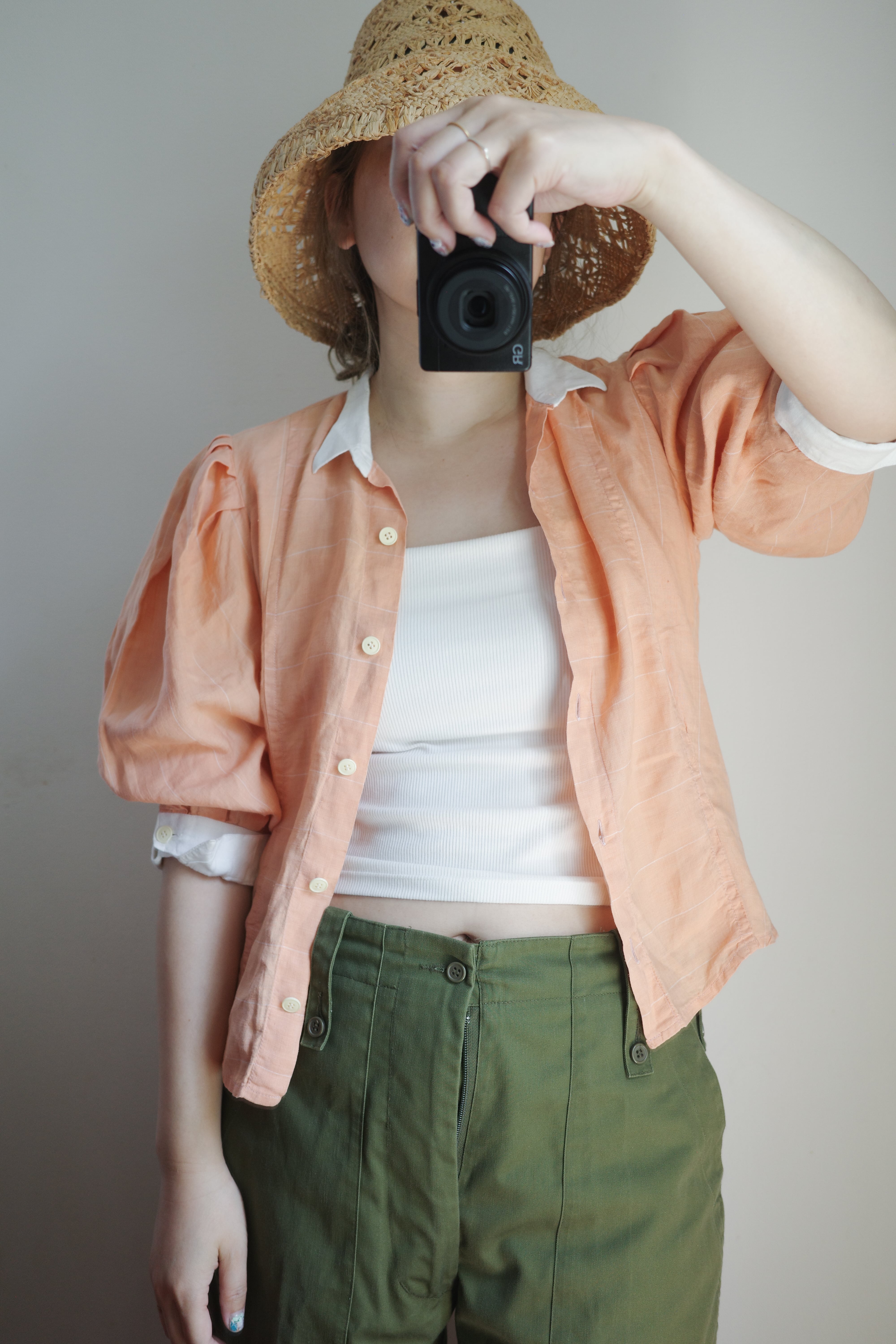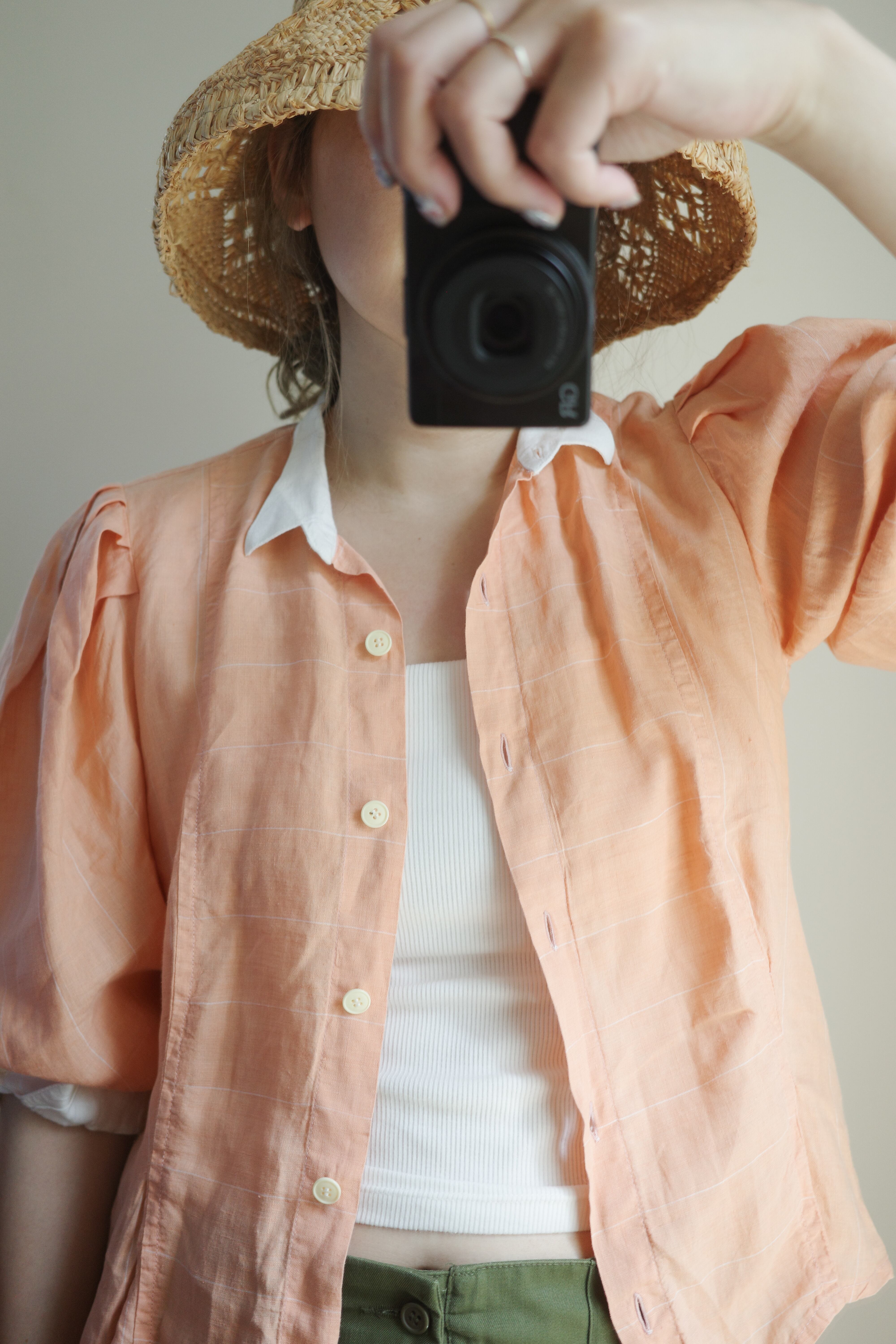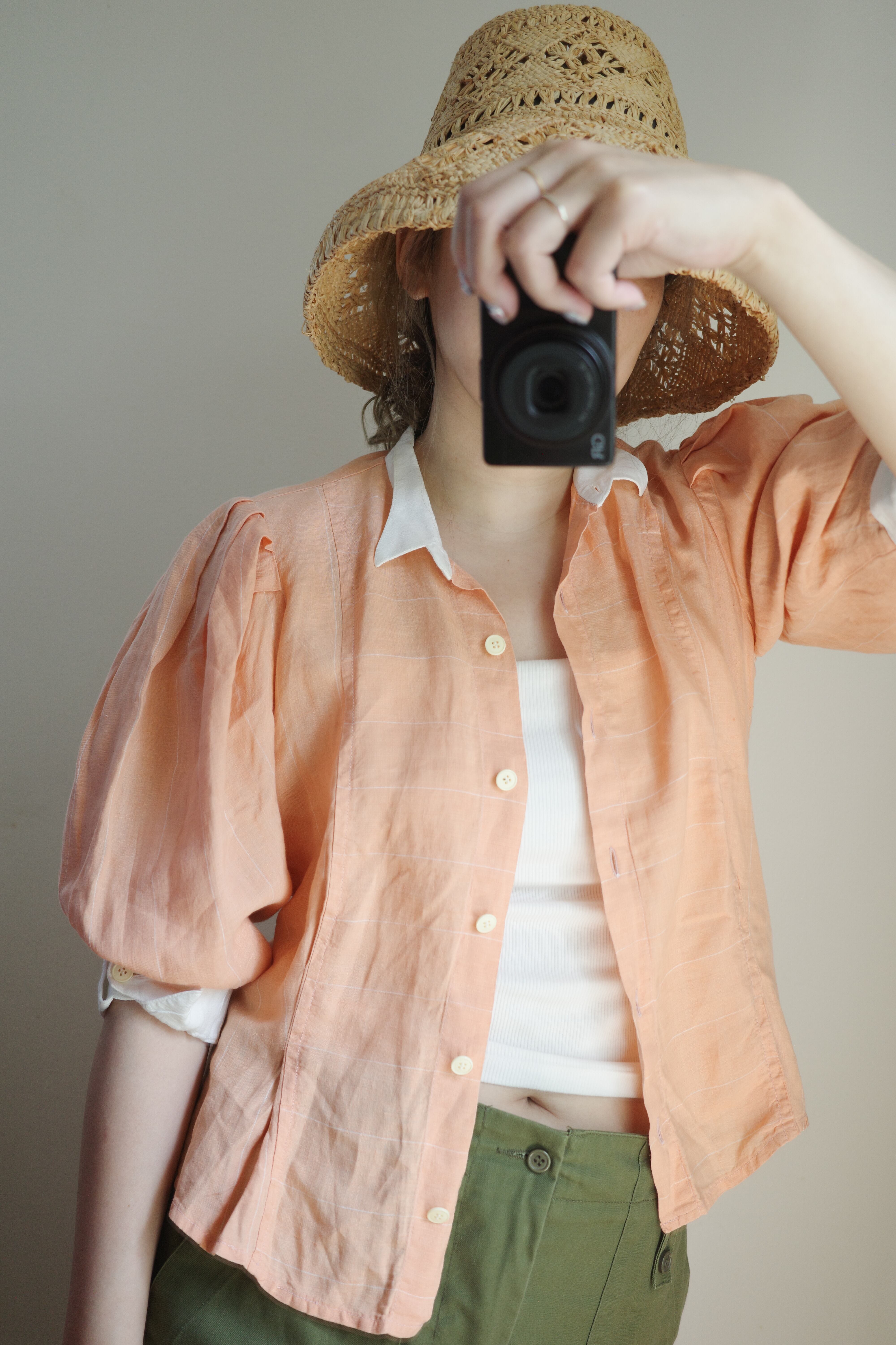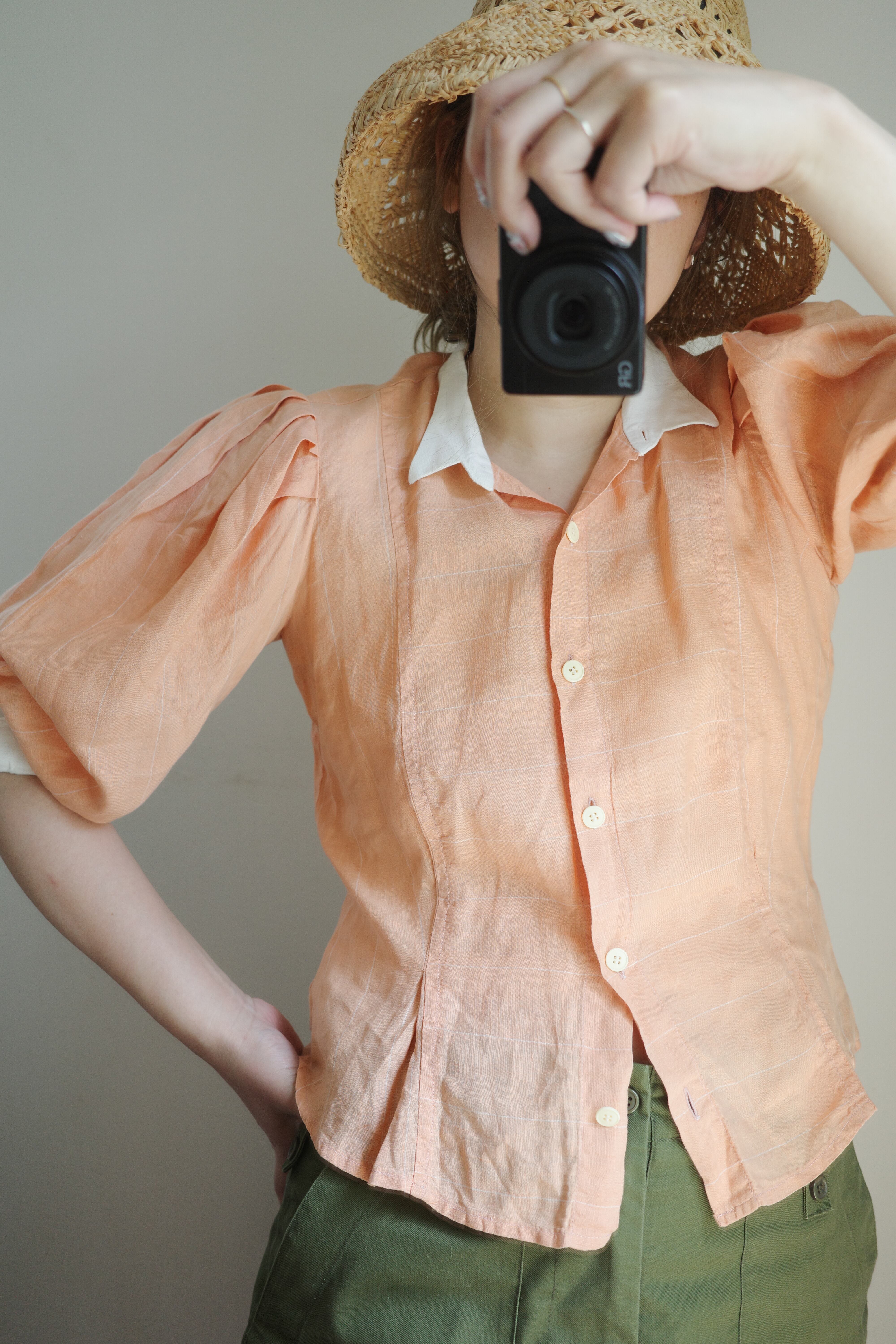 このピンクヴィンテージリネンパフスリーブブラウスは、女性らしさを引き立てるエレガントなデザインが特徴のアイテムです。ふんわりとしたパフスリーブが印象的で、軽やかに着こなすことができ、デイリーコーディネートから特別なシーンまで幅広く活躍します。