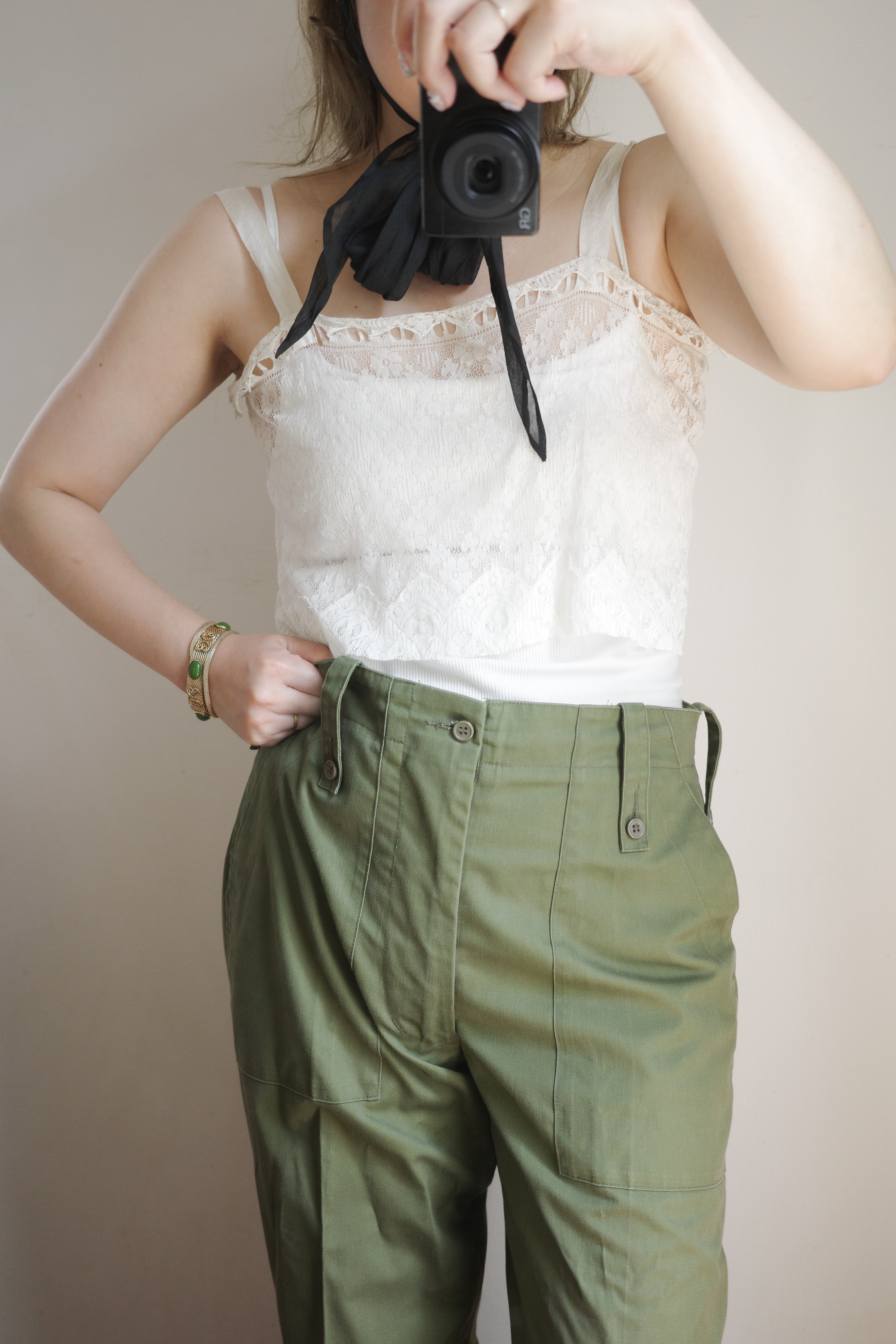 状態は良好ですが、古着特有の使用感があります。若干のレースのほつれが見られるため、写真にてご確認ください。