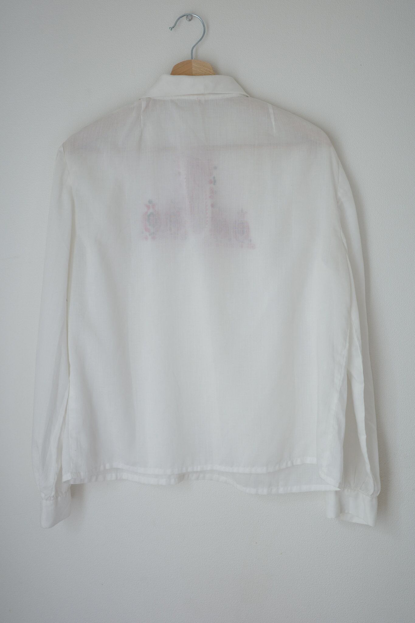 デザインのポイントは、胸元に施されたボリューム感のある刺繍と、着心地を重視したシルエットです。生地は薄手で透け感があります。(写真13枚目)