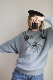 ■ 1980’s blue gray sequins knit sweater