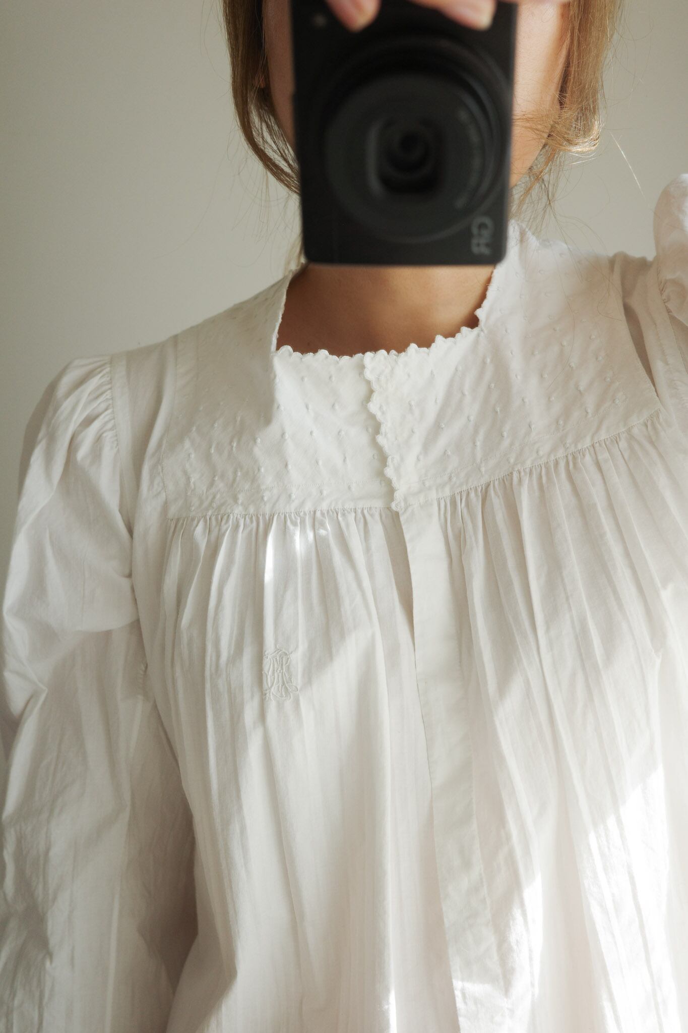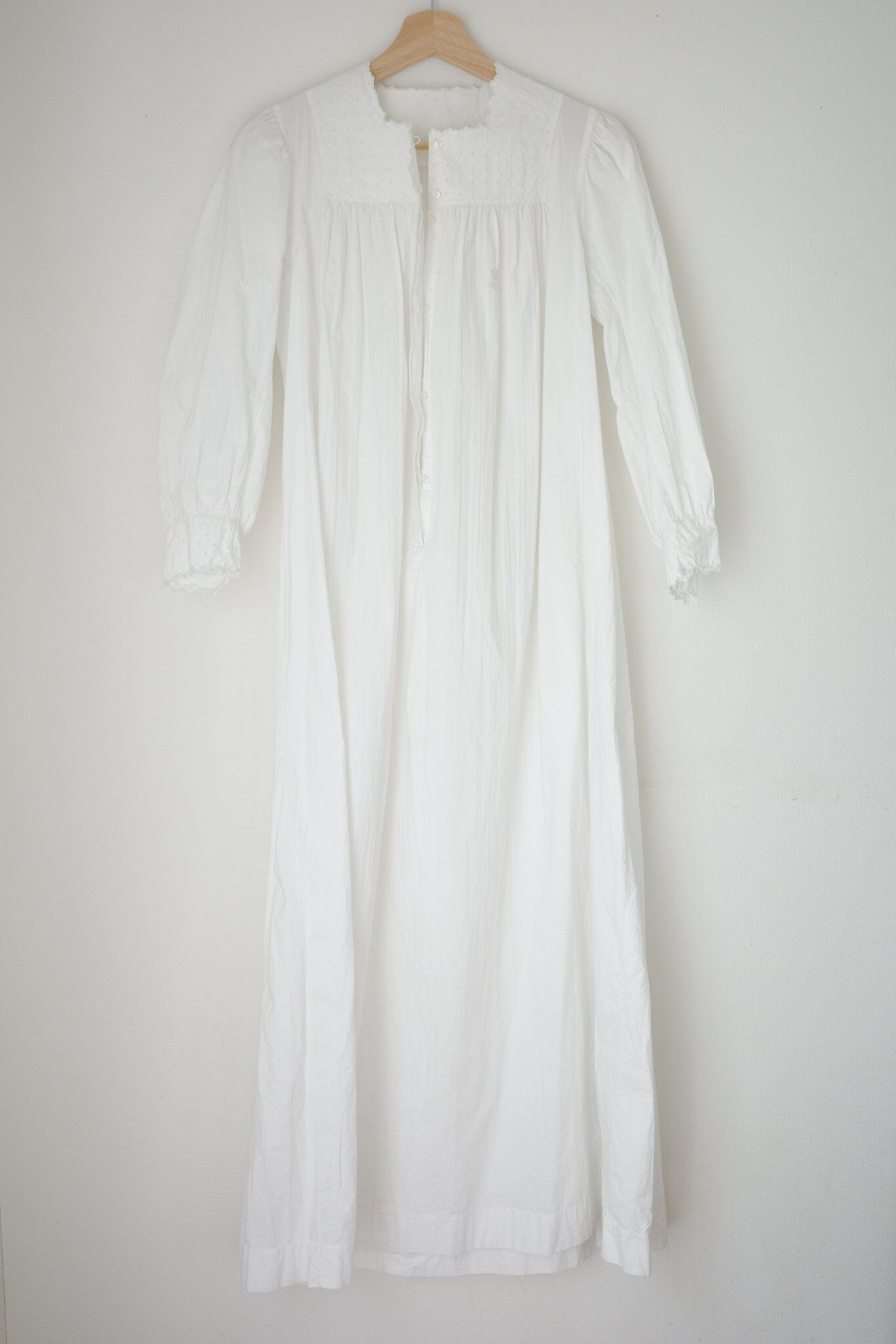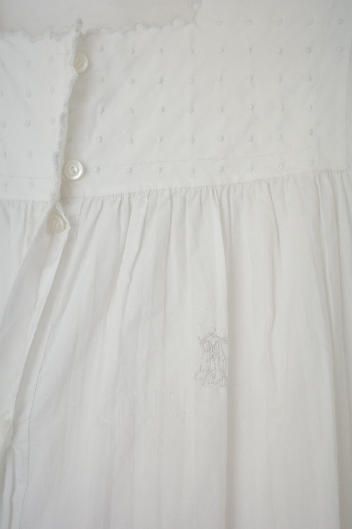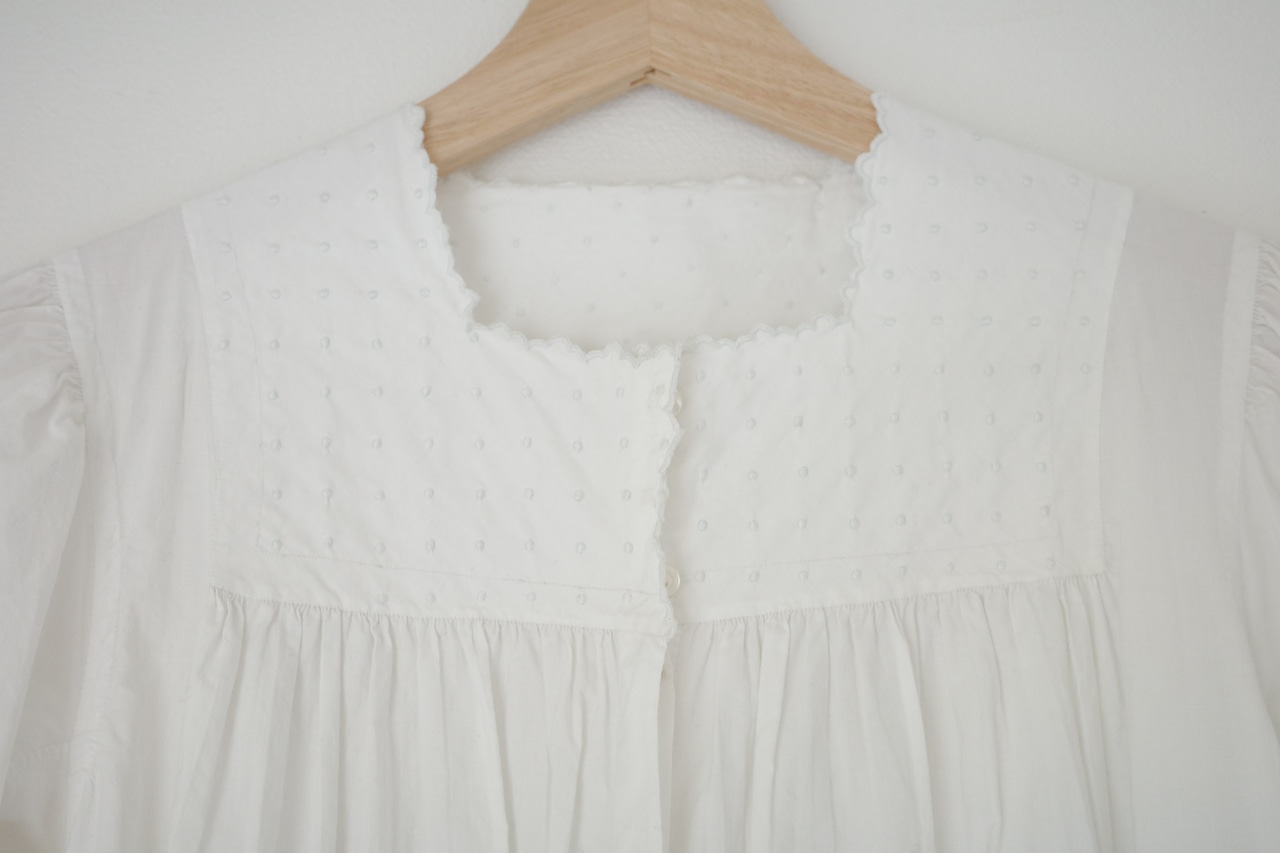 ■ Delightful Edwardian cotton nightgown w/ puffed sleeves, embroidered dots