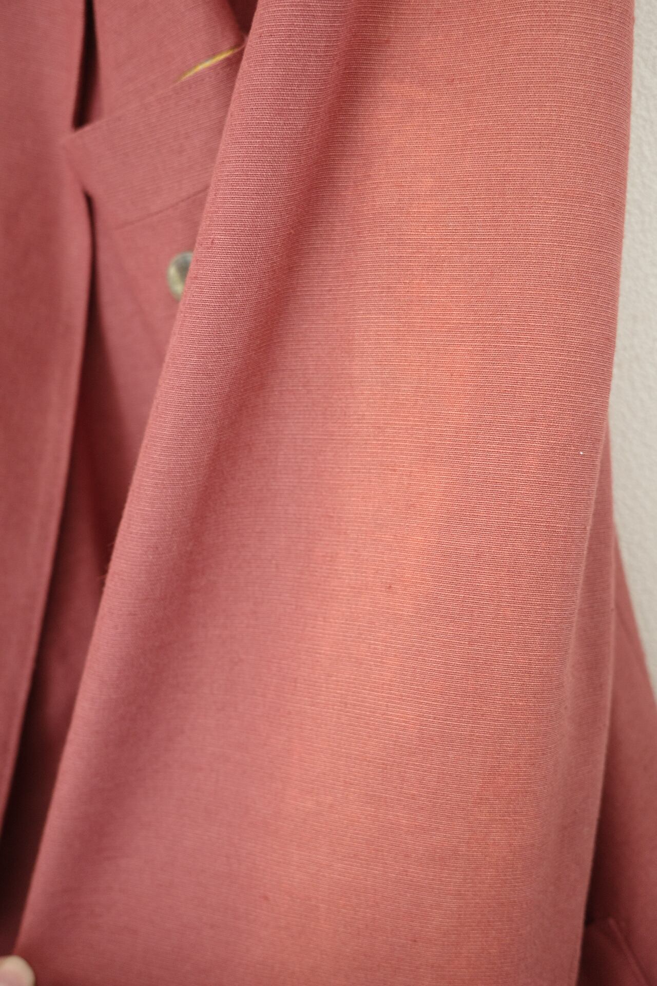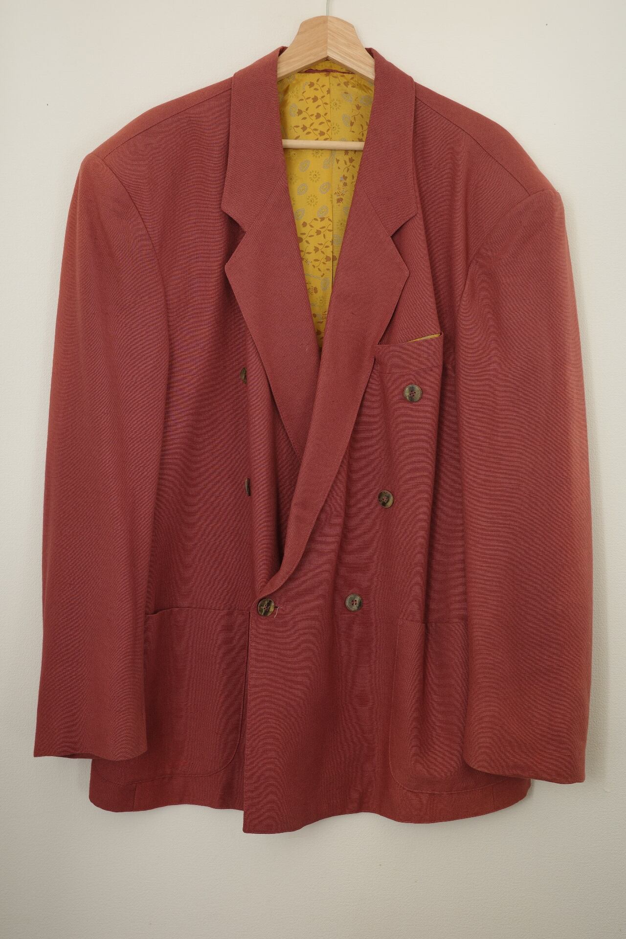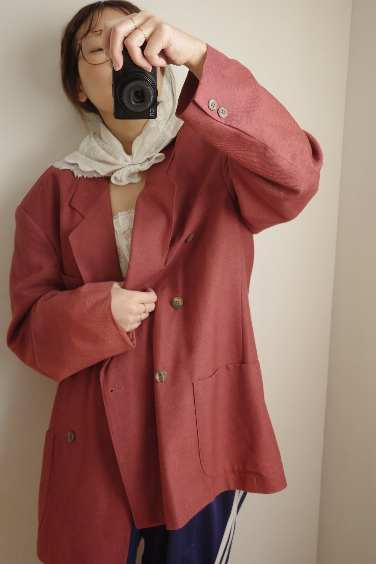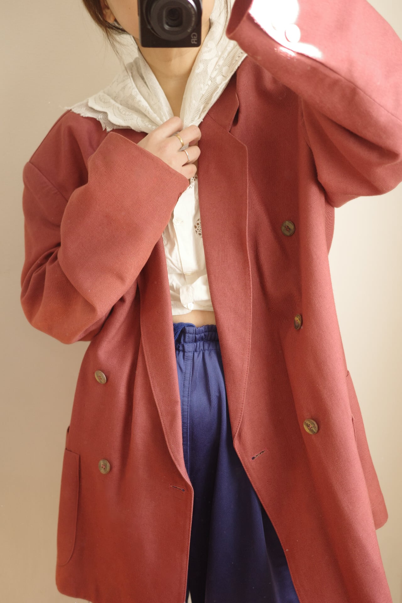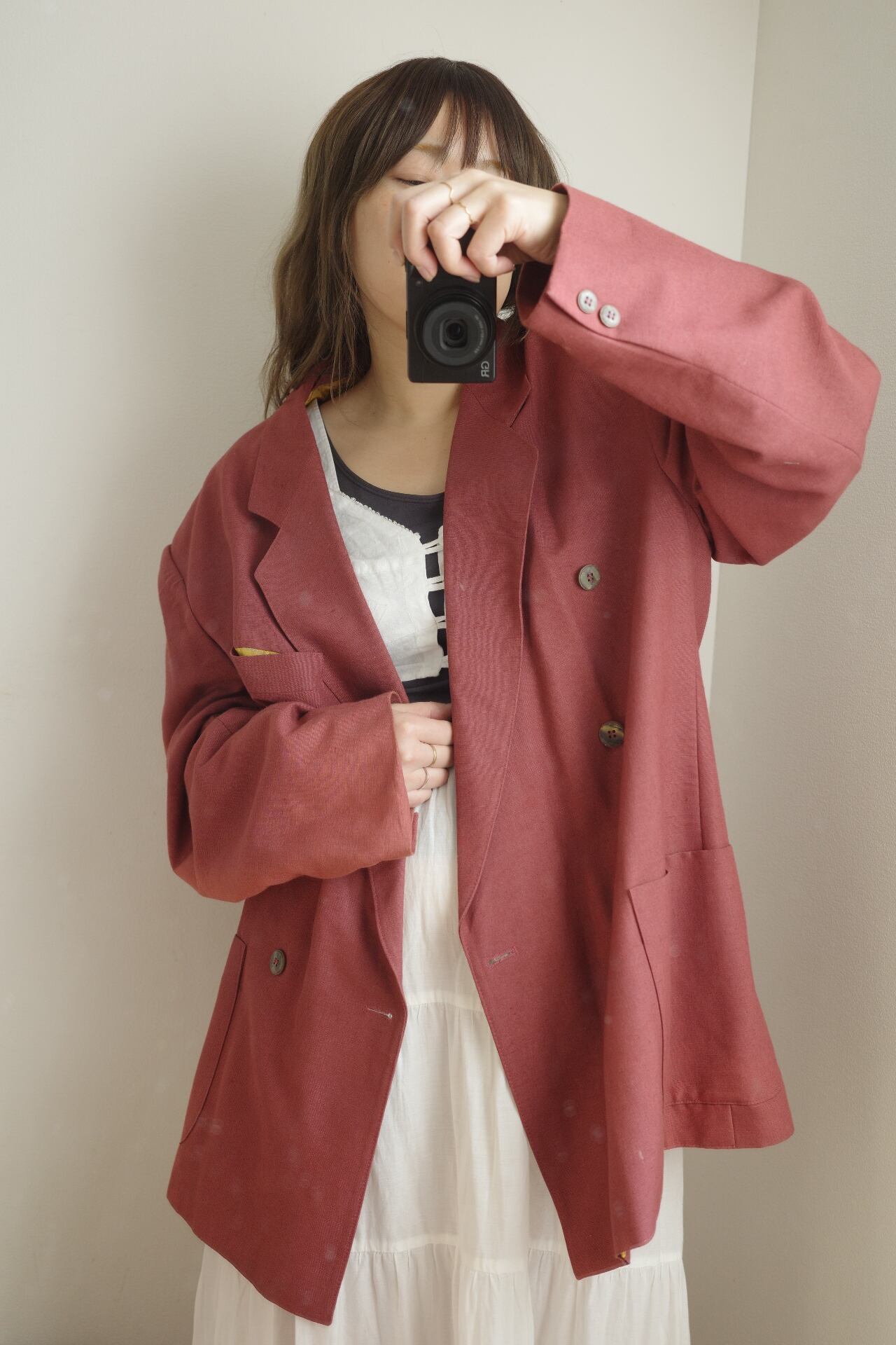 この1990年代のヴィンテージダブルテーラードジャケットは、オレンジピンクブラウンの絶妙な配色が特徴で、レトロな魅力を放つアイテムです。ダブルテーラードデザインで、洗練された印象を与えつつ、カジュアルからフォーマルまで幅広いスタイルに対応可能です。