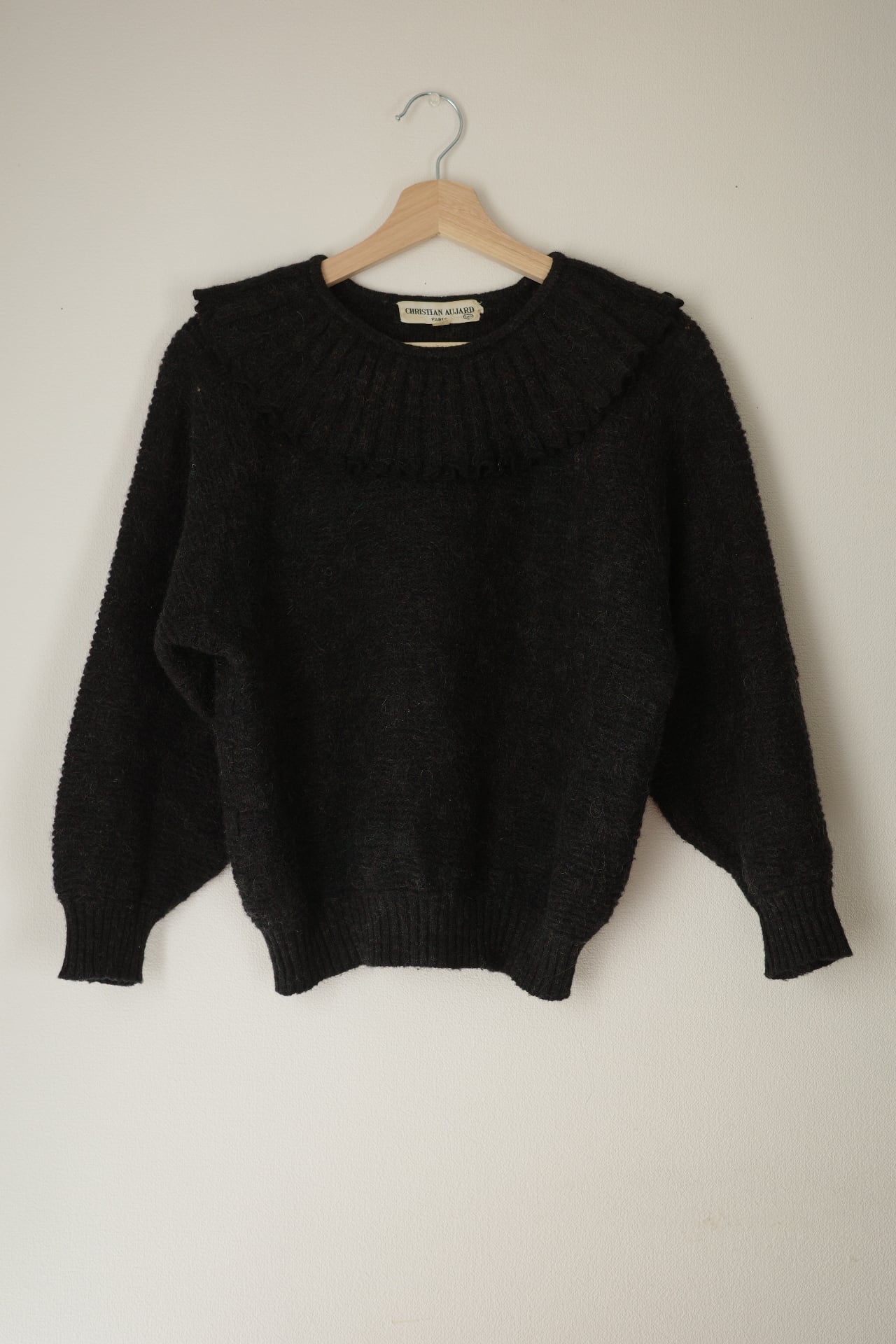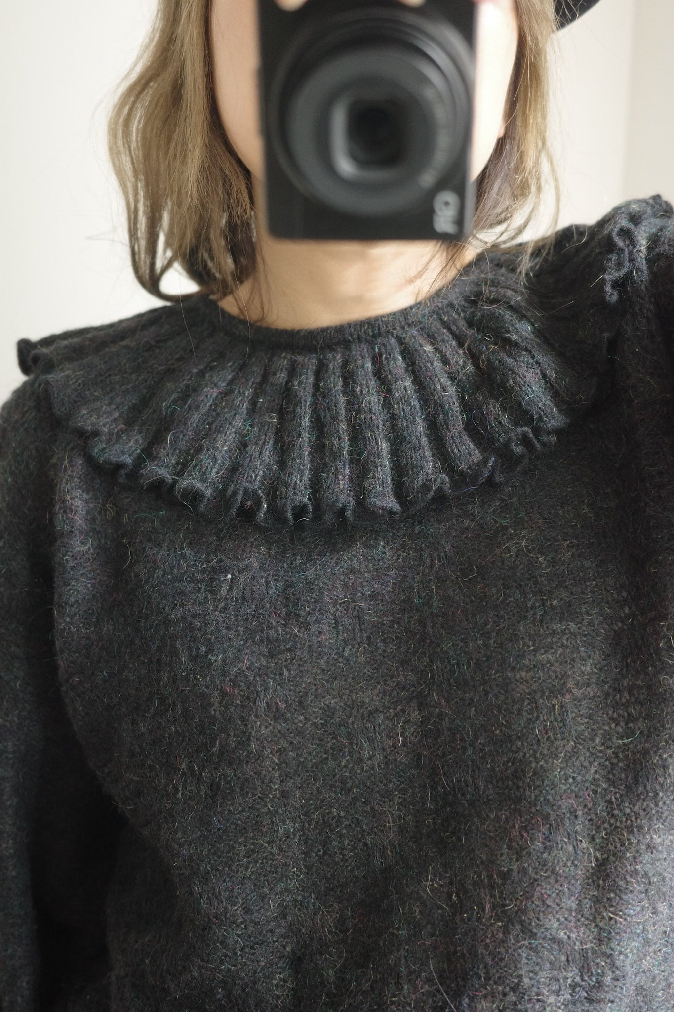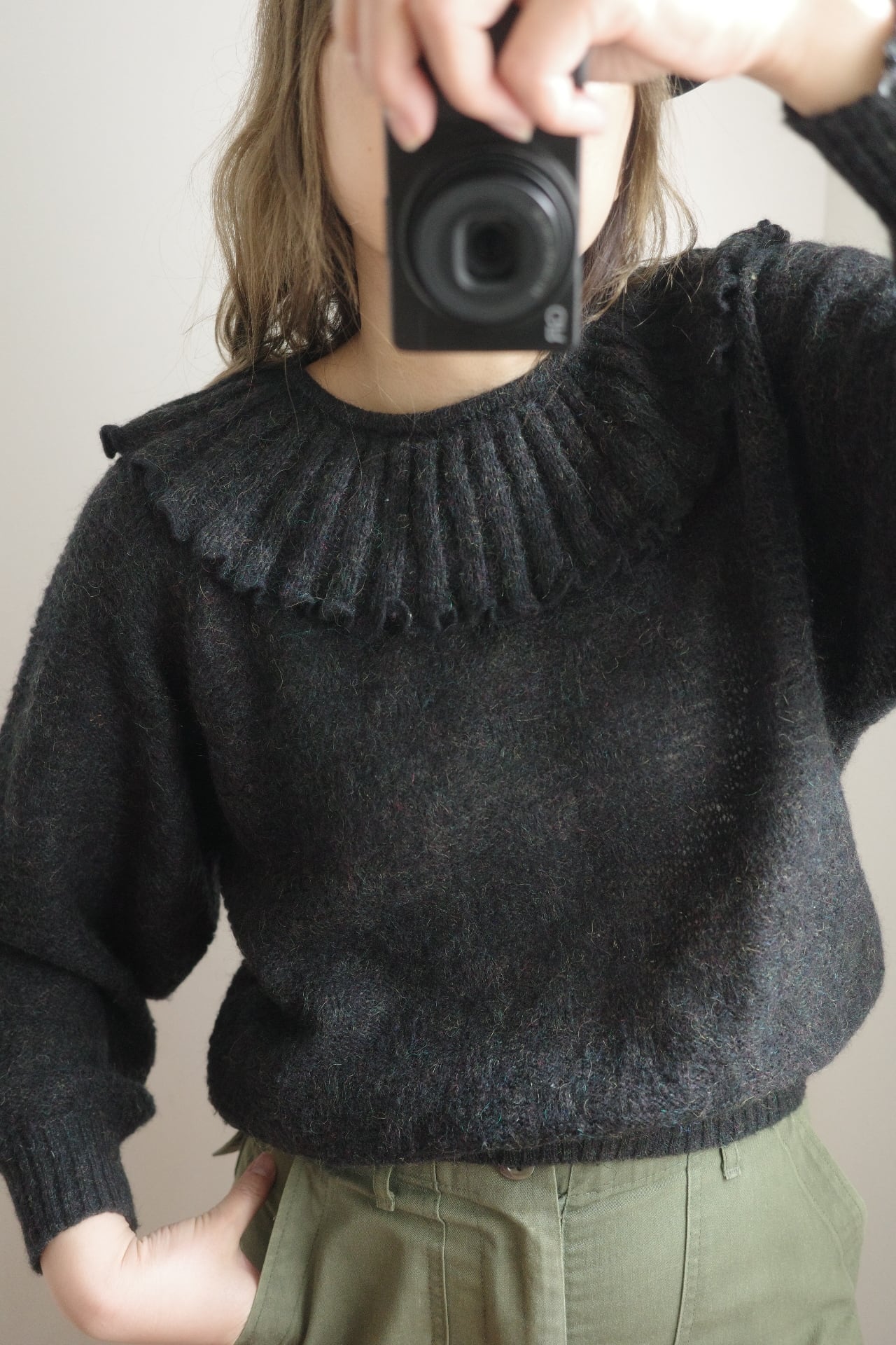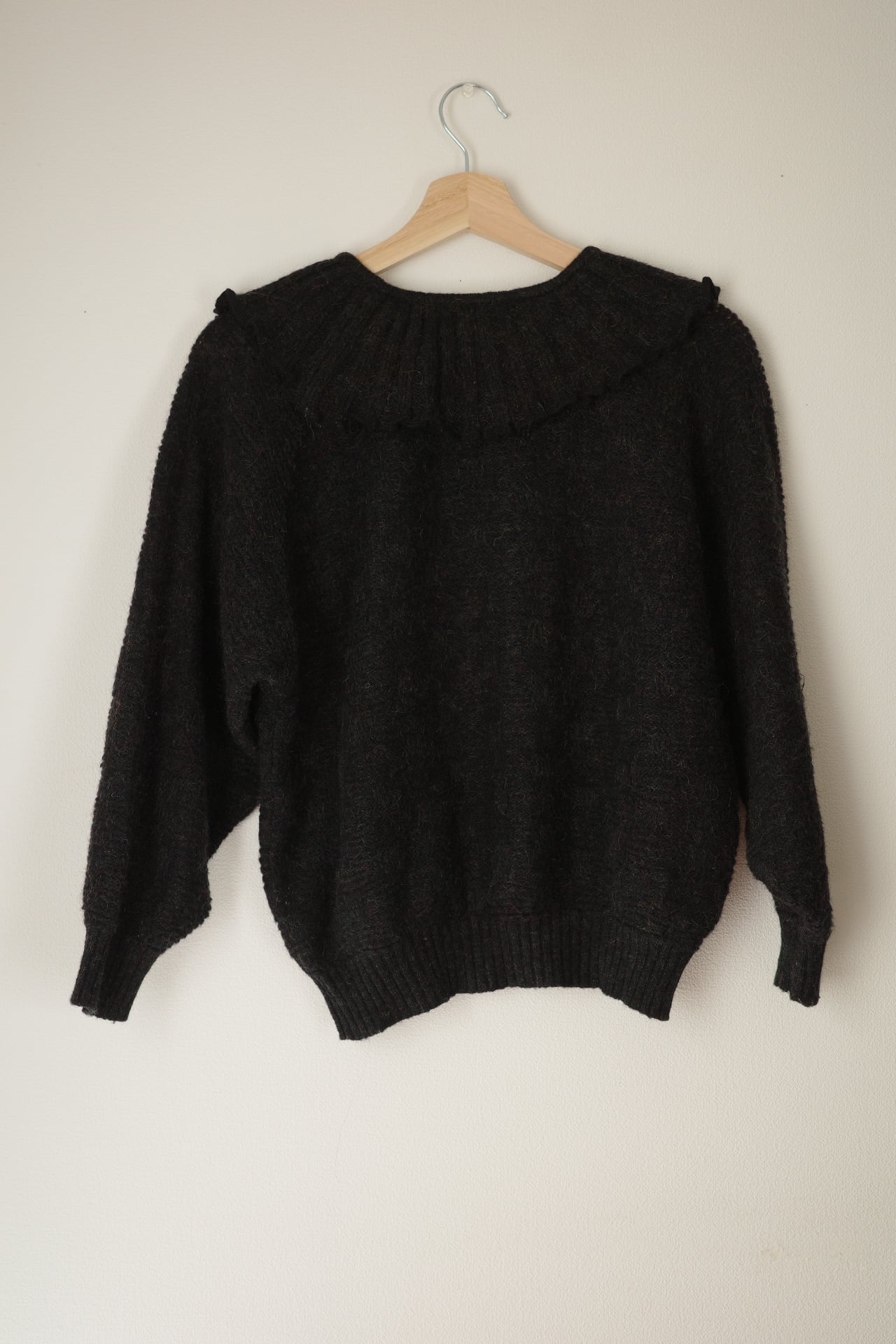 vintage frill collar charcoal black knit top