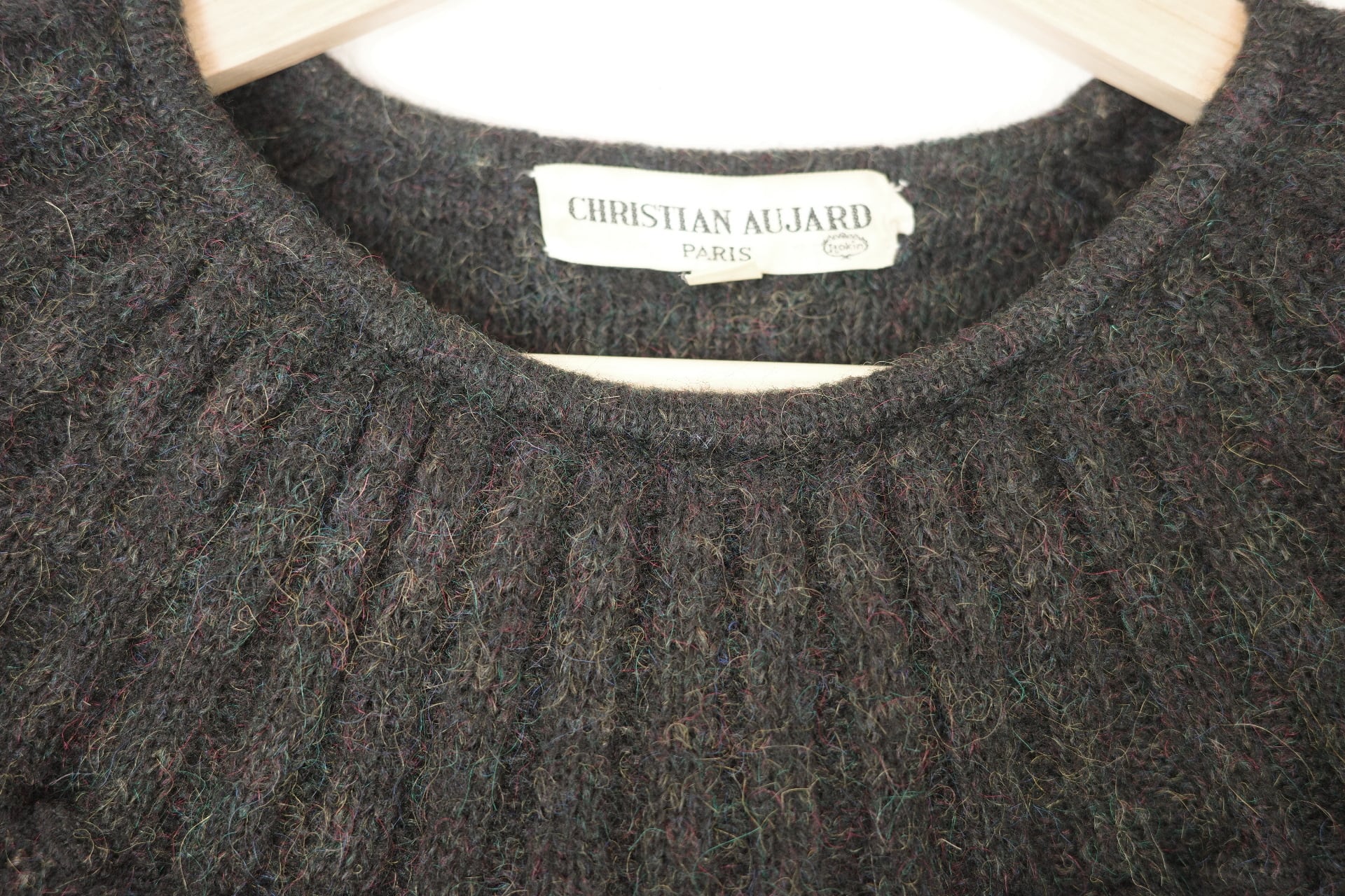 ニットは毛糸にカラフルな糸がミックスされています。