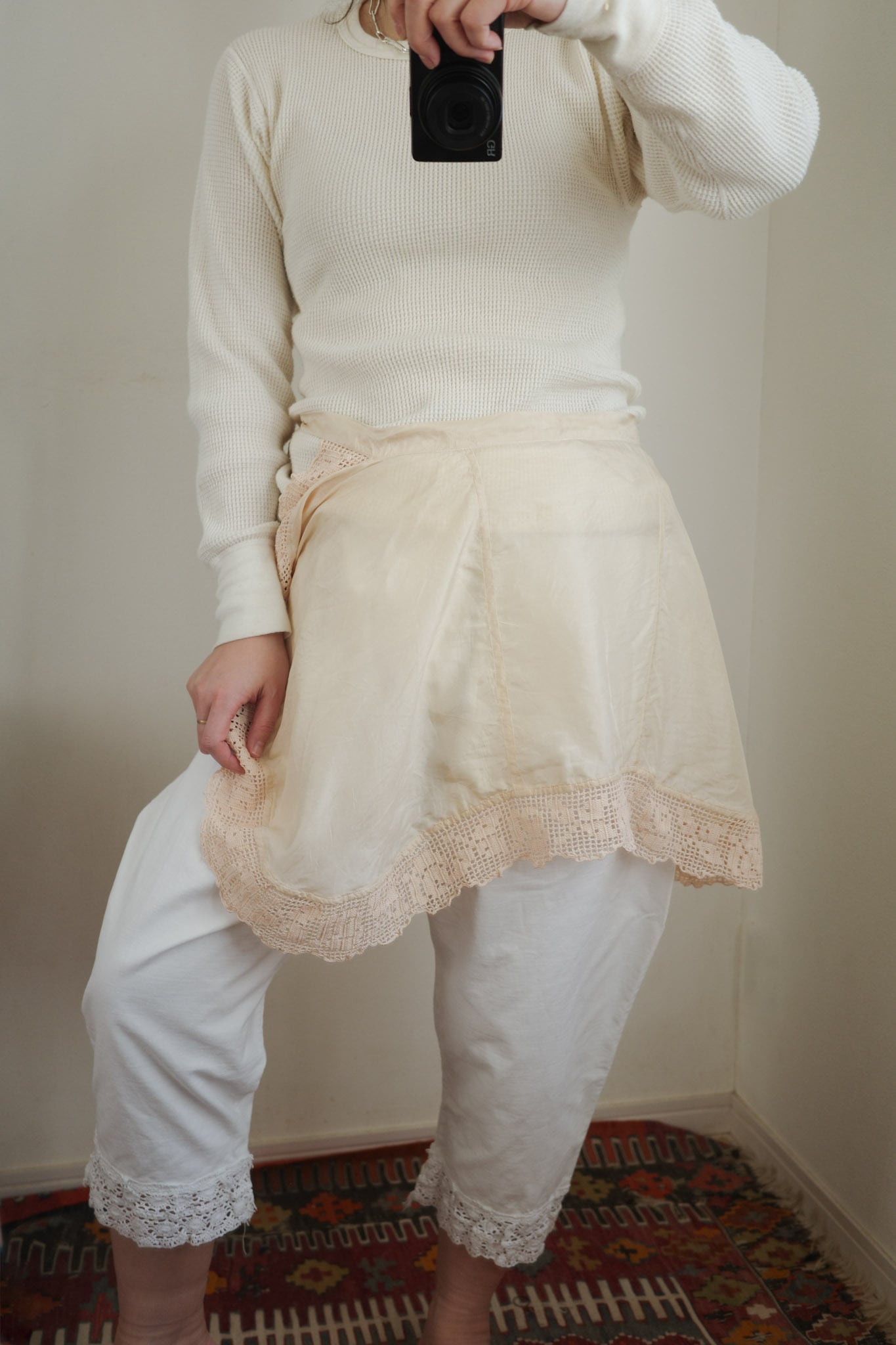 vintage removable pink beige silk lace collar