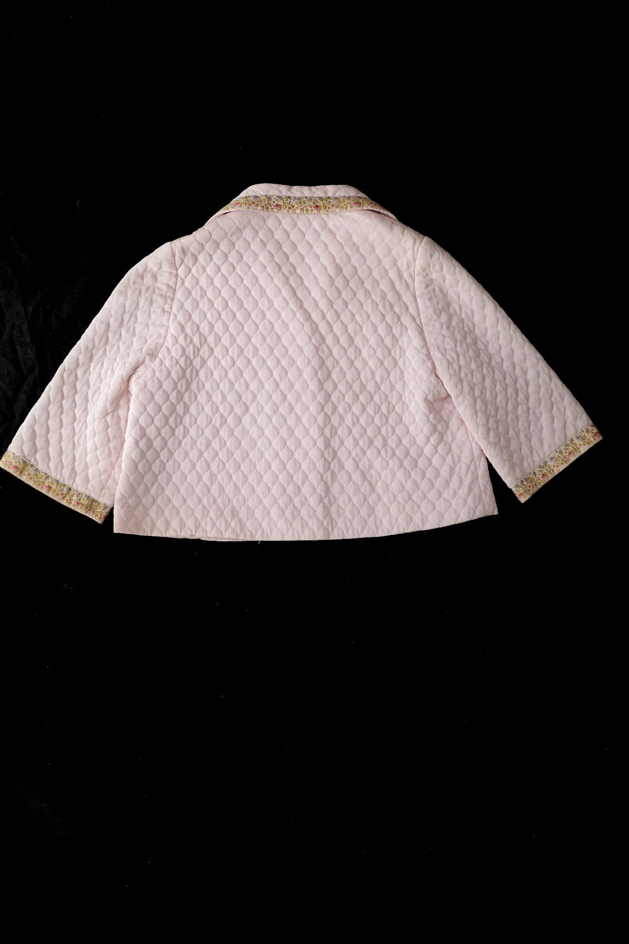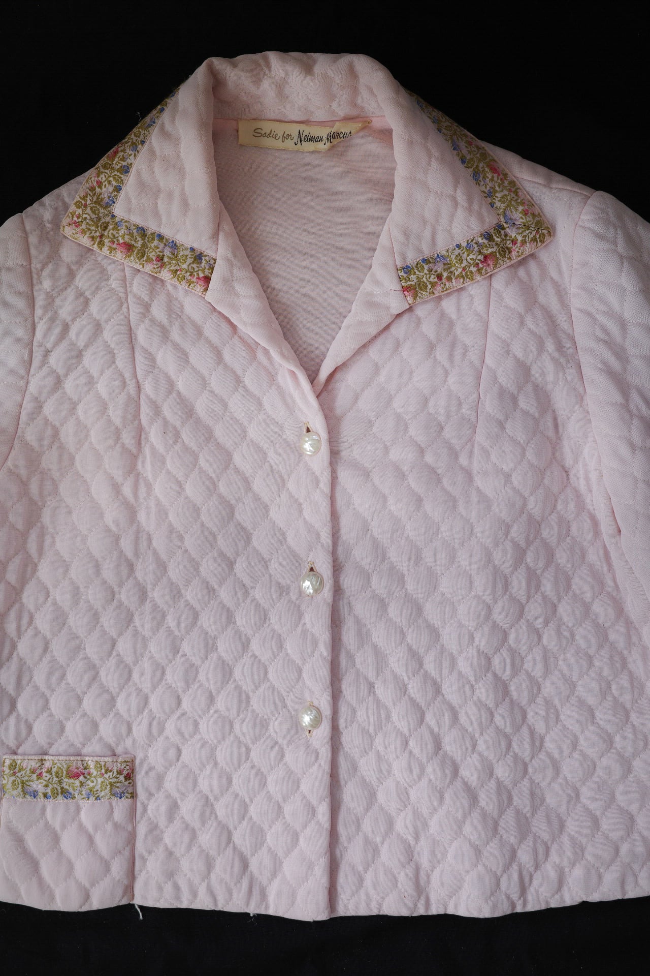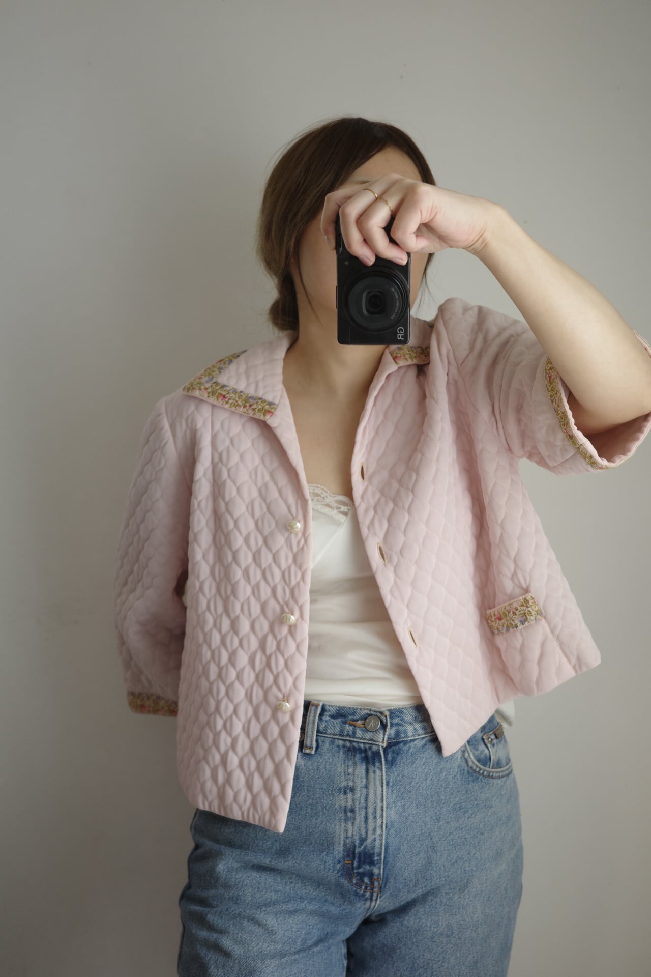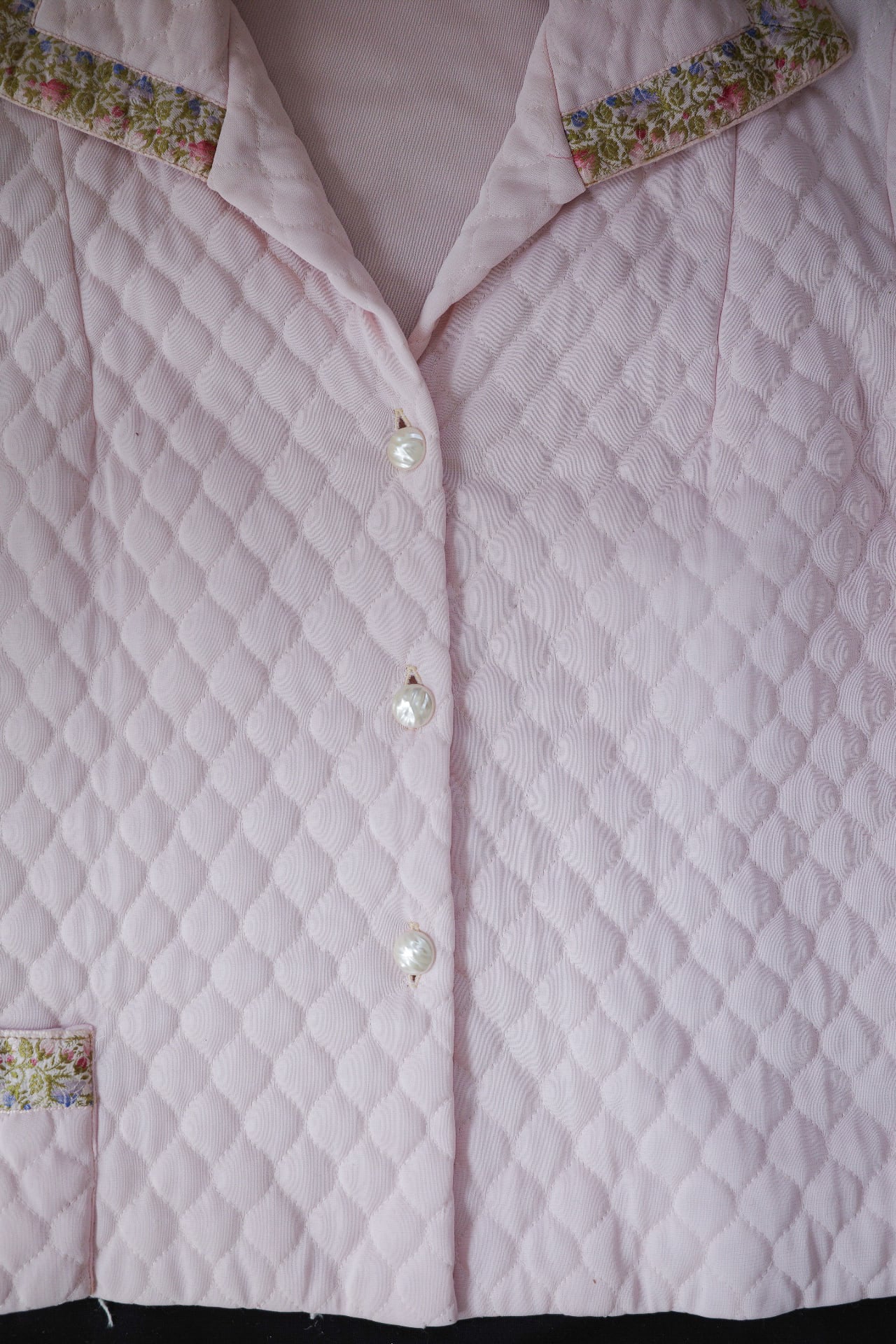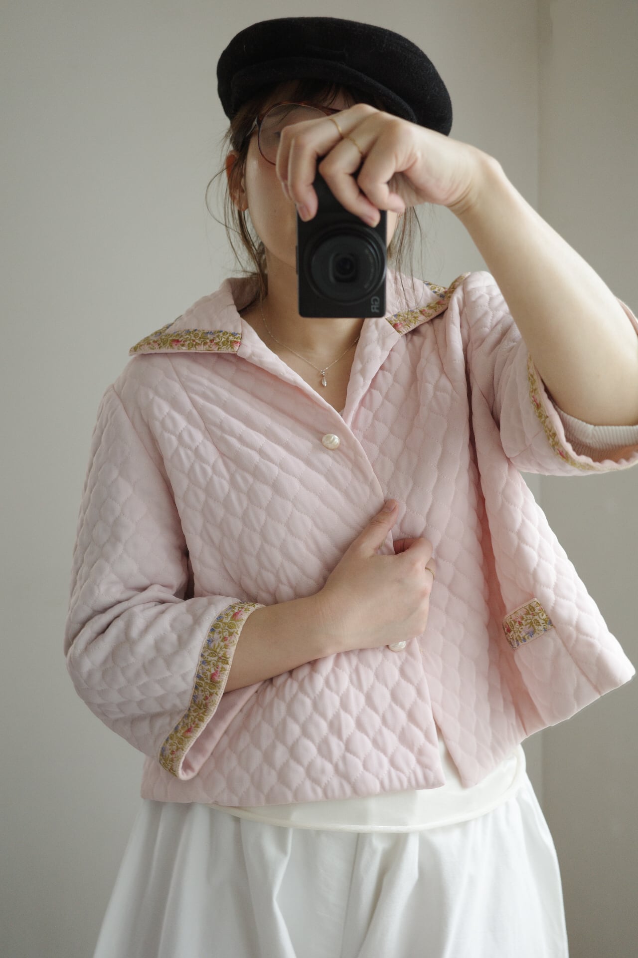 このヴィンテージのピンクキルトベッドローブは、柔らかで包み込まれるような素材感が特徴です。