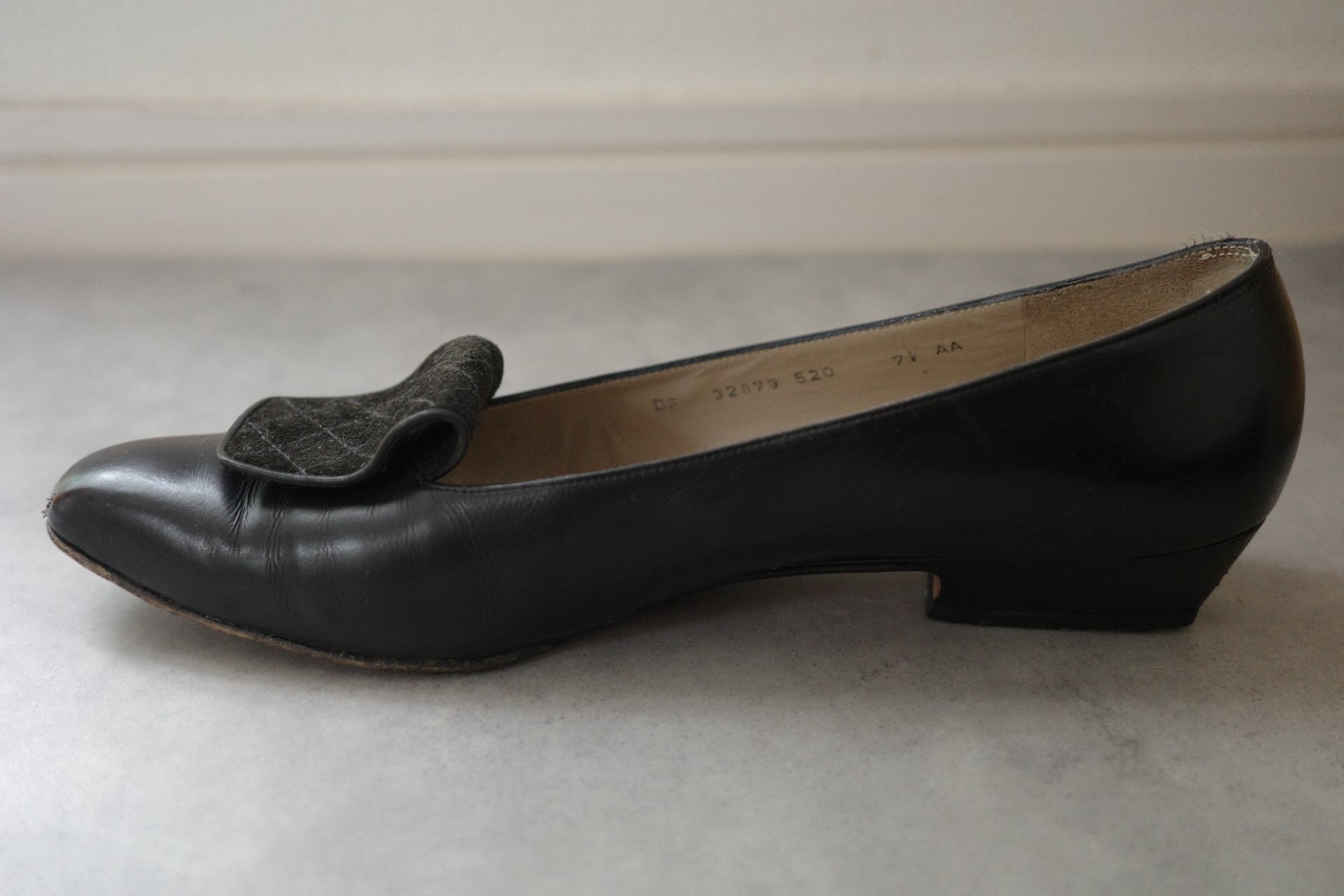 状態については、ヴィンテージアイテムならではの経年による若干の使用感が見受けられますが、全体的には良好な状態です。靴裏は使用感があります。