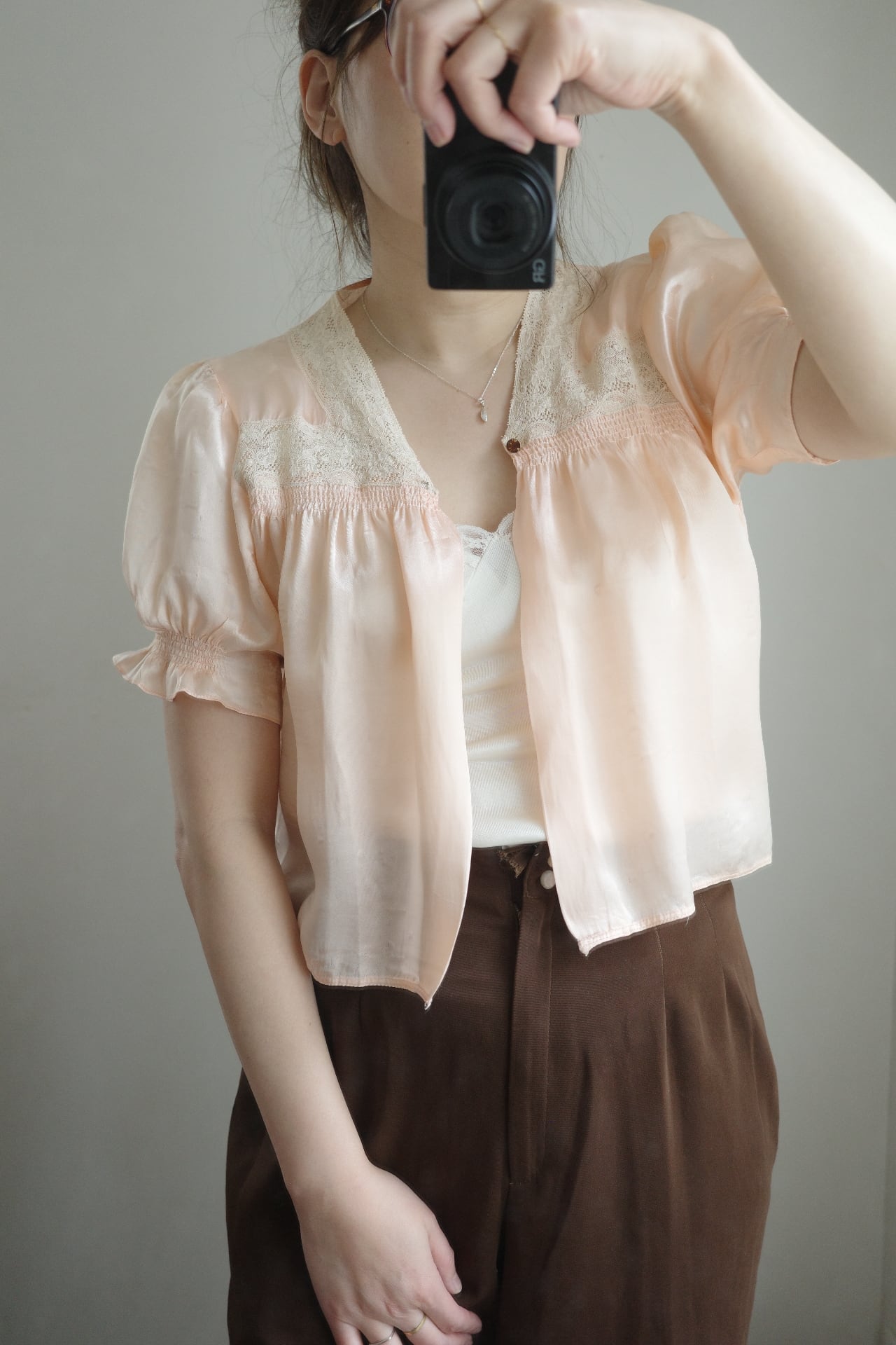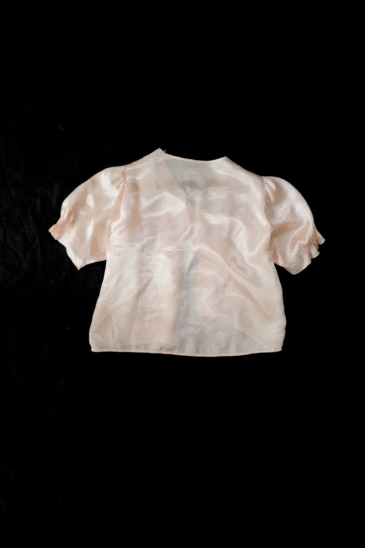 このヴィンテージのバブルスリーブストライプブラウスは、愛らしいパフスリーブで、軽やかな素材感が心地よく、カジュアルなコーデも甘く見せてくれる一着です。