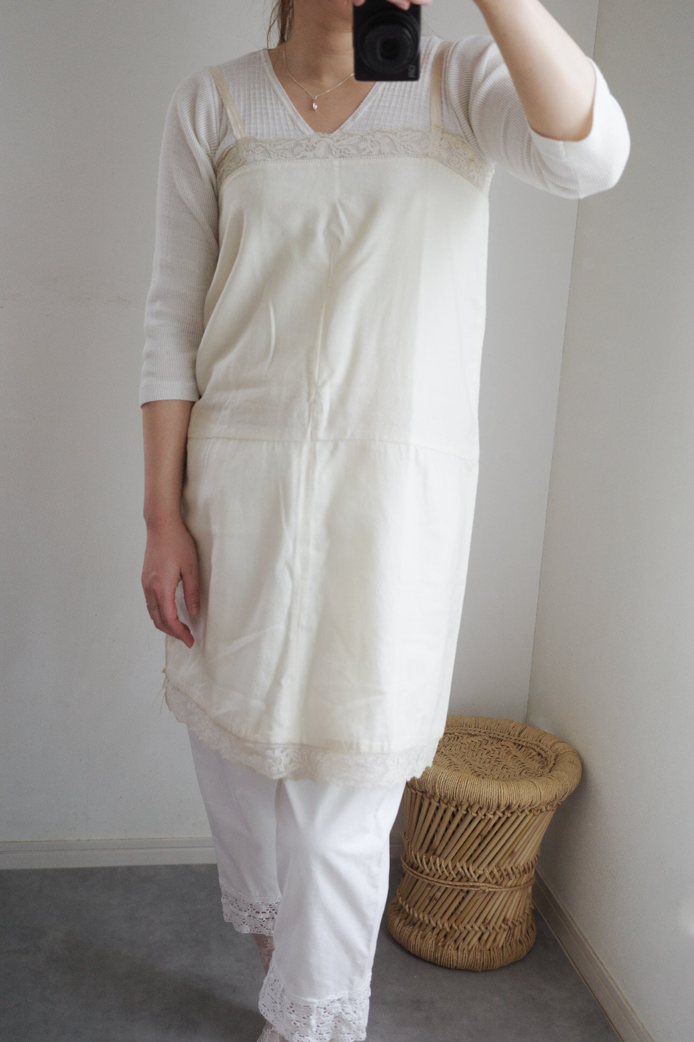 このヴィンテージのアイボリースリップレースシミーズトップは、柔らかな素材感と繊細なレースデザインがとても可愛く柔らかい雰囲気のアイテムです。