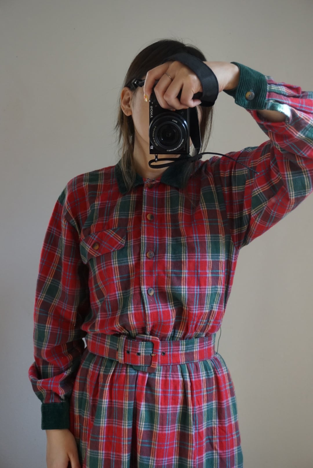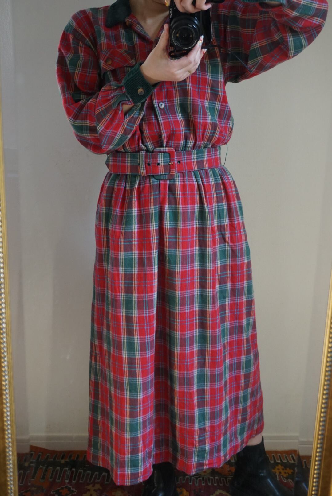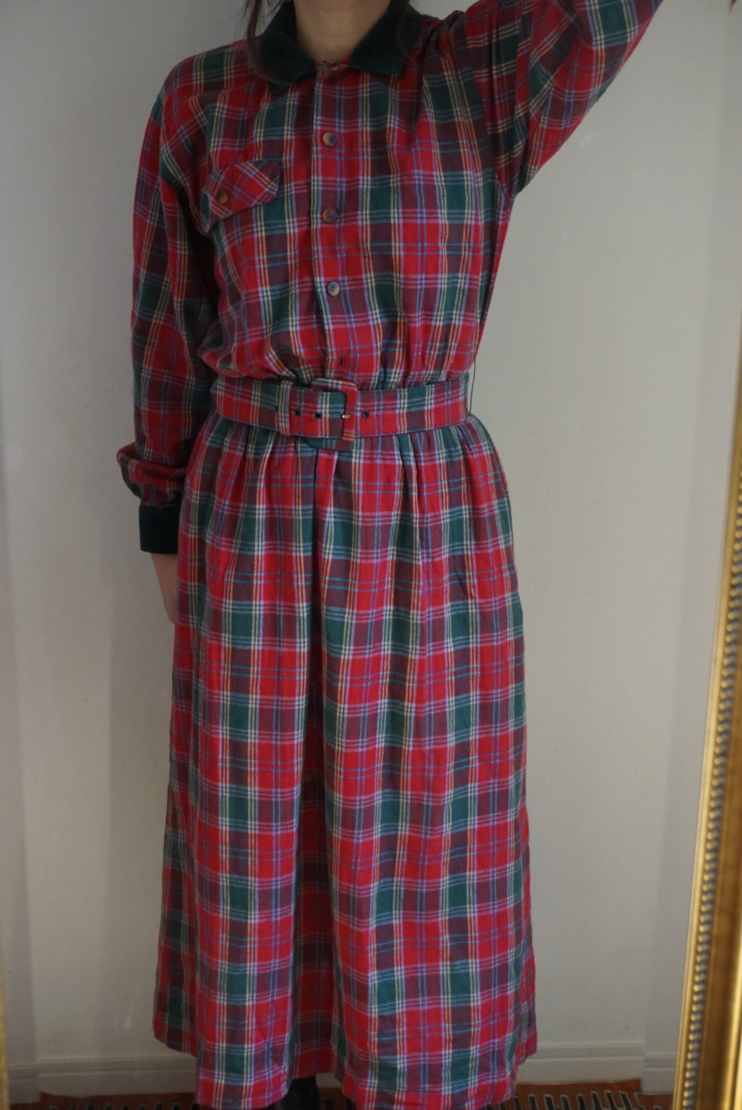 plaid belt dress