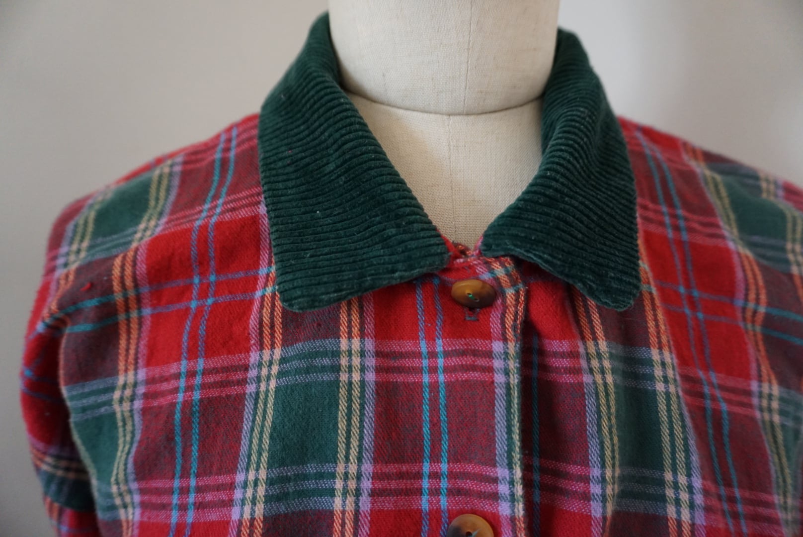 襟と袖はグリーンのコーデュロイになっていて、アクセントになっています。