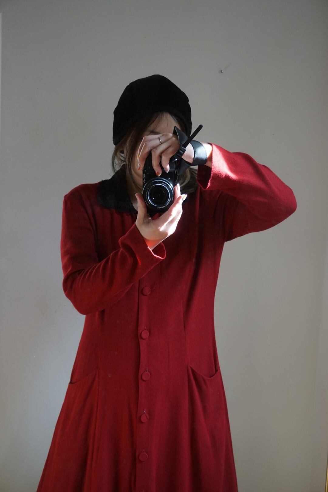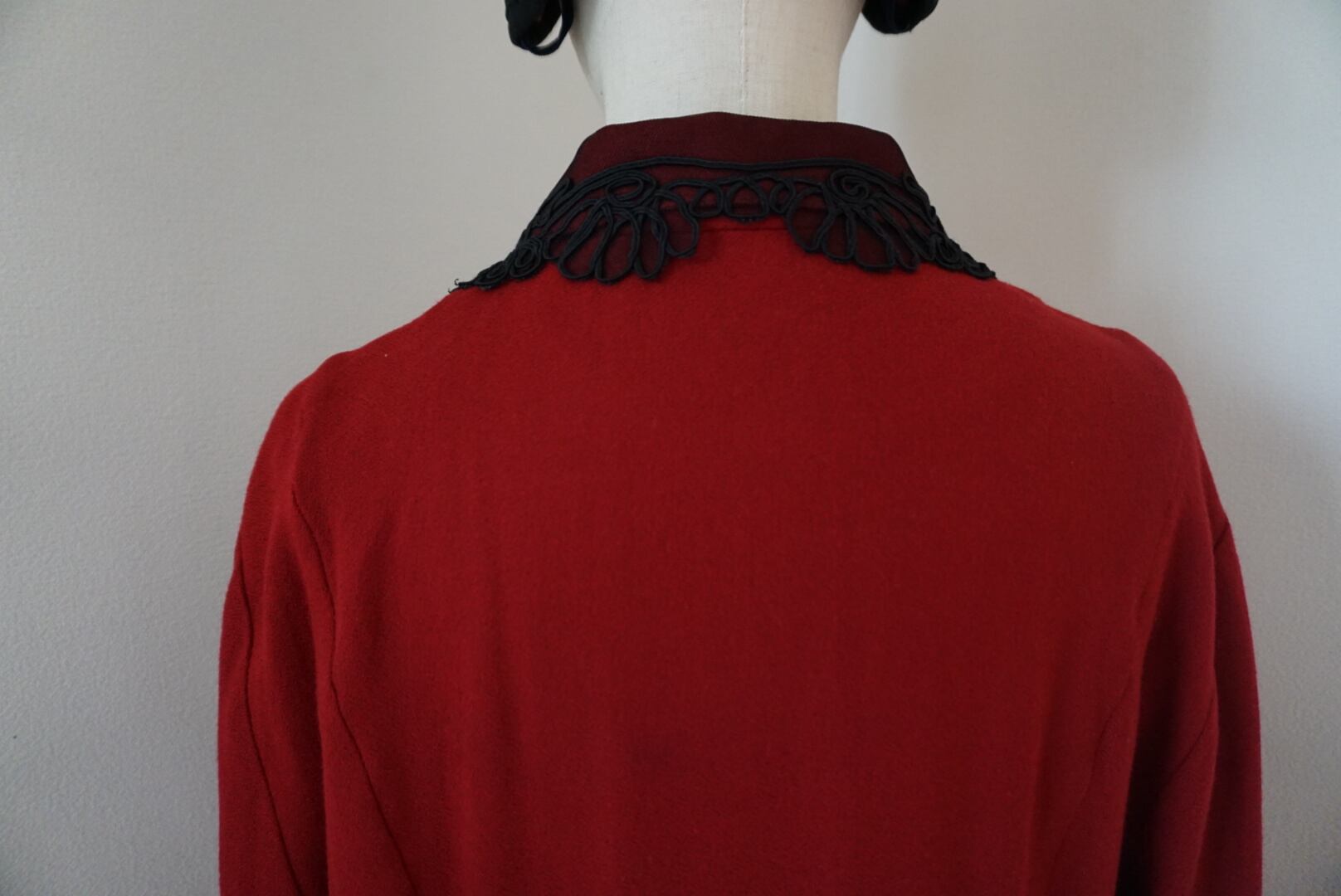 襟は黒のレースになっていて1900年頃のヨーロッパを思わせるデザイン。