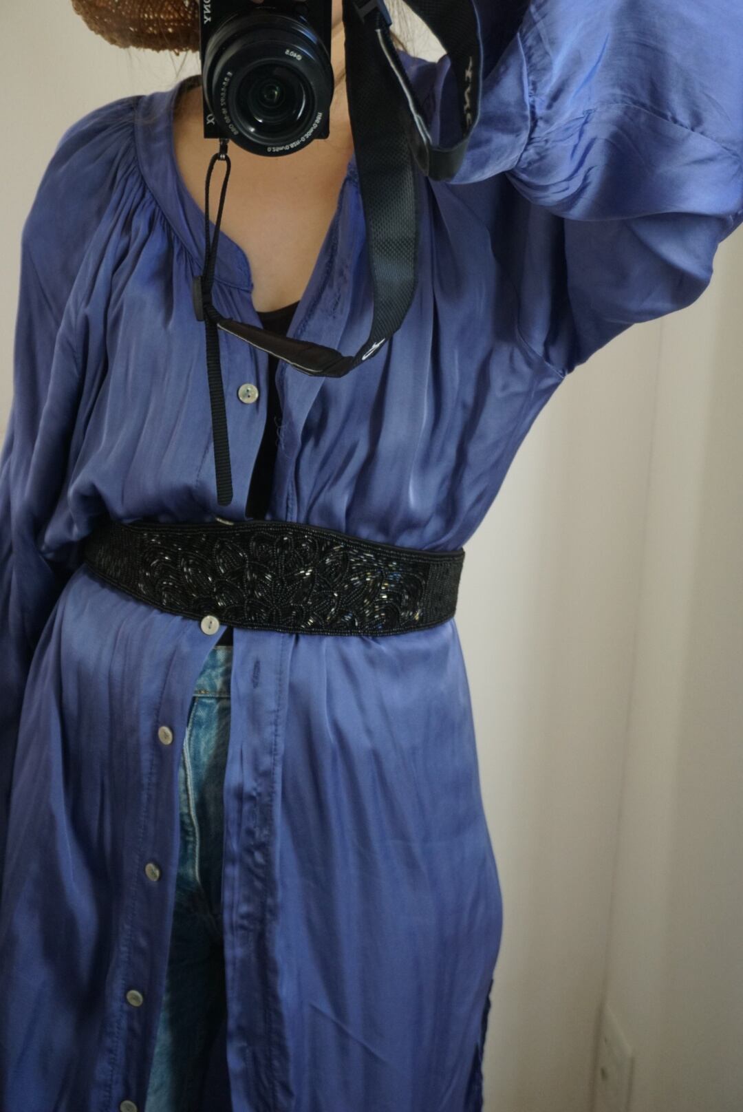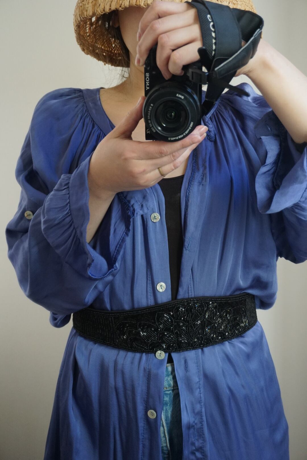シンプルな服にベルトをつけると華やかに着こなせます。