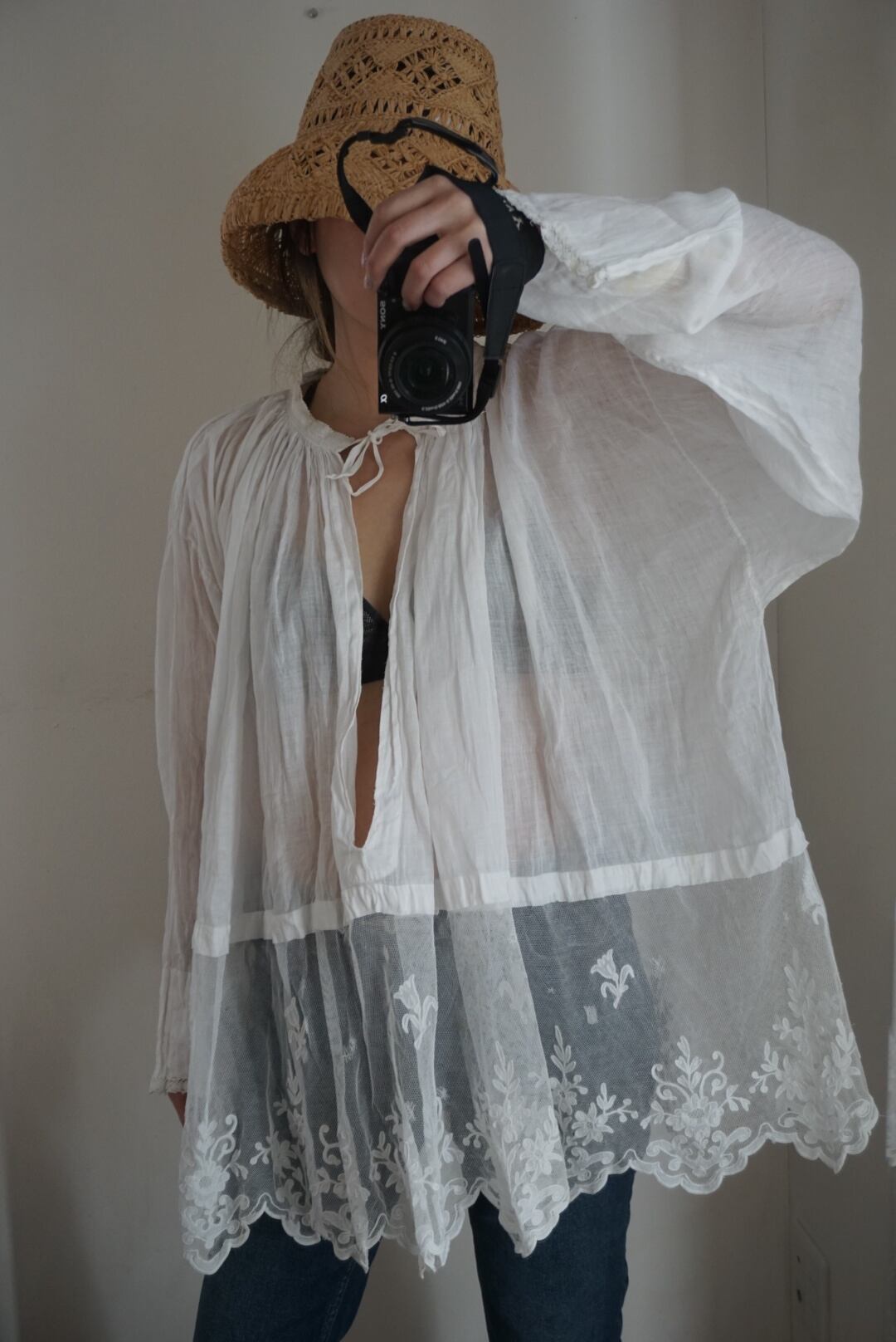 1900's French antique lace church smock
