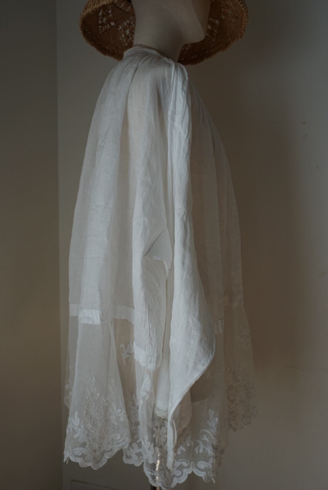 美しいレースと緻密な手縫いが特徴の1900年代のアンティークチャーチスモック。