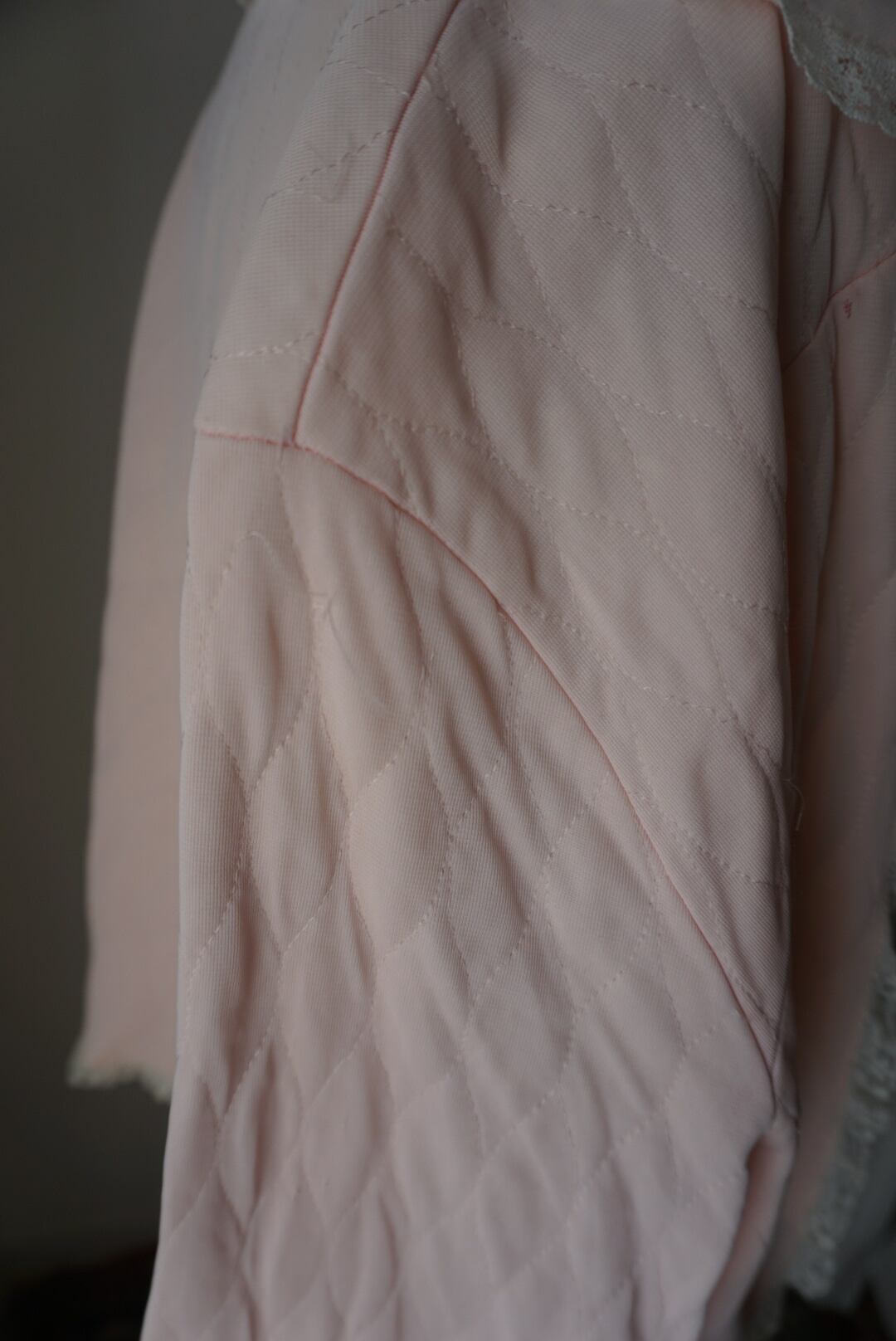 肩の部分のキルト糸が少しほつれている箇所があります。(写真10.11枚目)