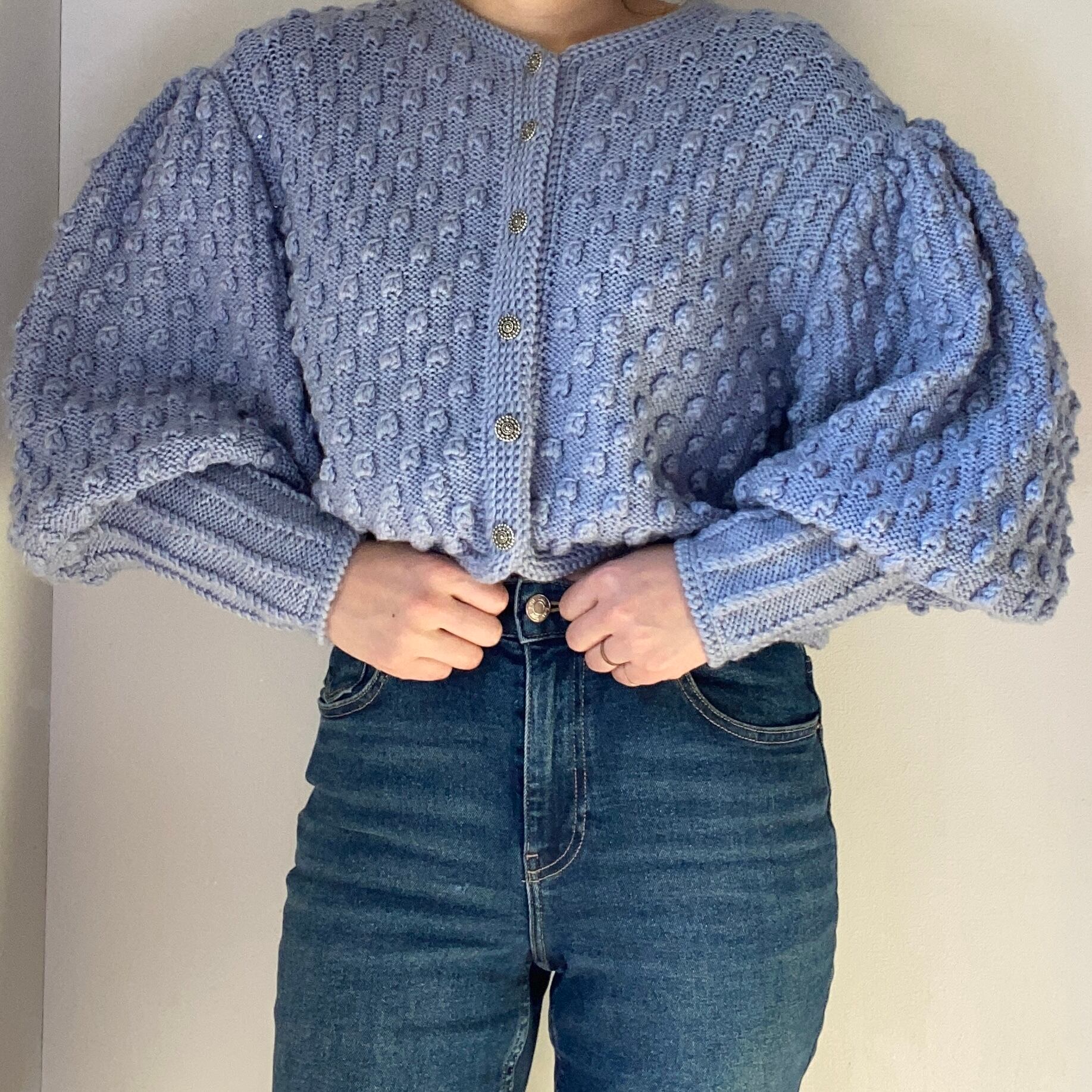 vintage pastel blue handmade austrian knit cardigan