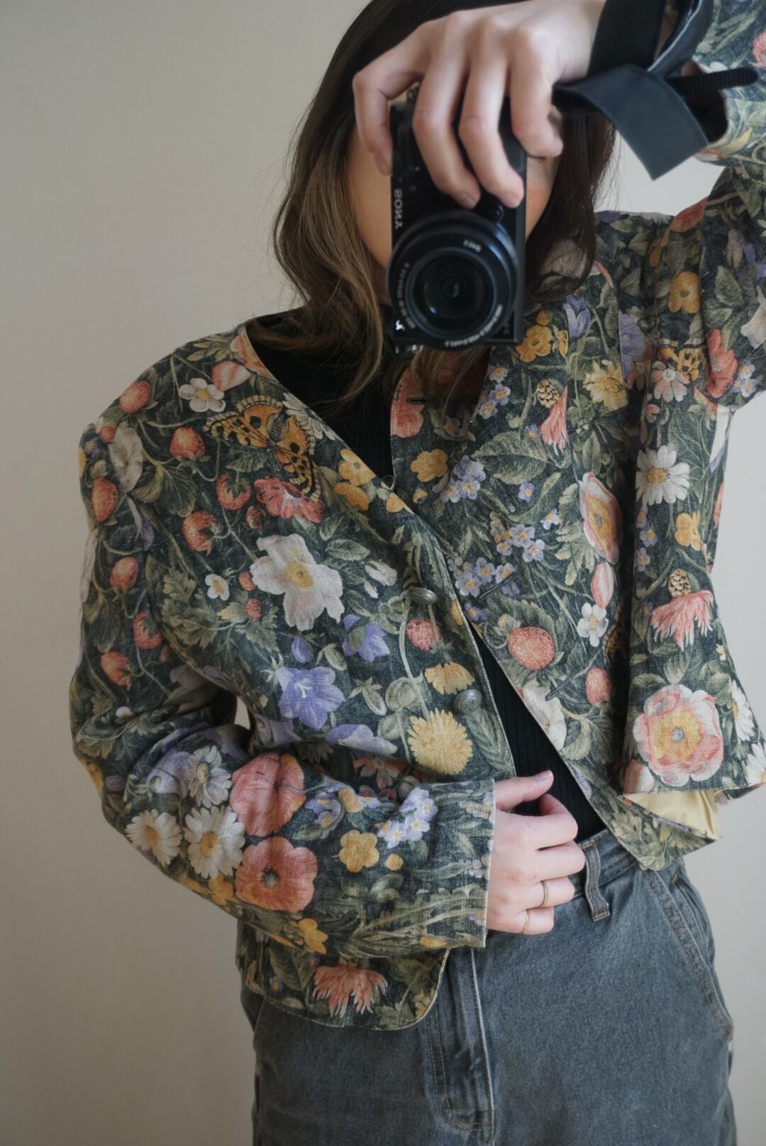 ヴィンテージな雰囲気漂う花柄ジャケット。個性的でお洒落な一着です。