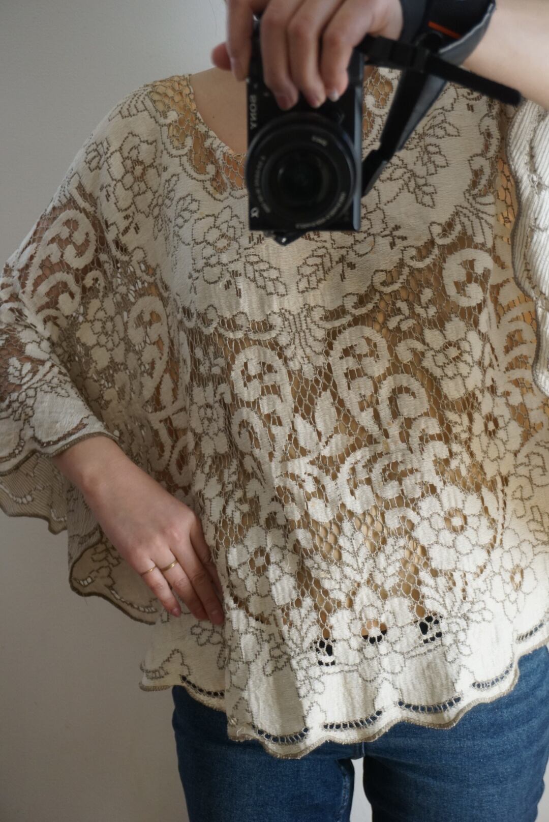 1970年代のレースがかわいいポンチョトップス。