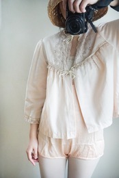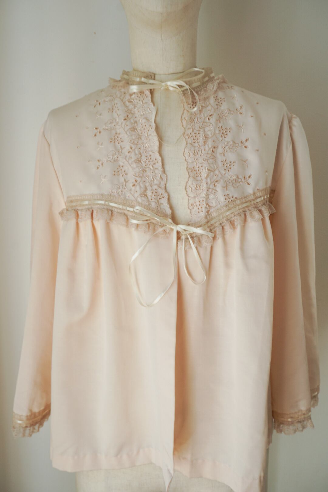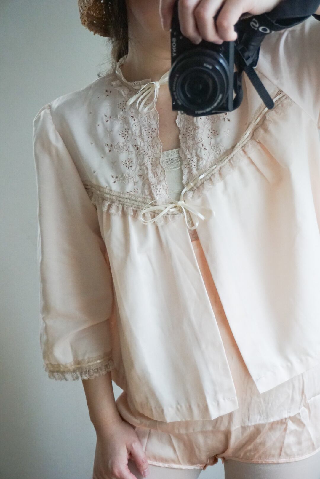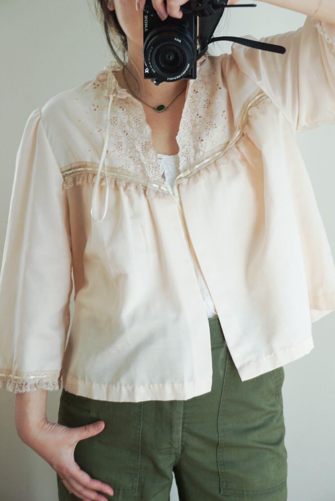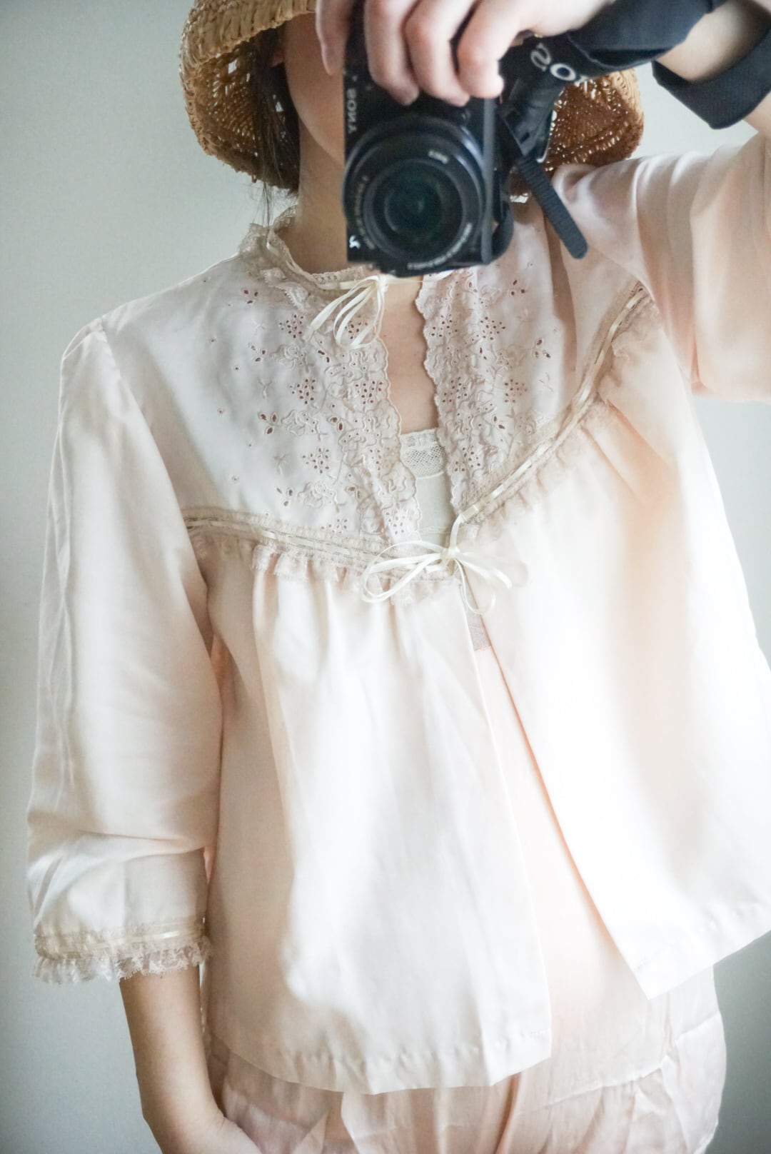首元と袖先にレースがついていてガーリーなアイテムです。