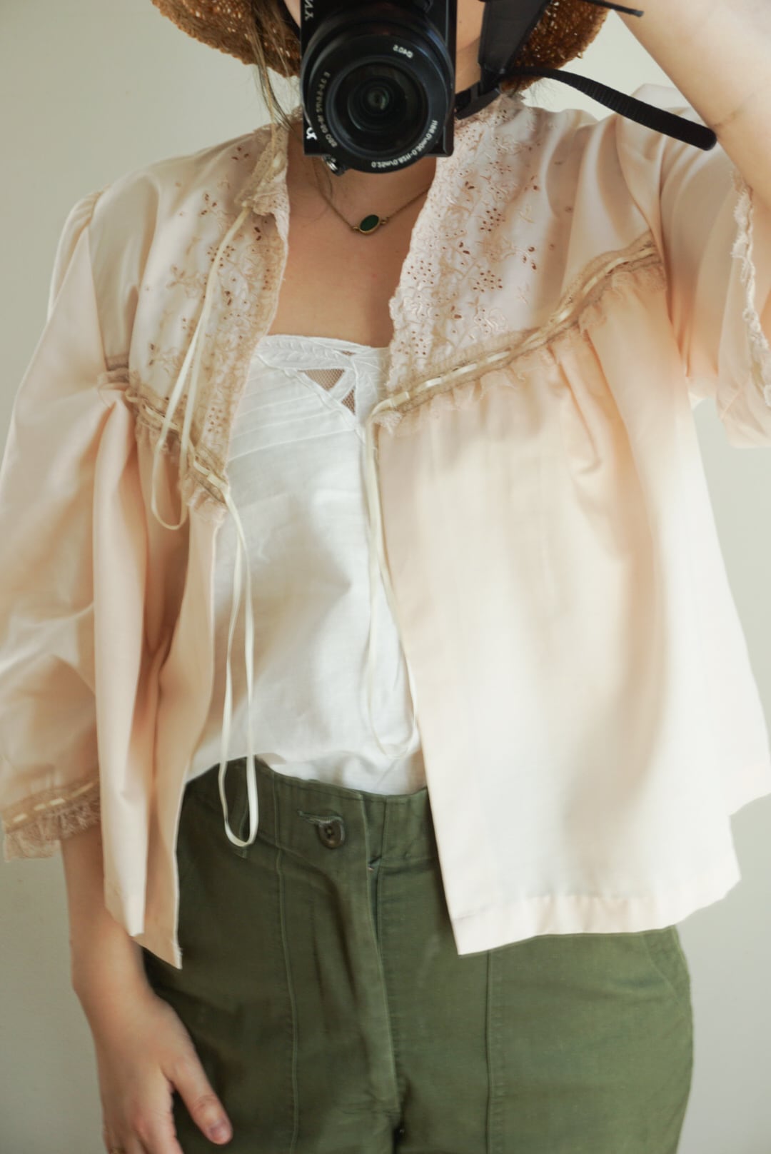 サラっと一枚羽織るのに最適で、リボンが2つ付いています。