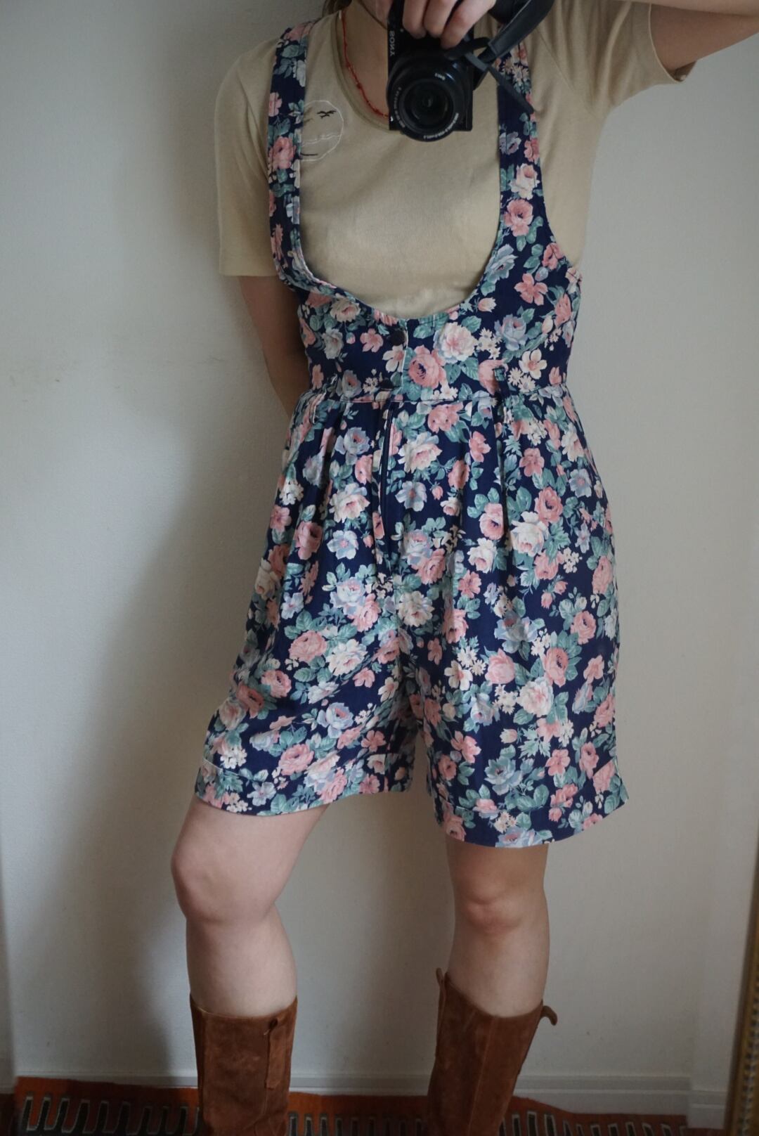 膝上のハーフパンツですが、大柄の花柄がフェミニンでとてもかわいいです。