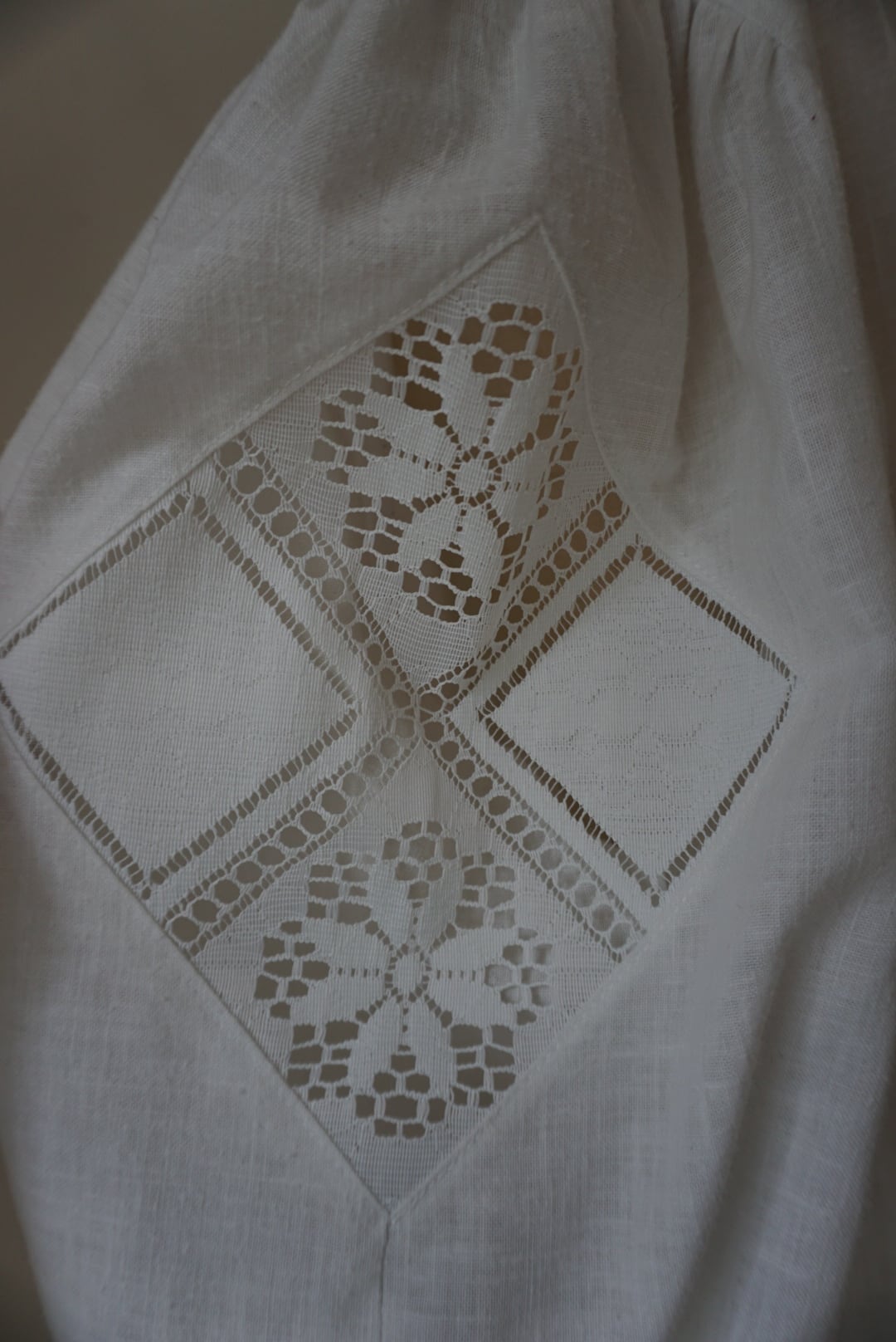 袖にレースが施されているホワイトブラウス。