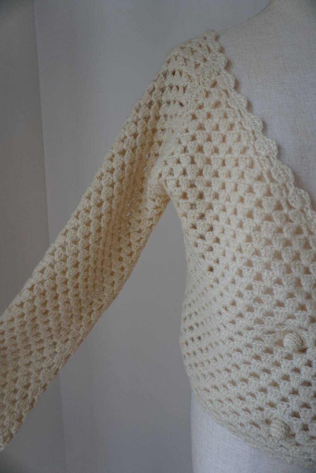 ニットで編まれたボタンがダブルブレストに配置されています。