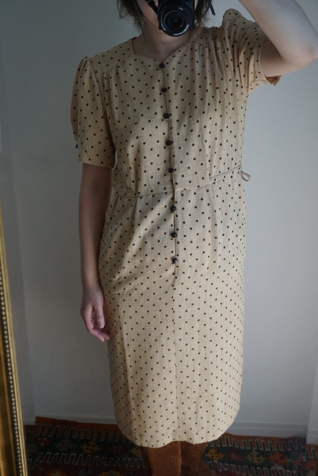 カラーはクリームイエローで合わせやすく、一枚でも下にパンツを履いてもとても個性的でおしゃれに着ていただけます。