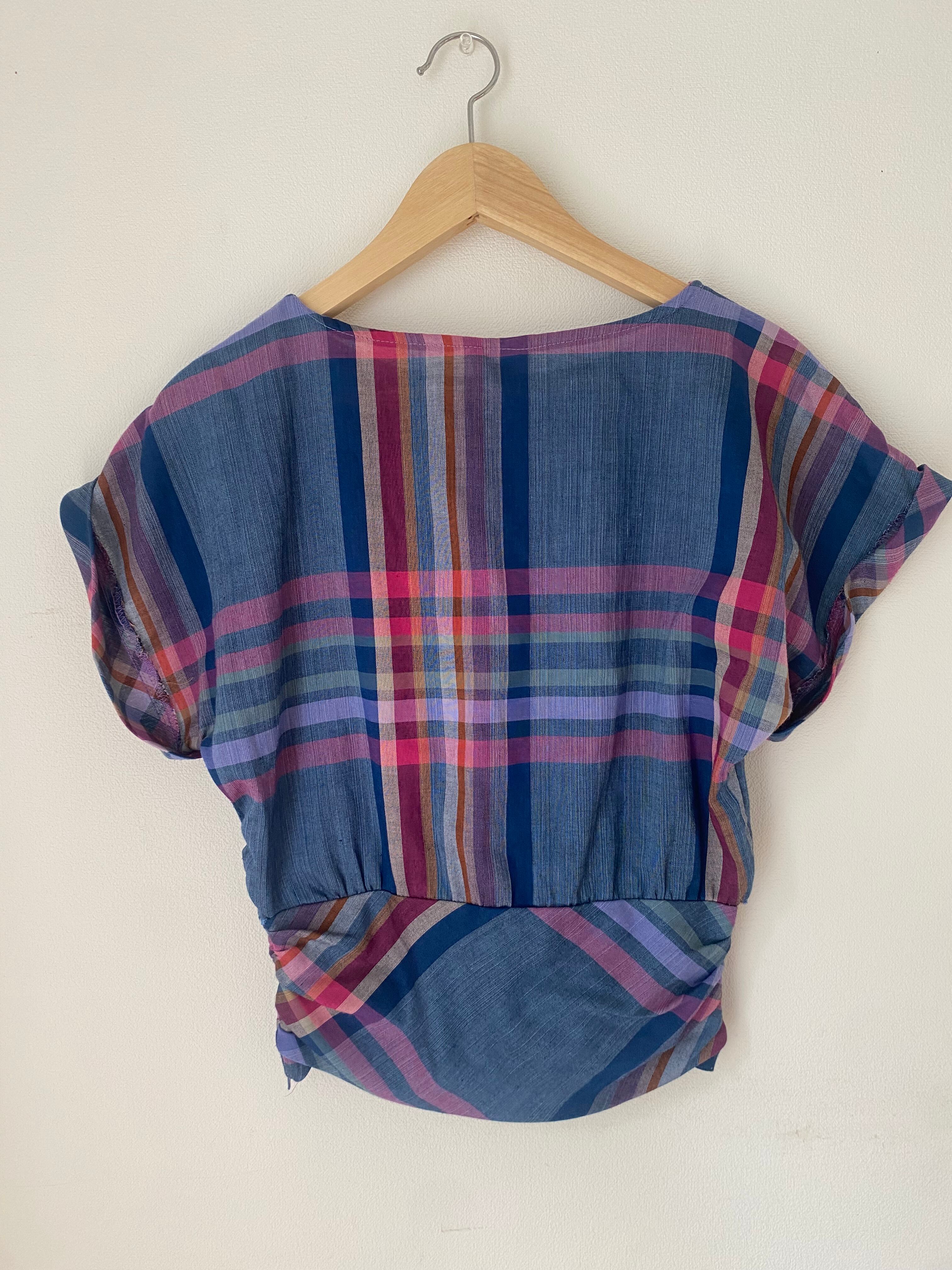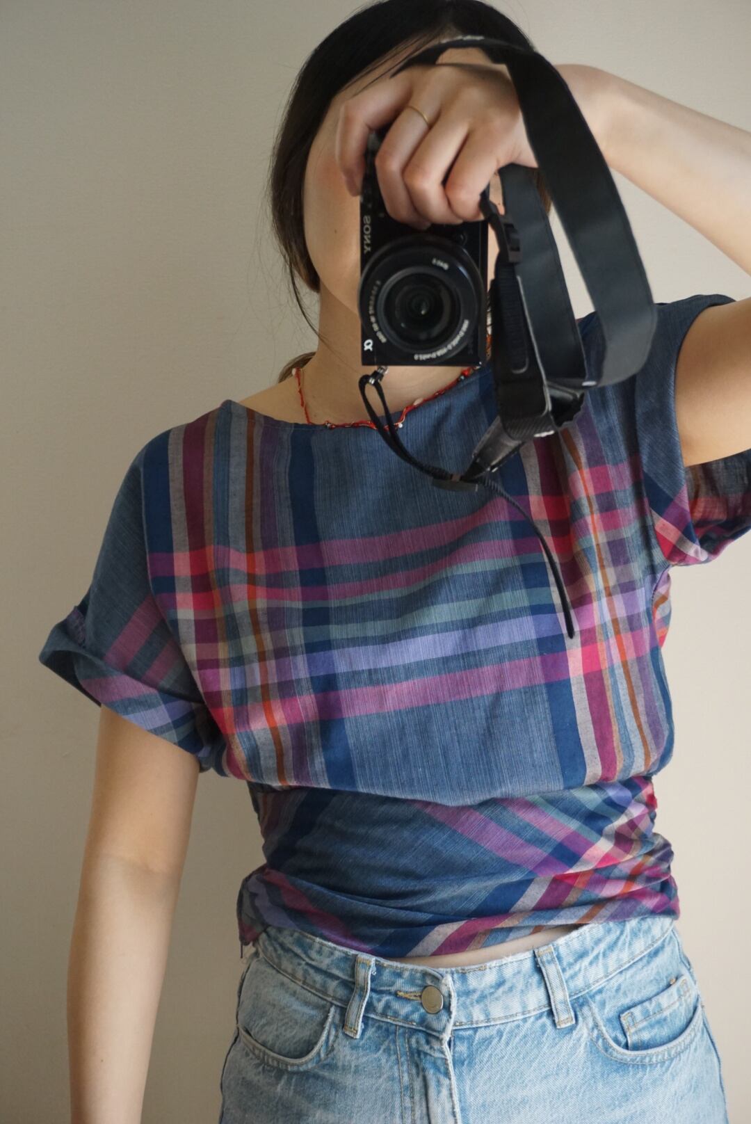 色の組み合わせが可愛いフレンチスリーブトップ。