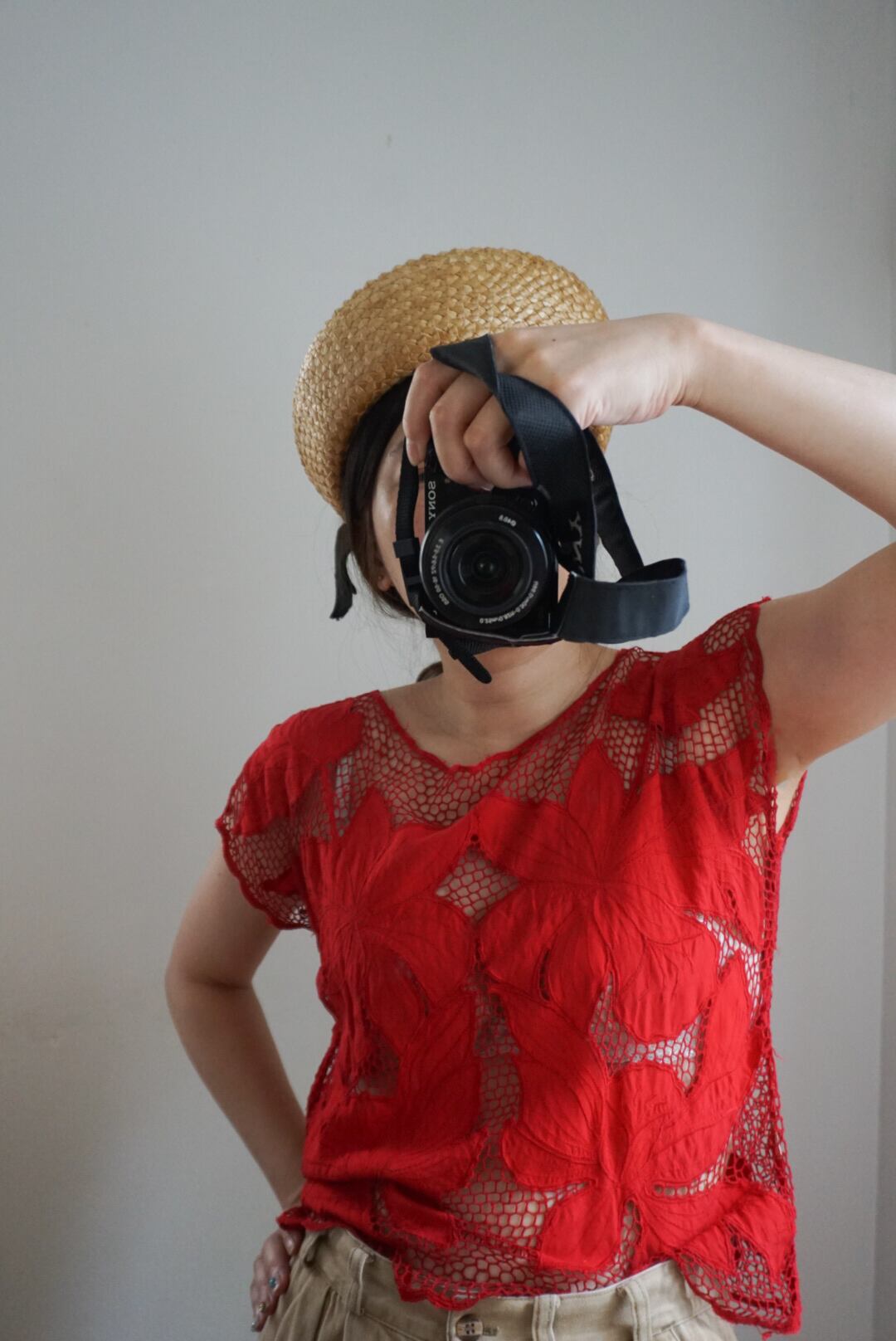 とても発色の良い赤で、透け感が大人っぽくどんな場面でおしゃれに着ていただけます。