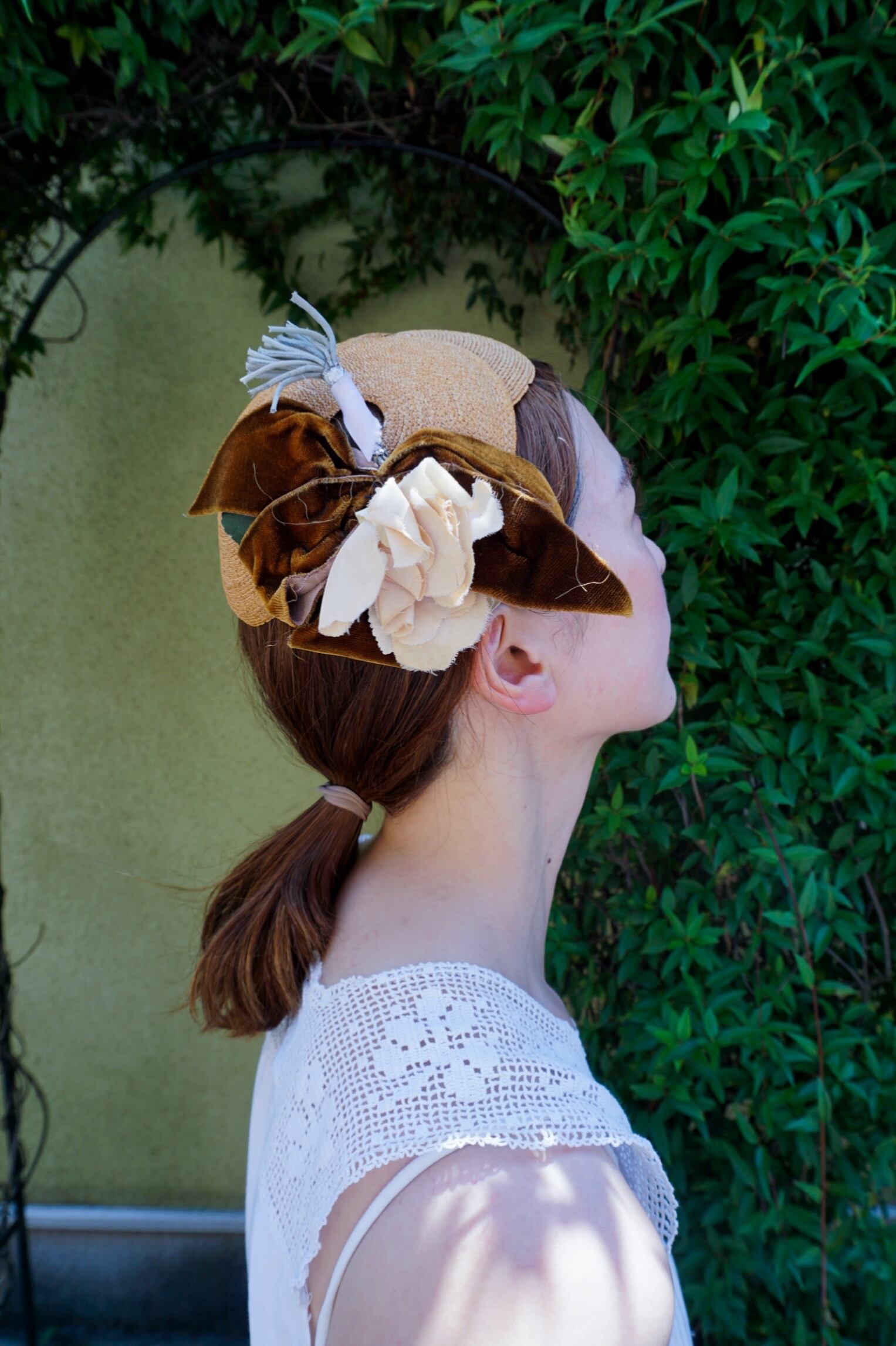 夏の麦わら風ヘッドドレス。