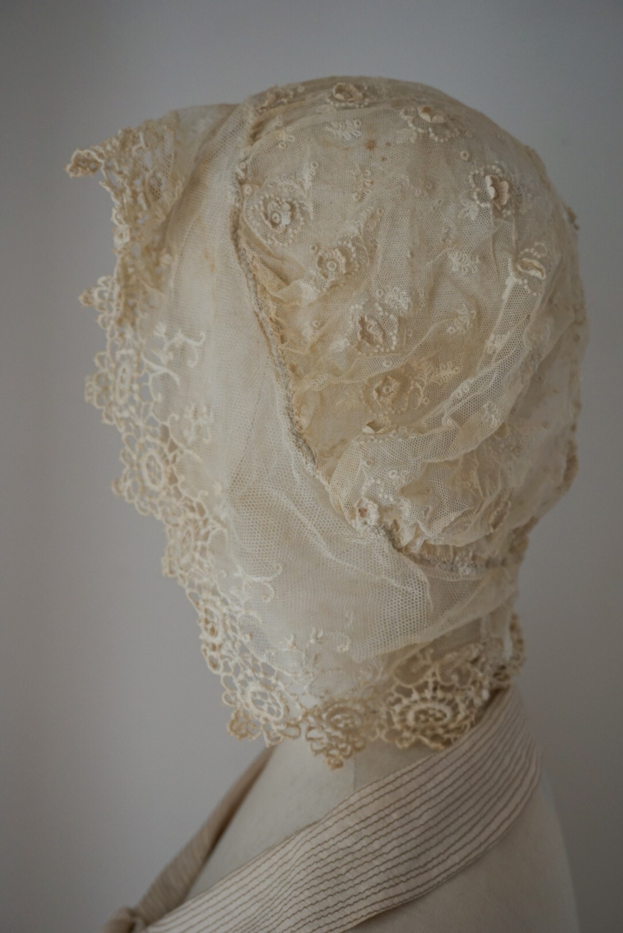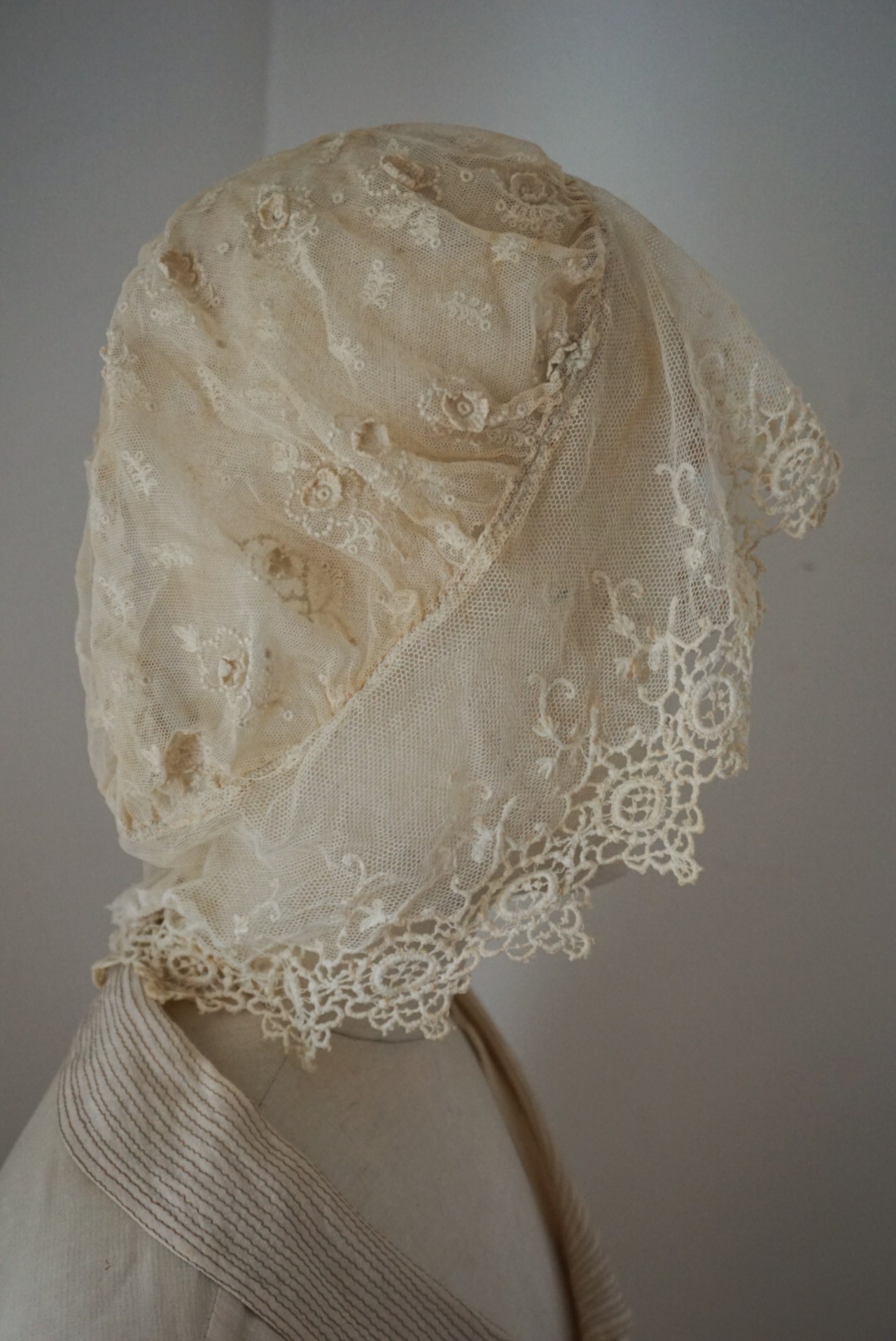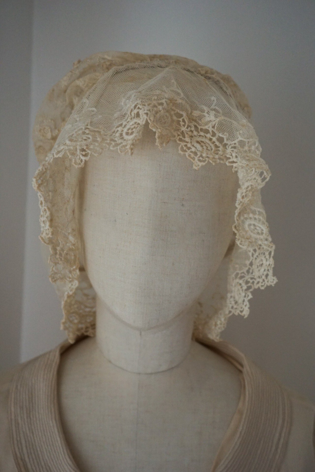 ホワイトボンネットと少し形が違うデザインですが、レースの箇所がとても細かくかわいいデザインです。